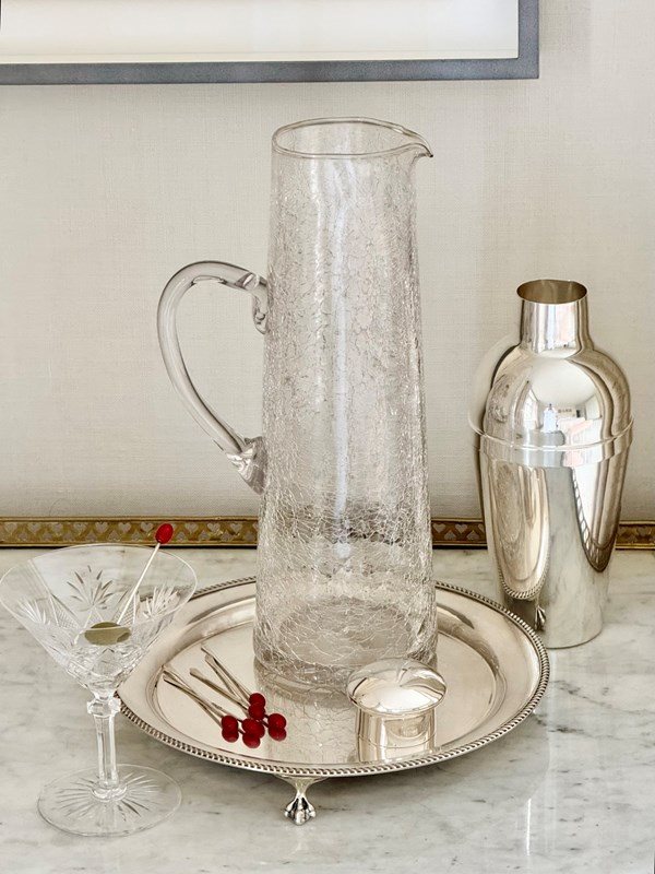 Soaring Tall Crackle Glass Cocktail Or Water Jug C1960