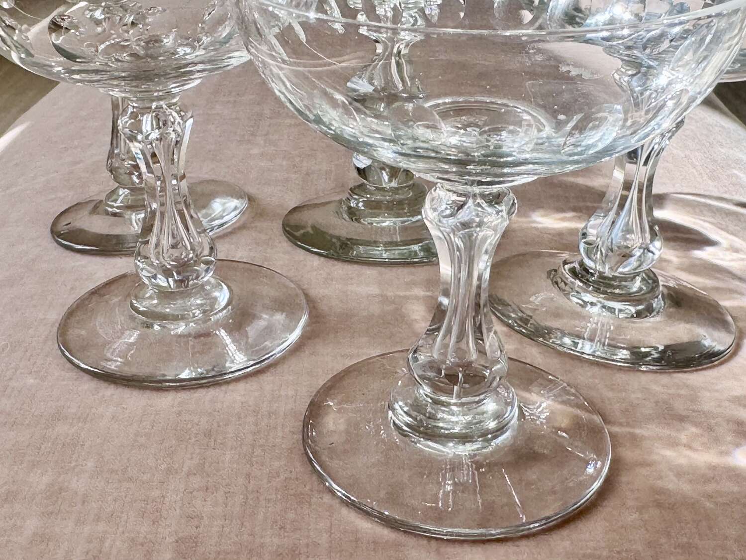 Val Saint Lambert air bubble stem champagne/cocktail glasses
