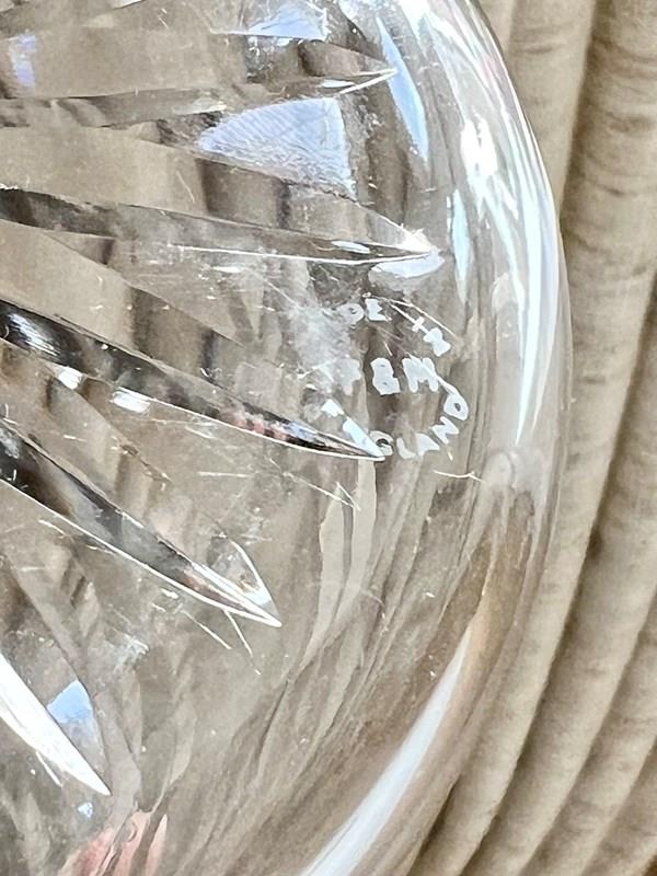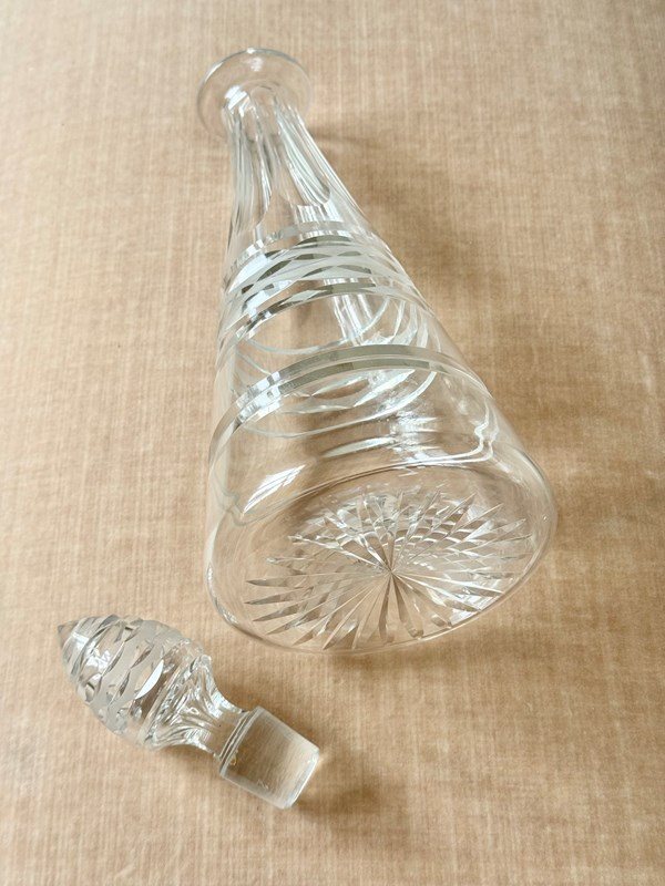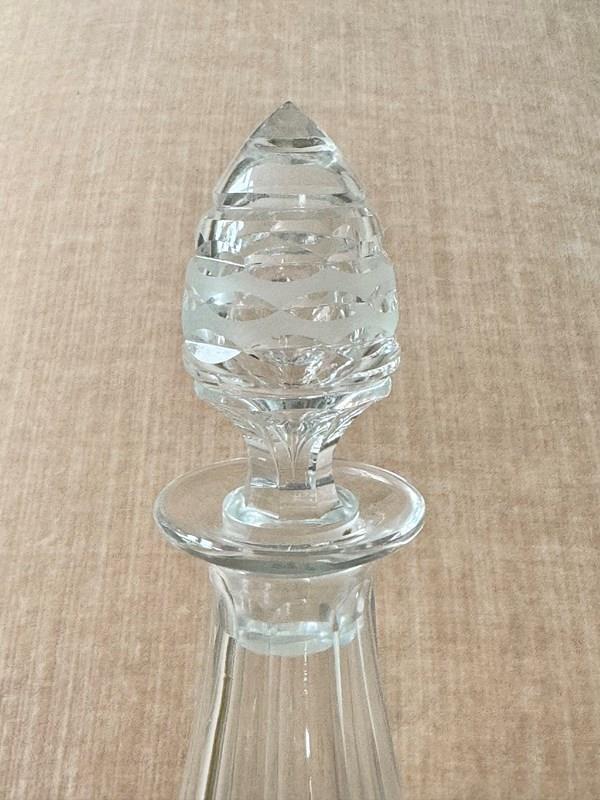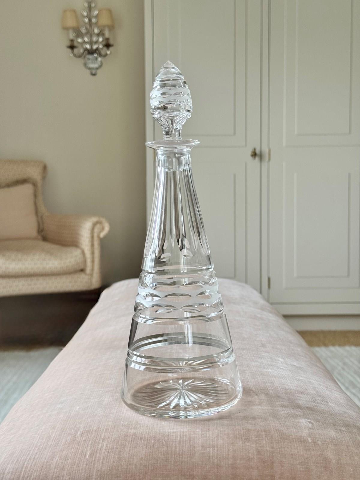 A fine vintage crystal decanter with etched makers mark to the base for Fortnum & Mason, Piccadilly London, Circa 1970s. This superb cut glass decanter has been beautifully hand cut and frosted, has a star cut base and is topped by an unusual Acorn design stopper.