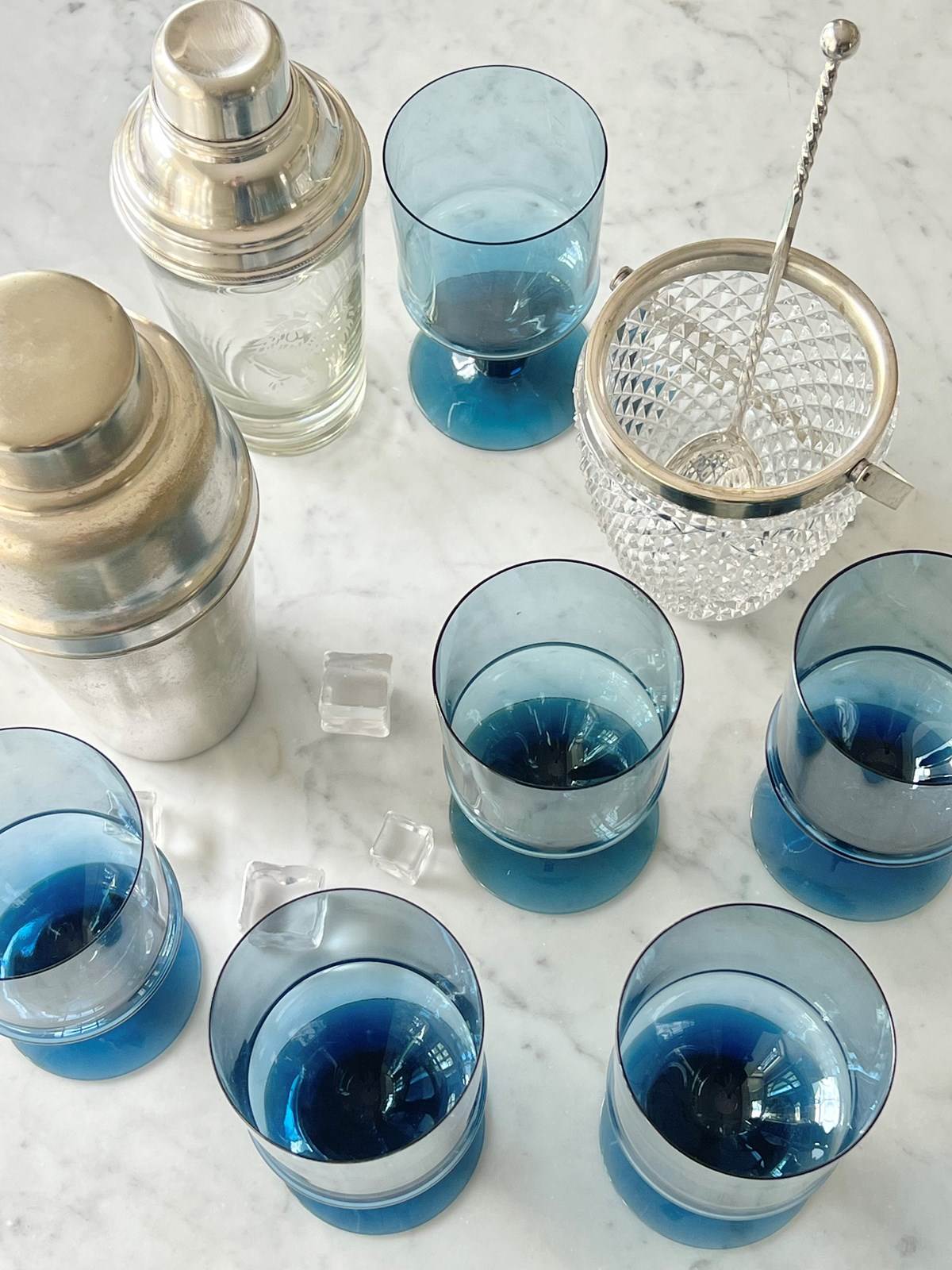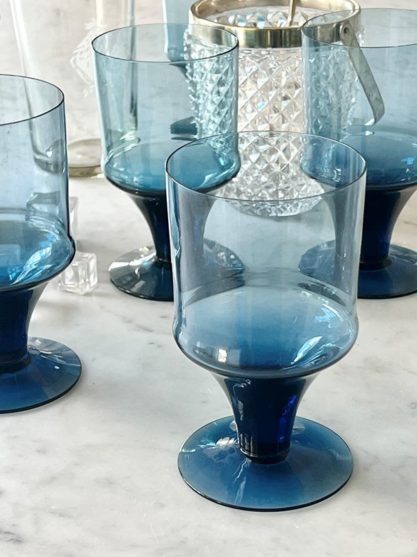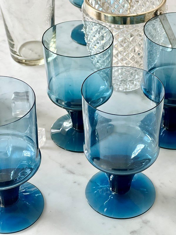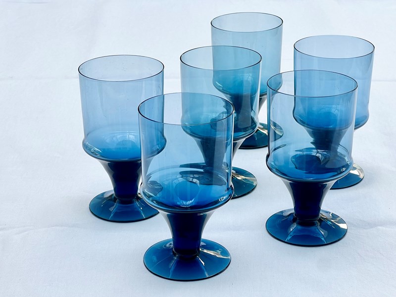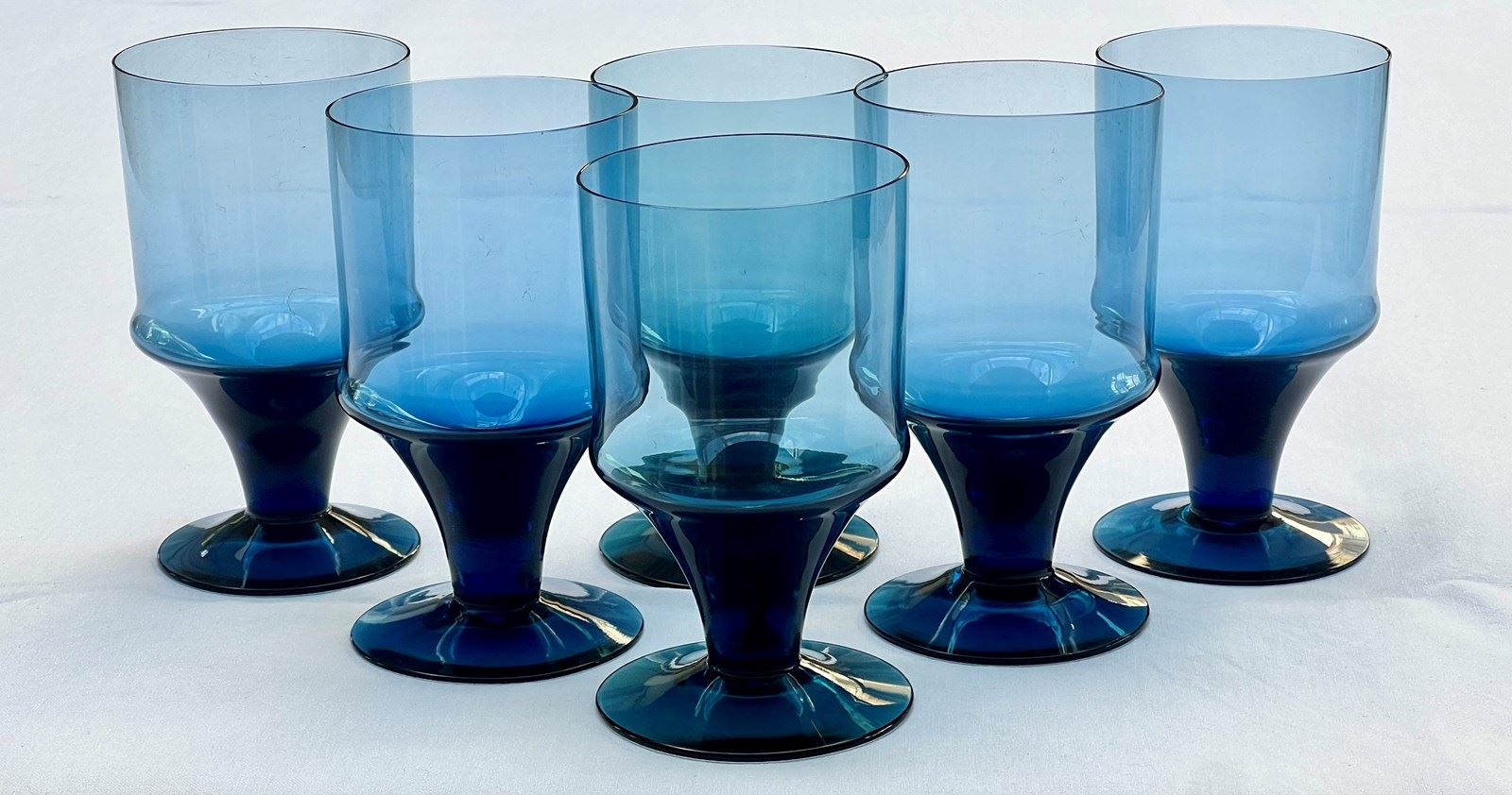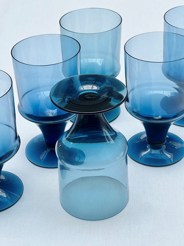 Wedgwood Blue Wine Goblets By Ronald Stennett-Willson