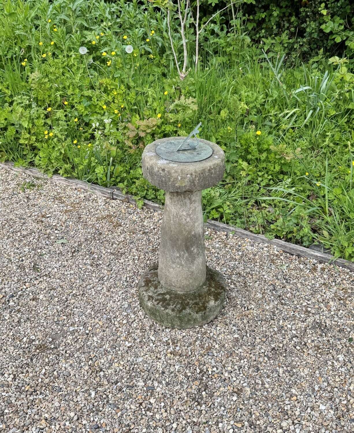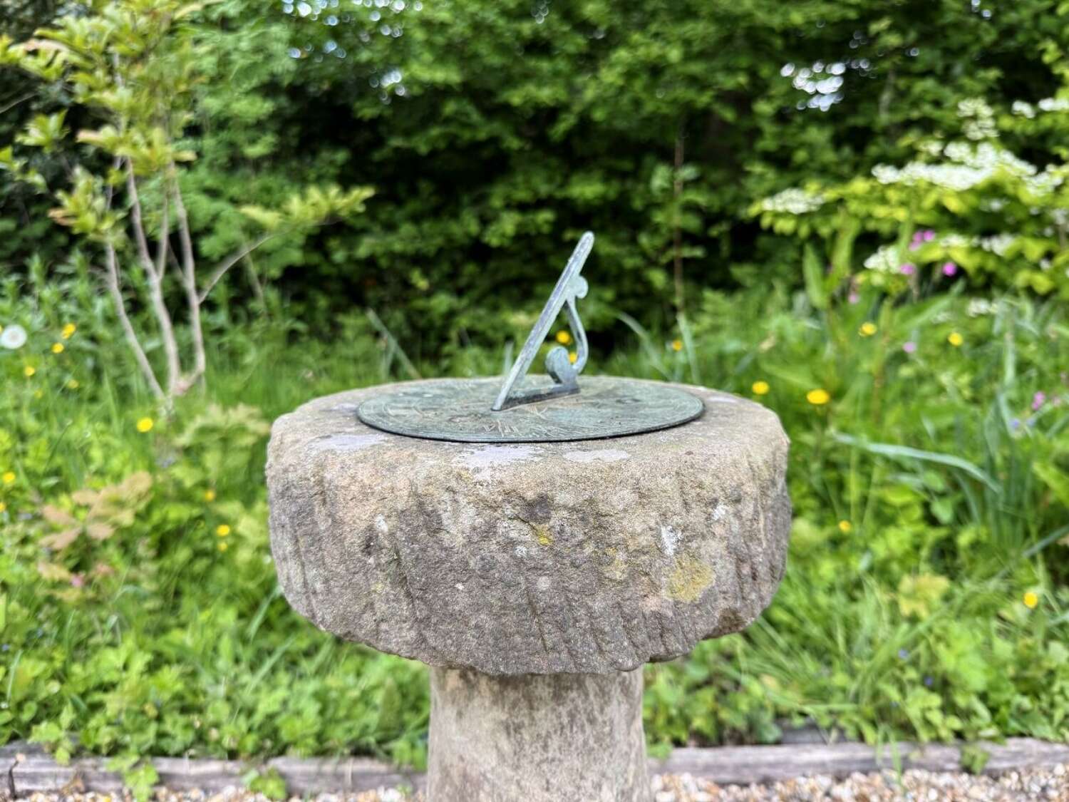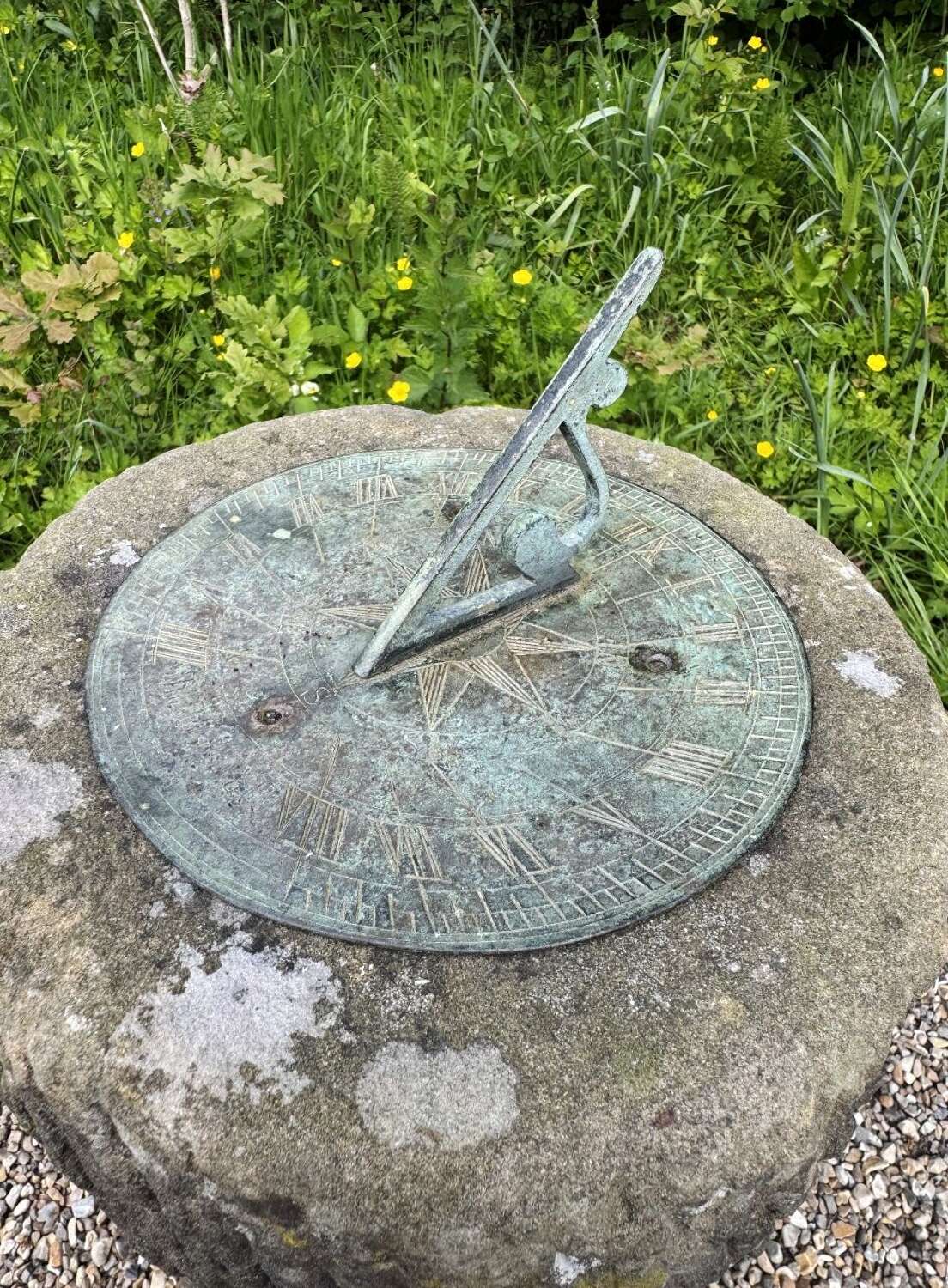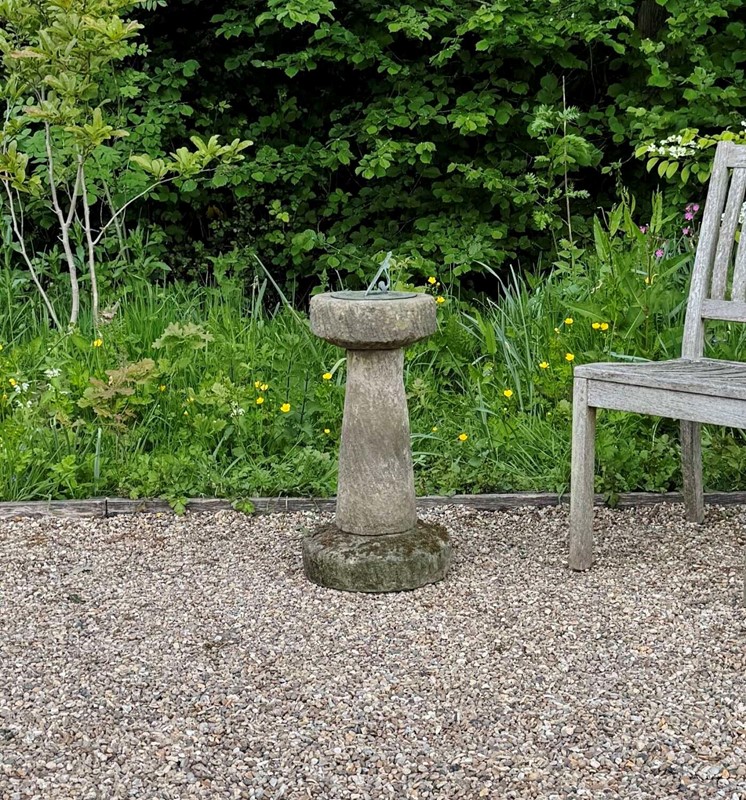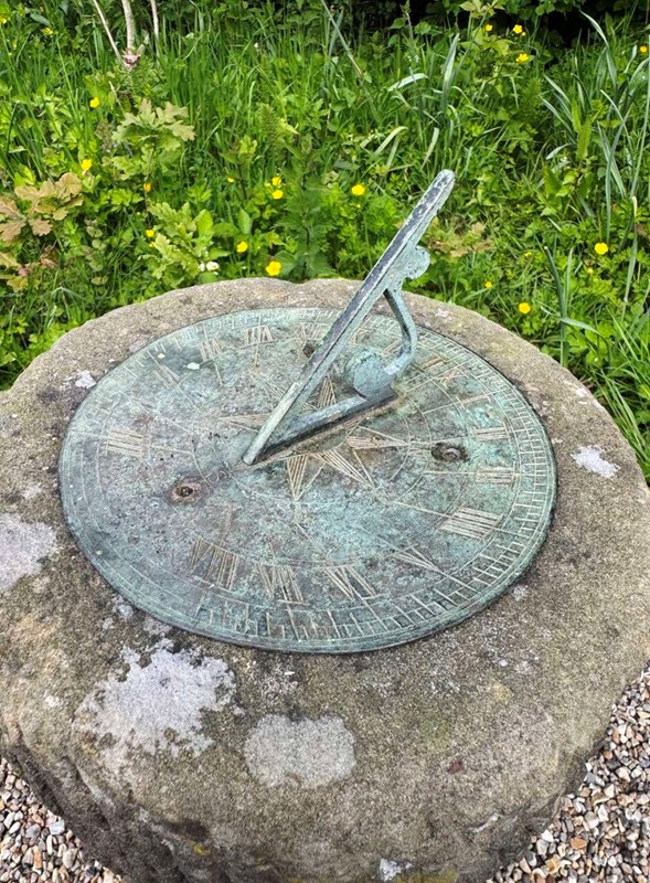 Carved Stone Sundial with Bronze Plate