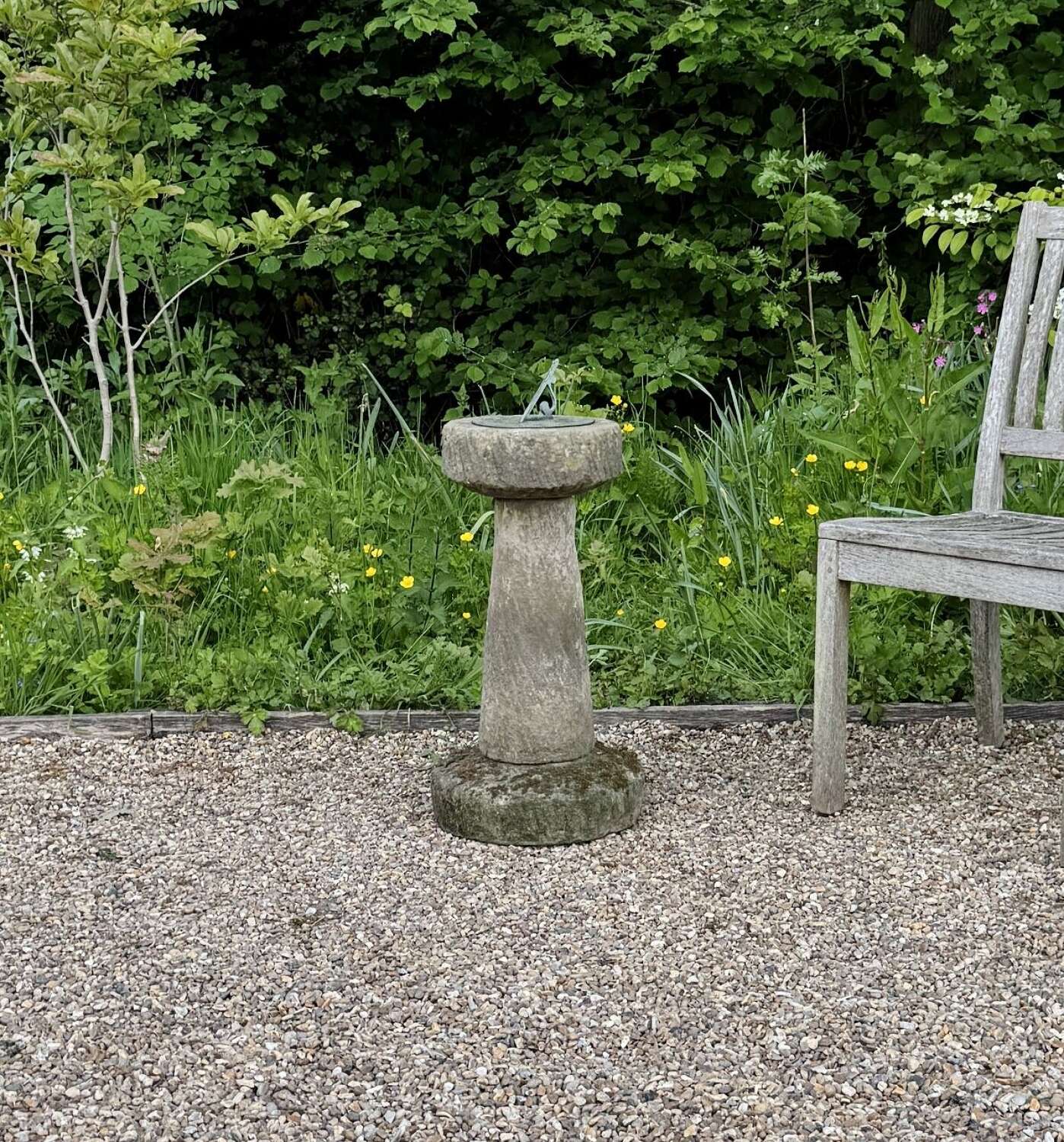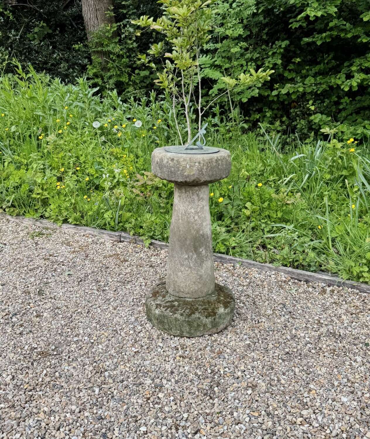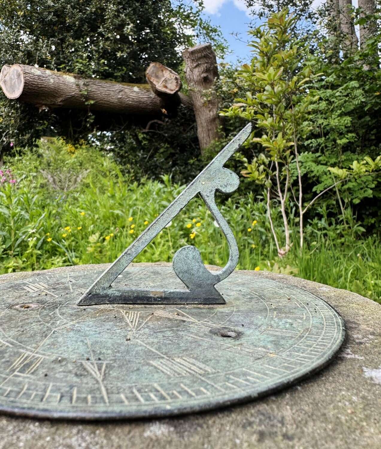 Carved Stone Sundial with Bronze Plate