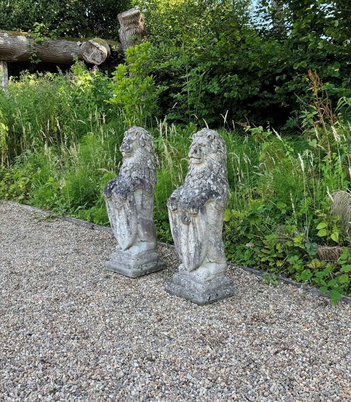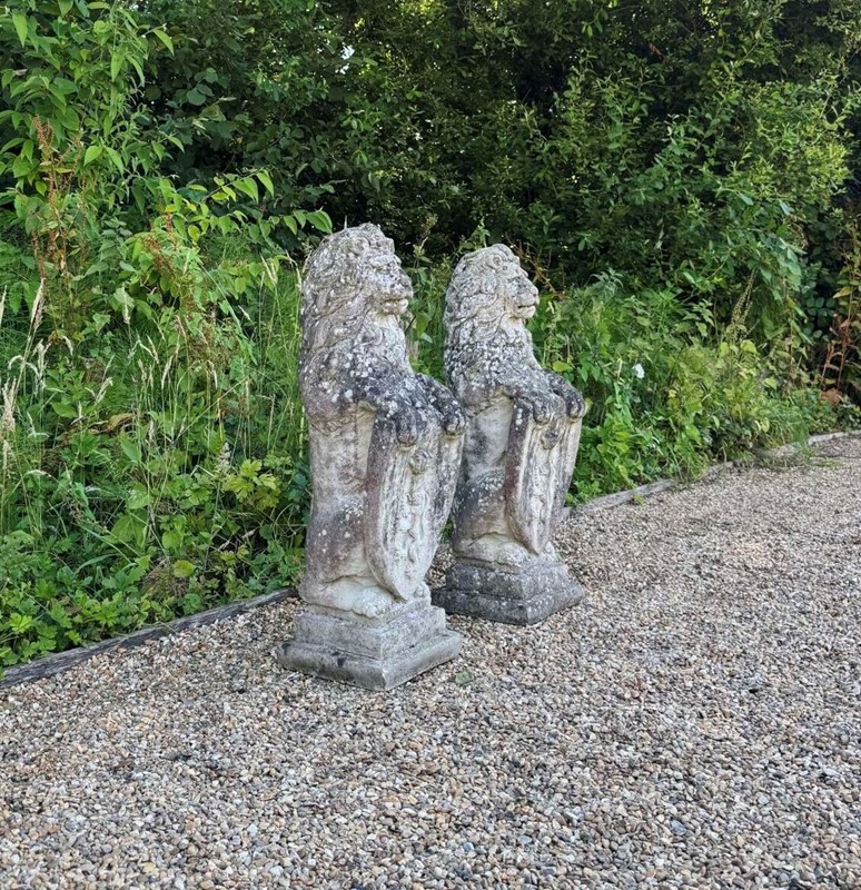 Pair of Heraldic Lions