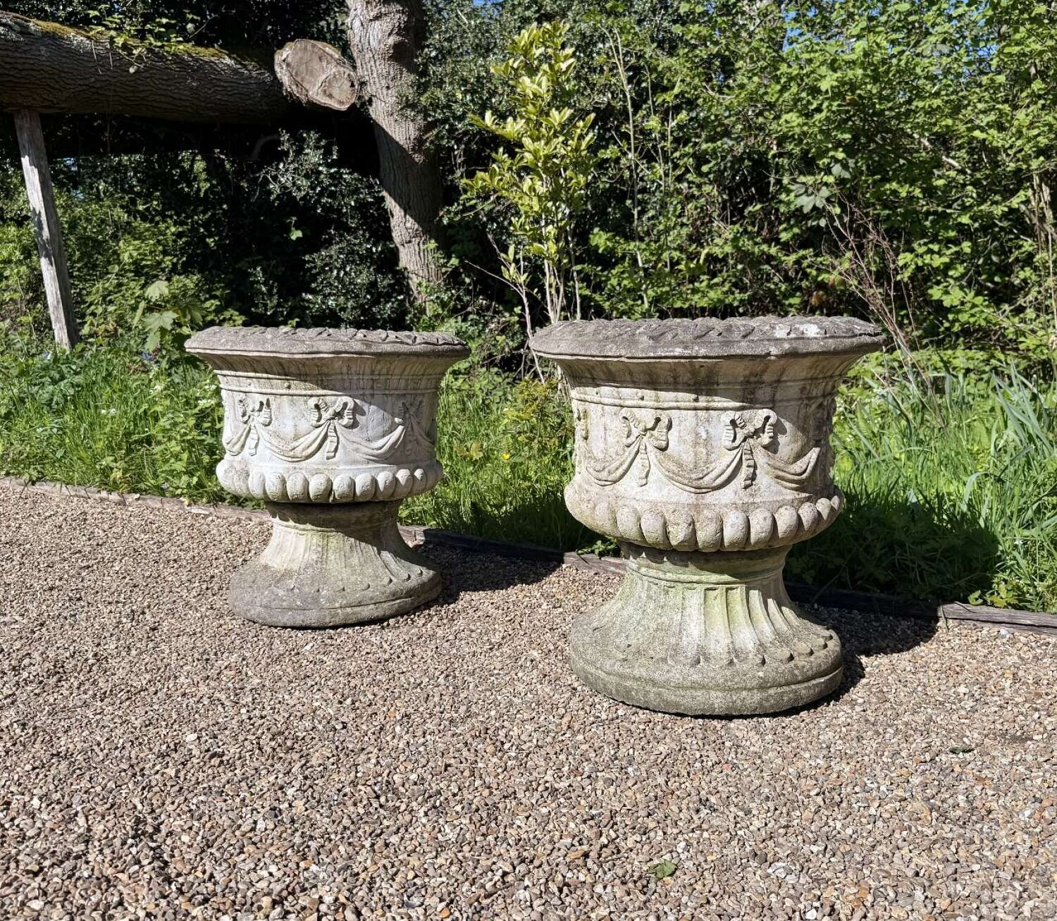 Pair of Large Ribbon Urns