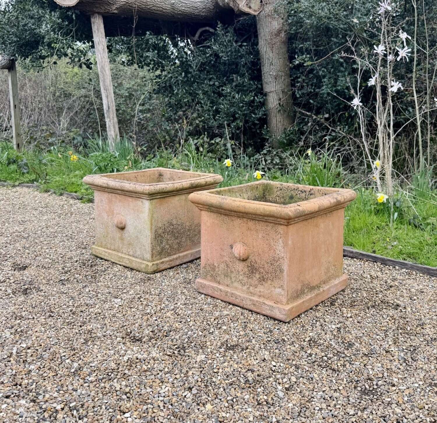 Pair of Large Square Terracotta Planters