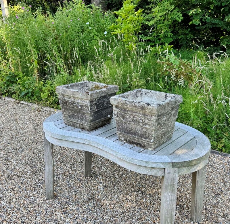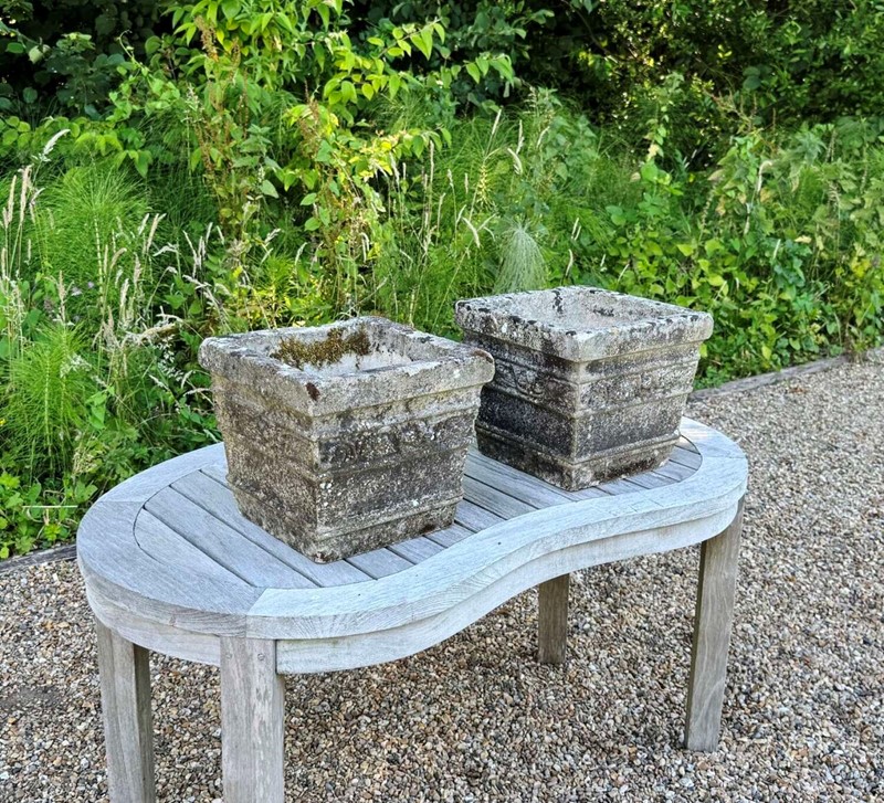 Pair of Small Weathered Square Planters