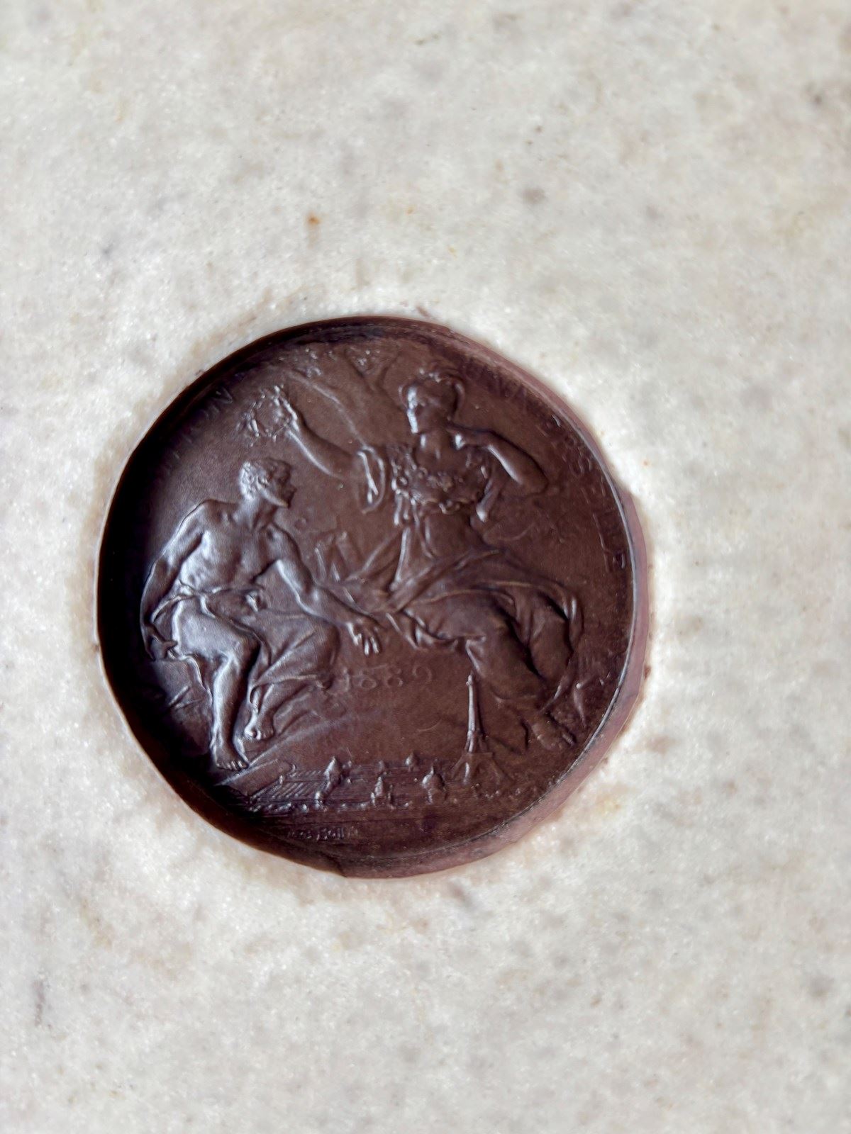 Reverse is inset with Exposition Universelle medal by Louis Alexandre Bottée (French 1852-1941)