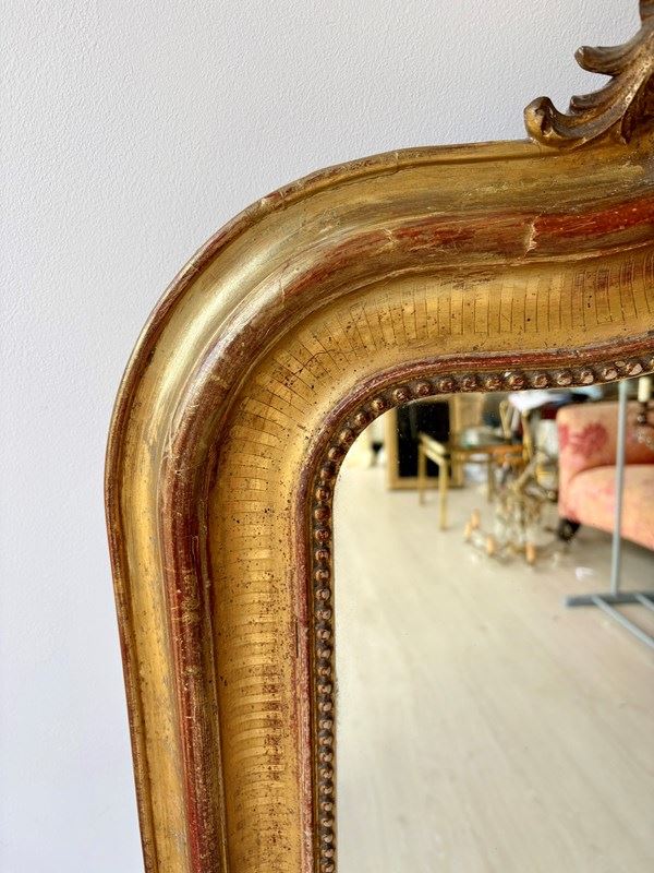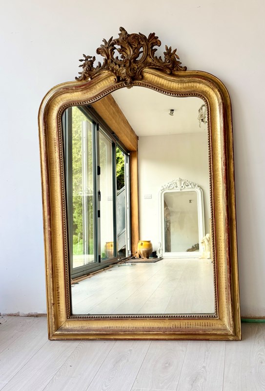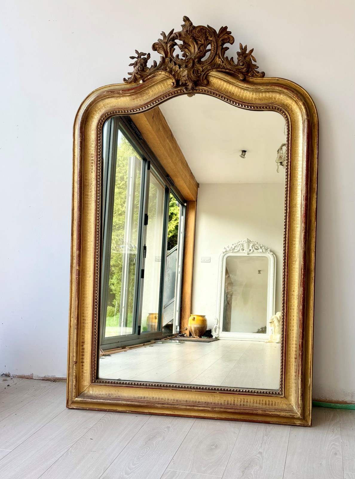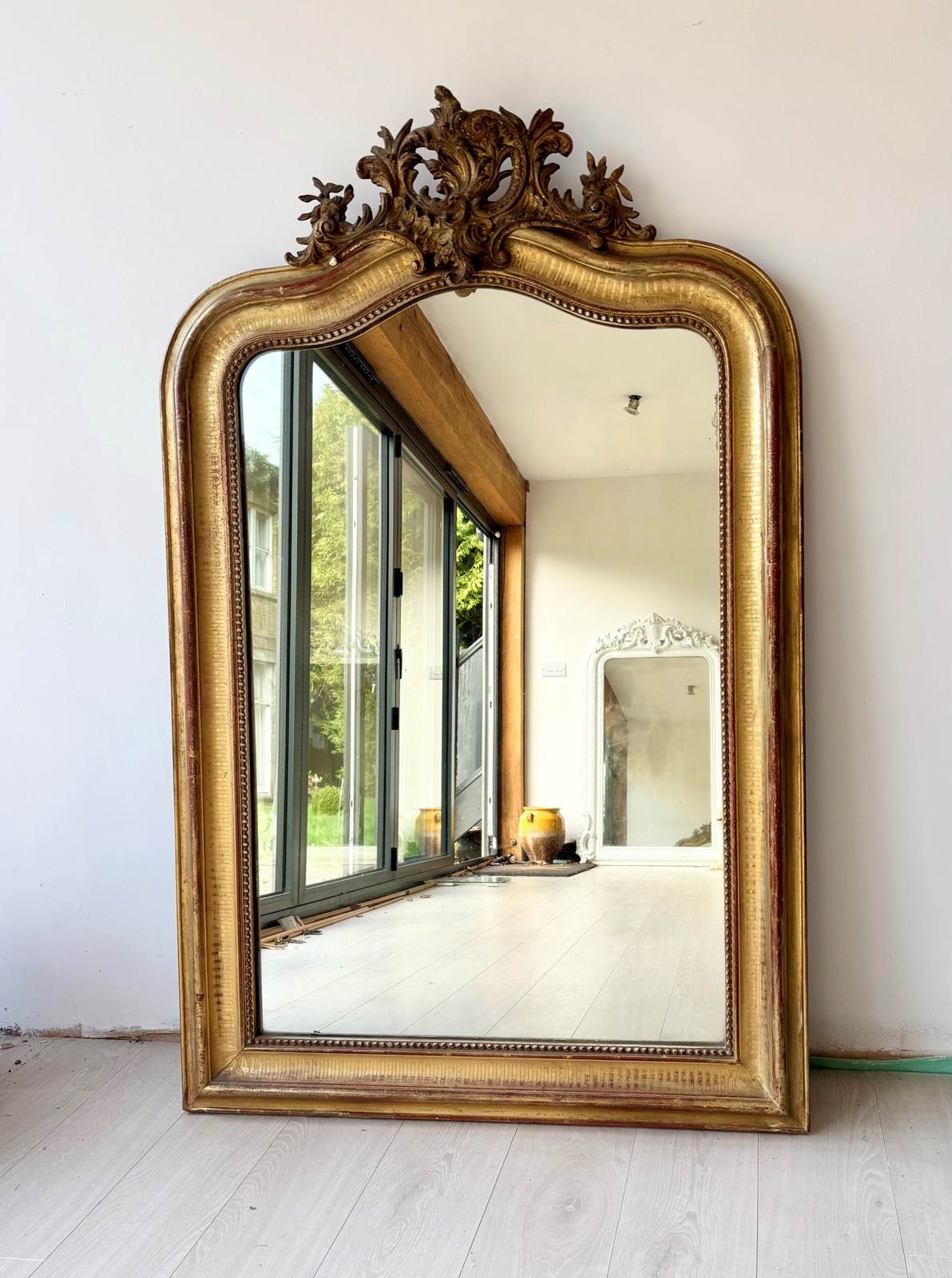 Pretty gilt framed mirror with crest, perfect proportions for over mantle