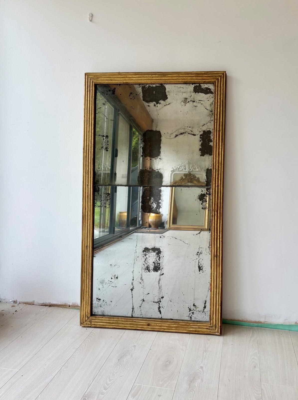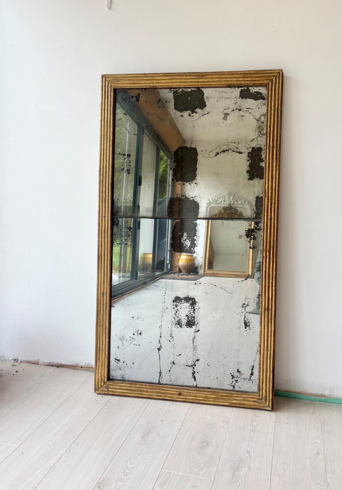 Beautiful mid 19th century French gilt mirror with original split glass plates