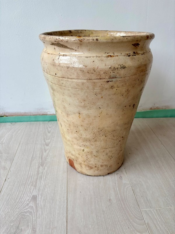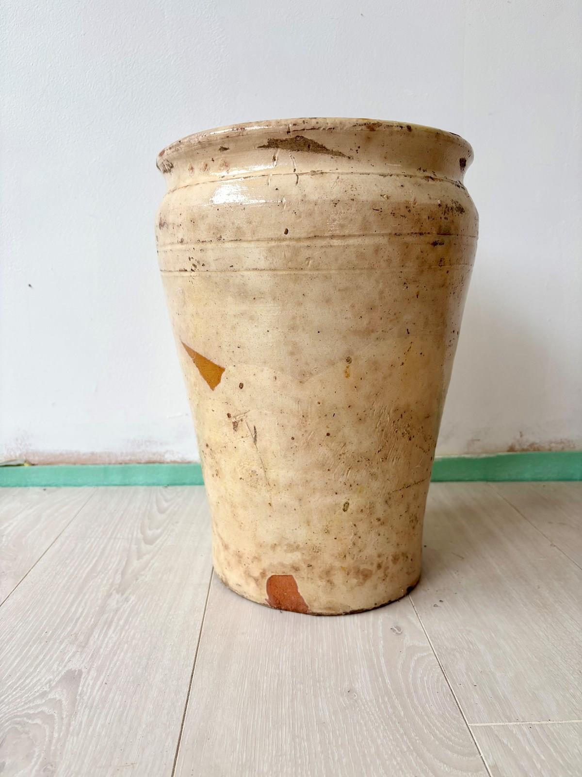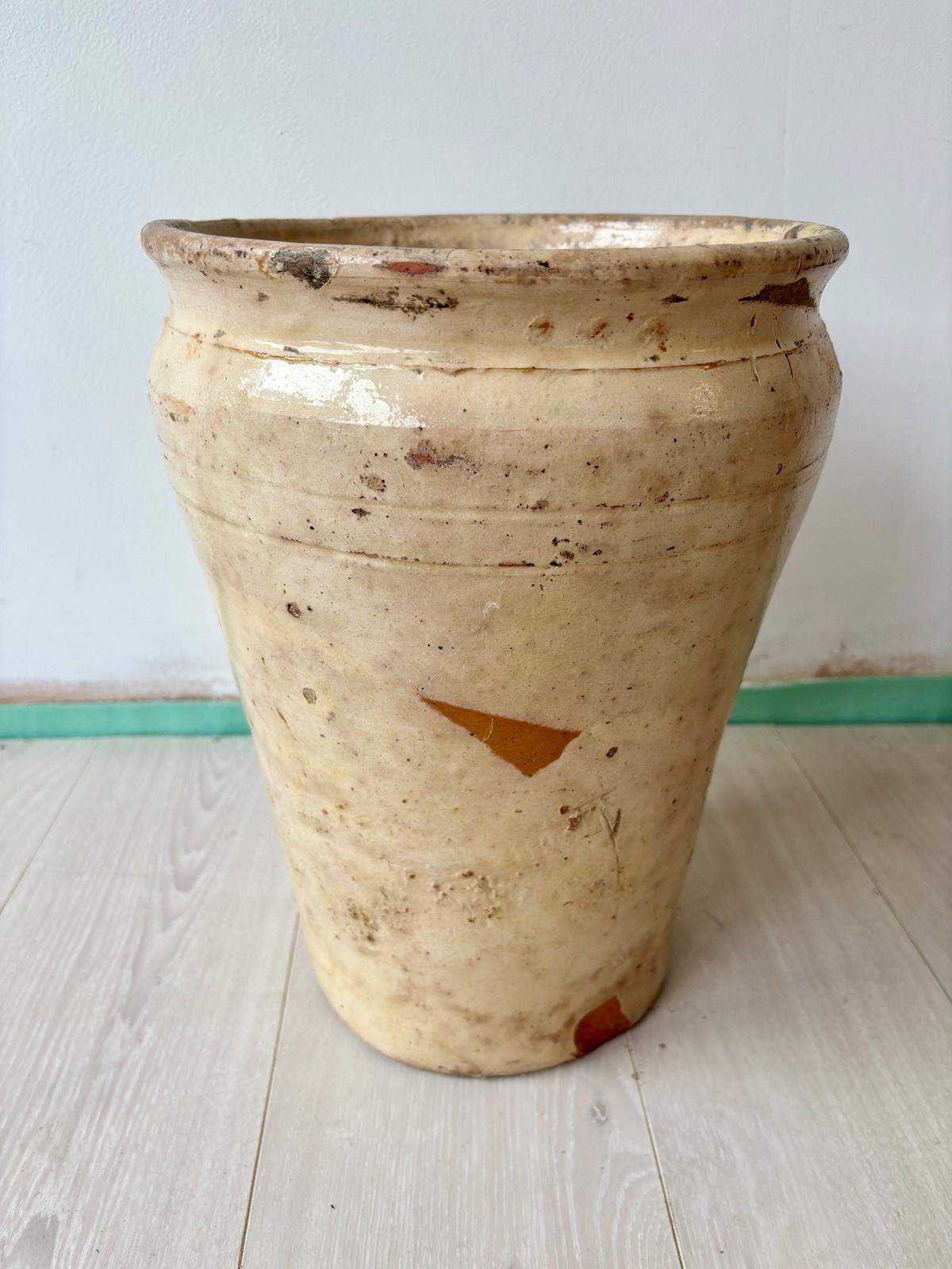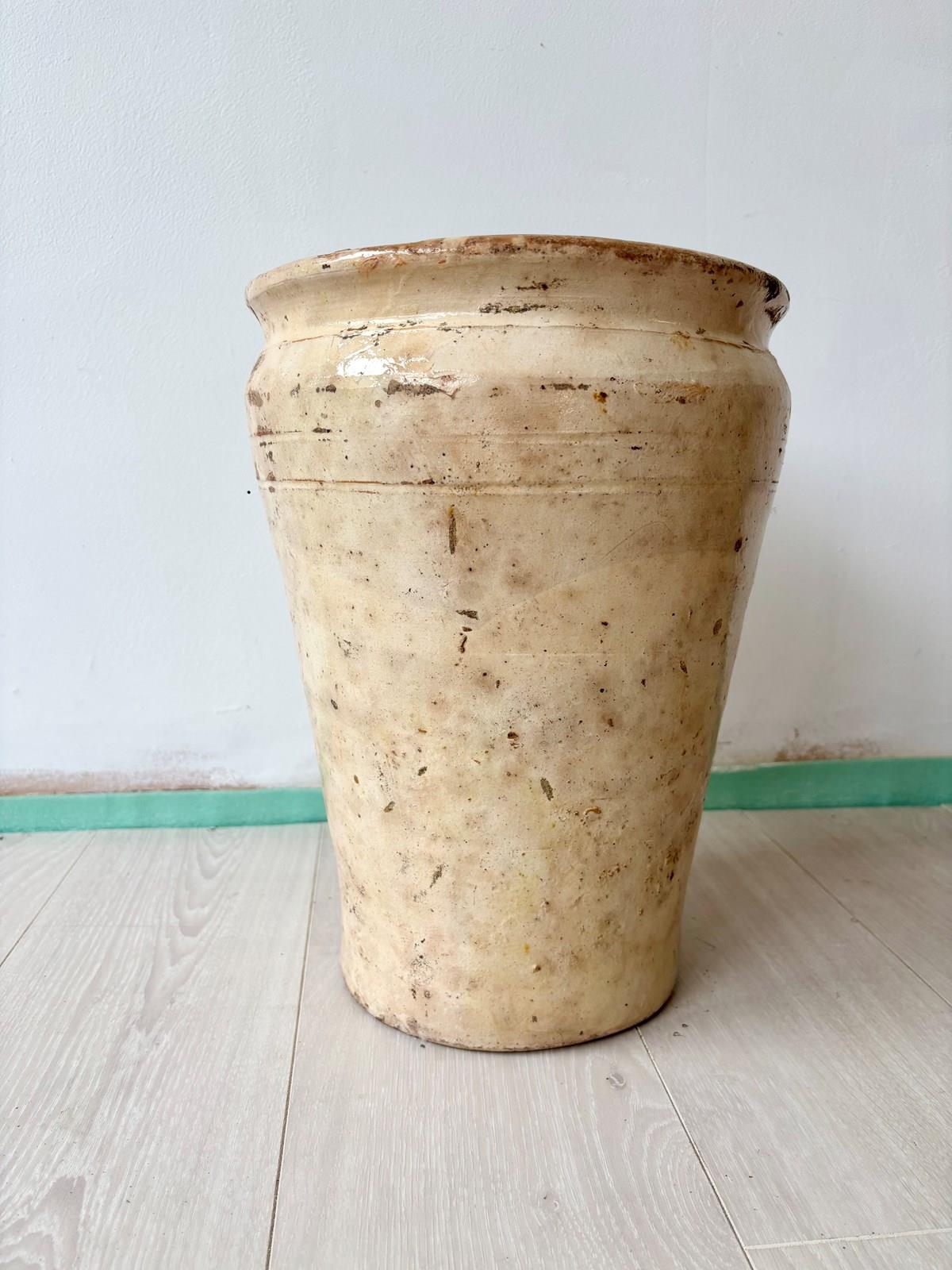 A beautiful 19th century creamy white Italian glazed confit pot/vase from Puglia.
