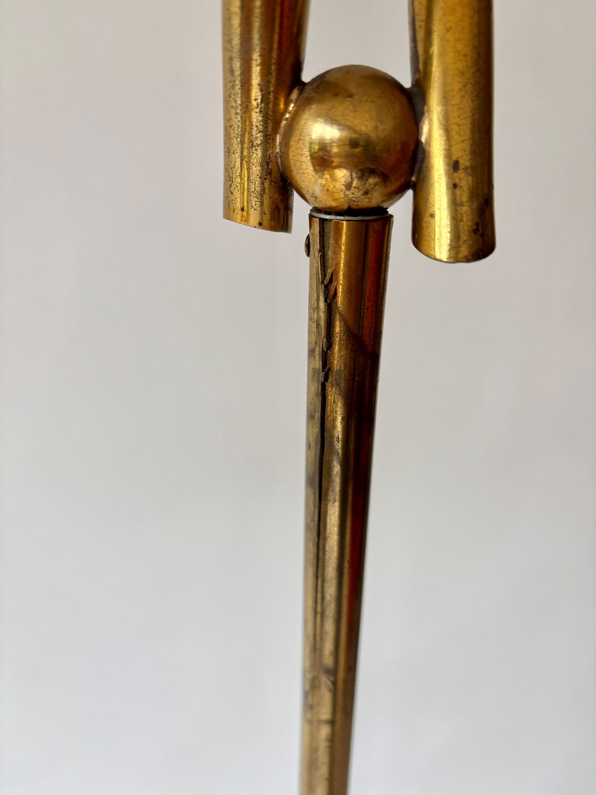 Please note there is a split in the brass tubing near to the top of the lamp, just beneath the brass ball.