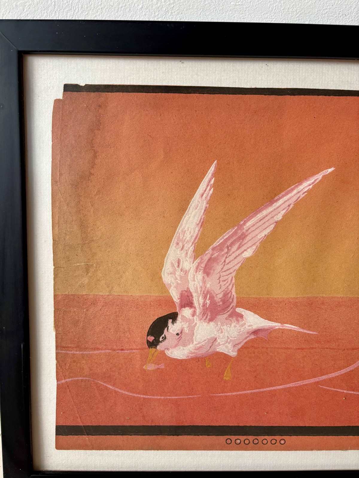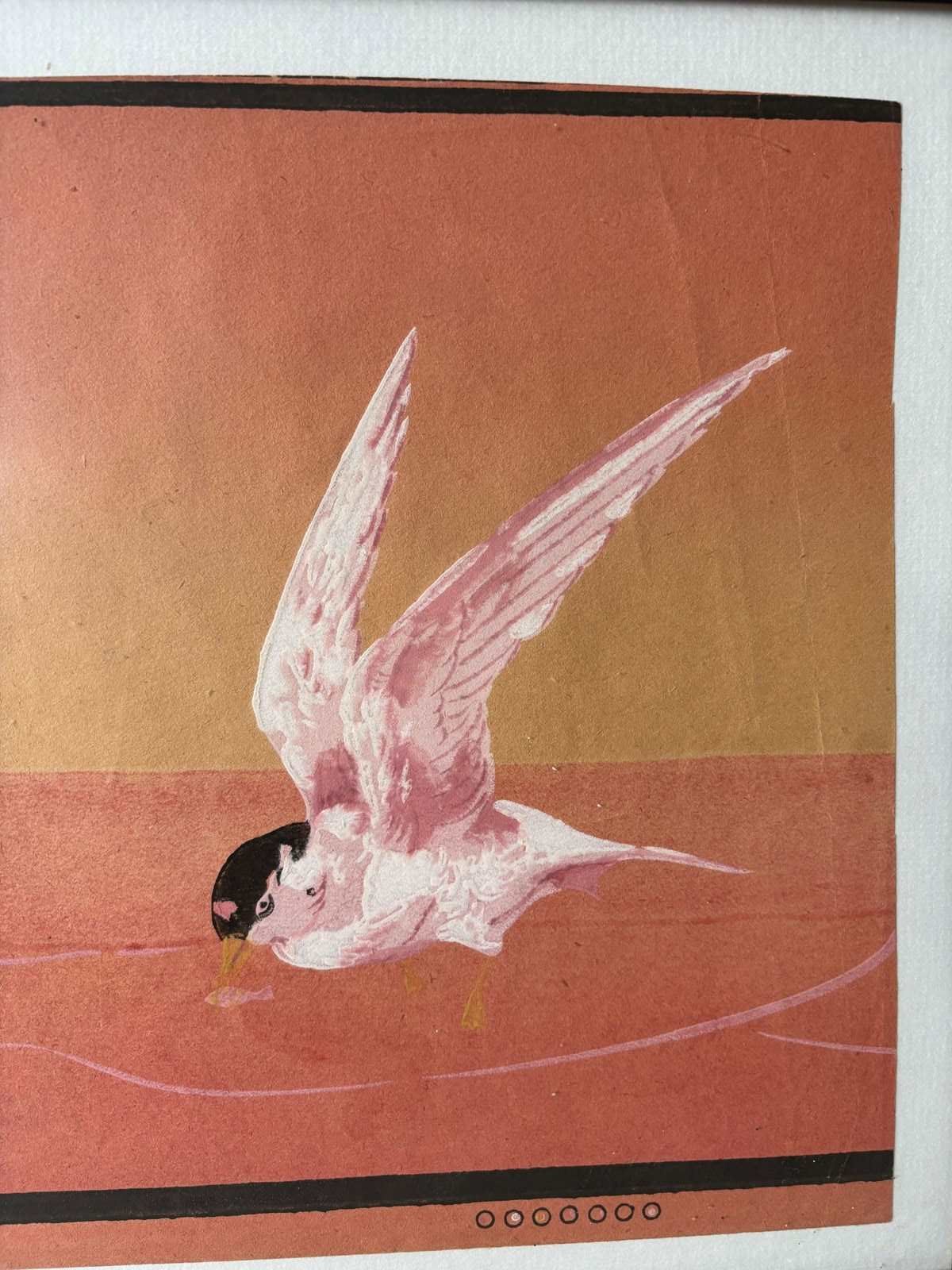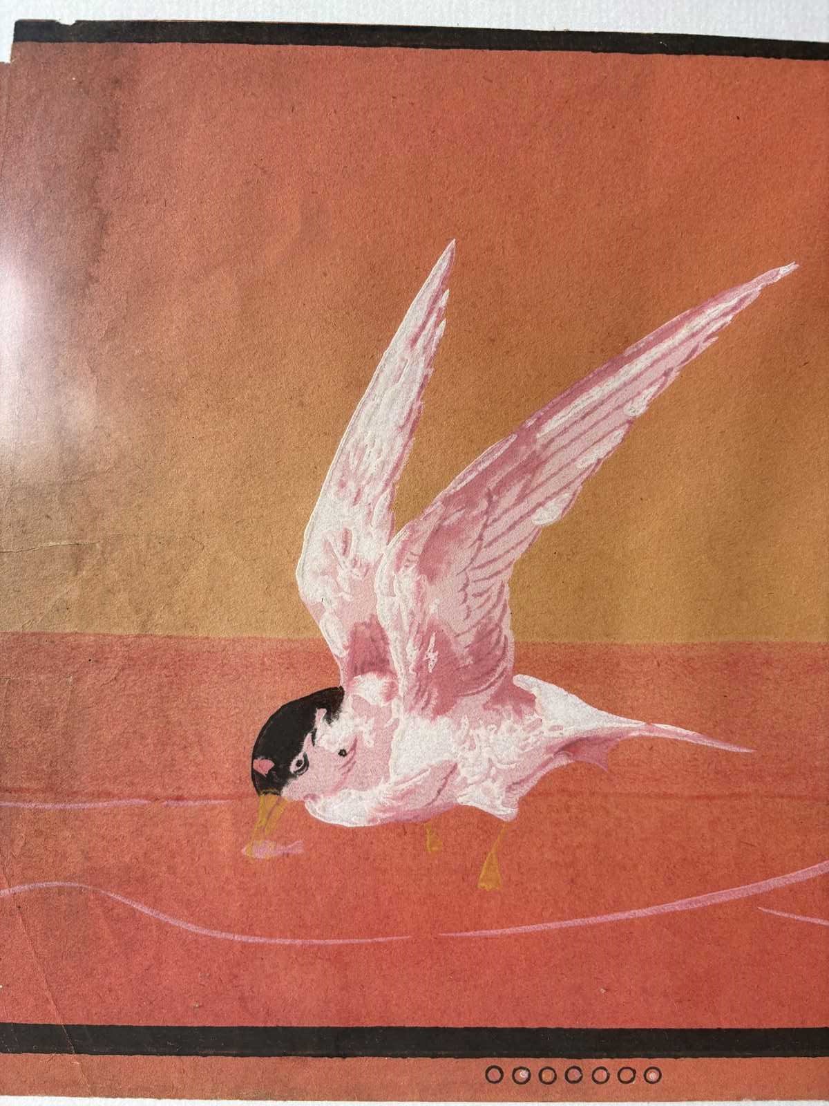Fragment of very old wallpaper, possibly hand drawn of sea swallows