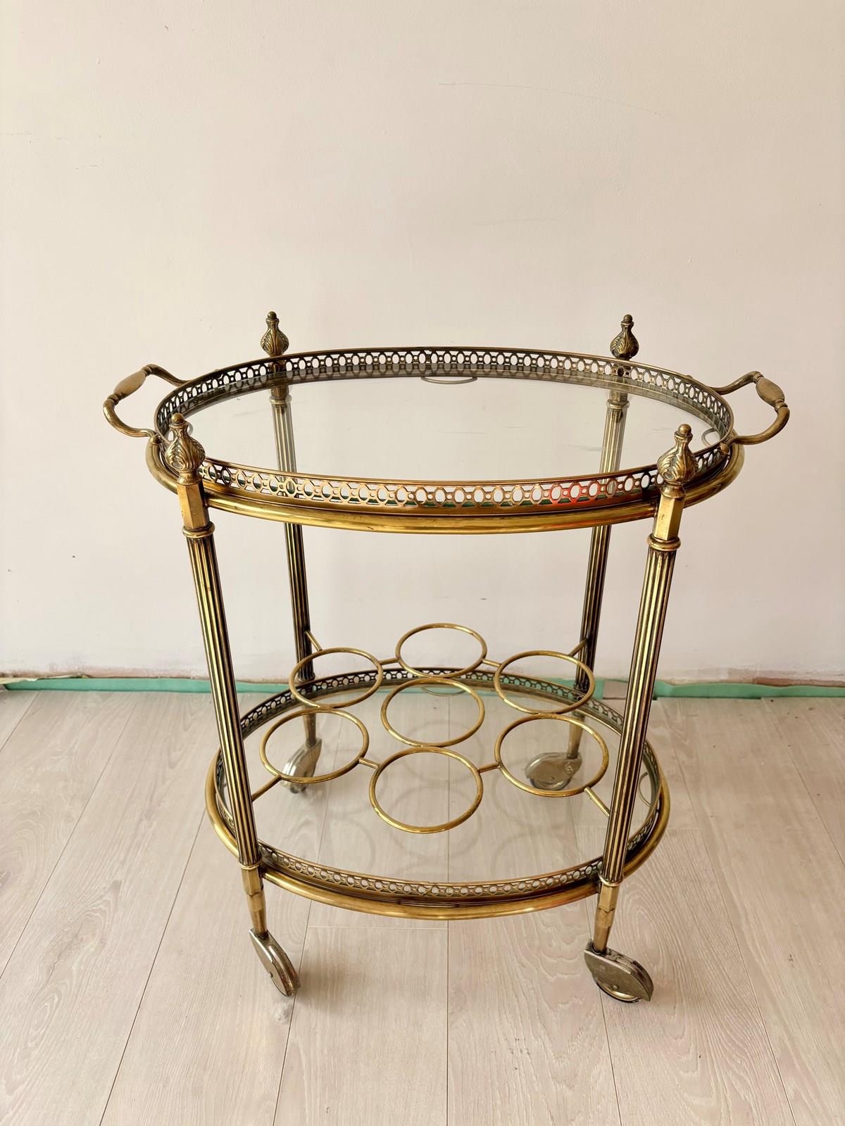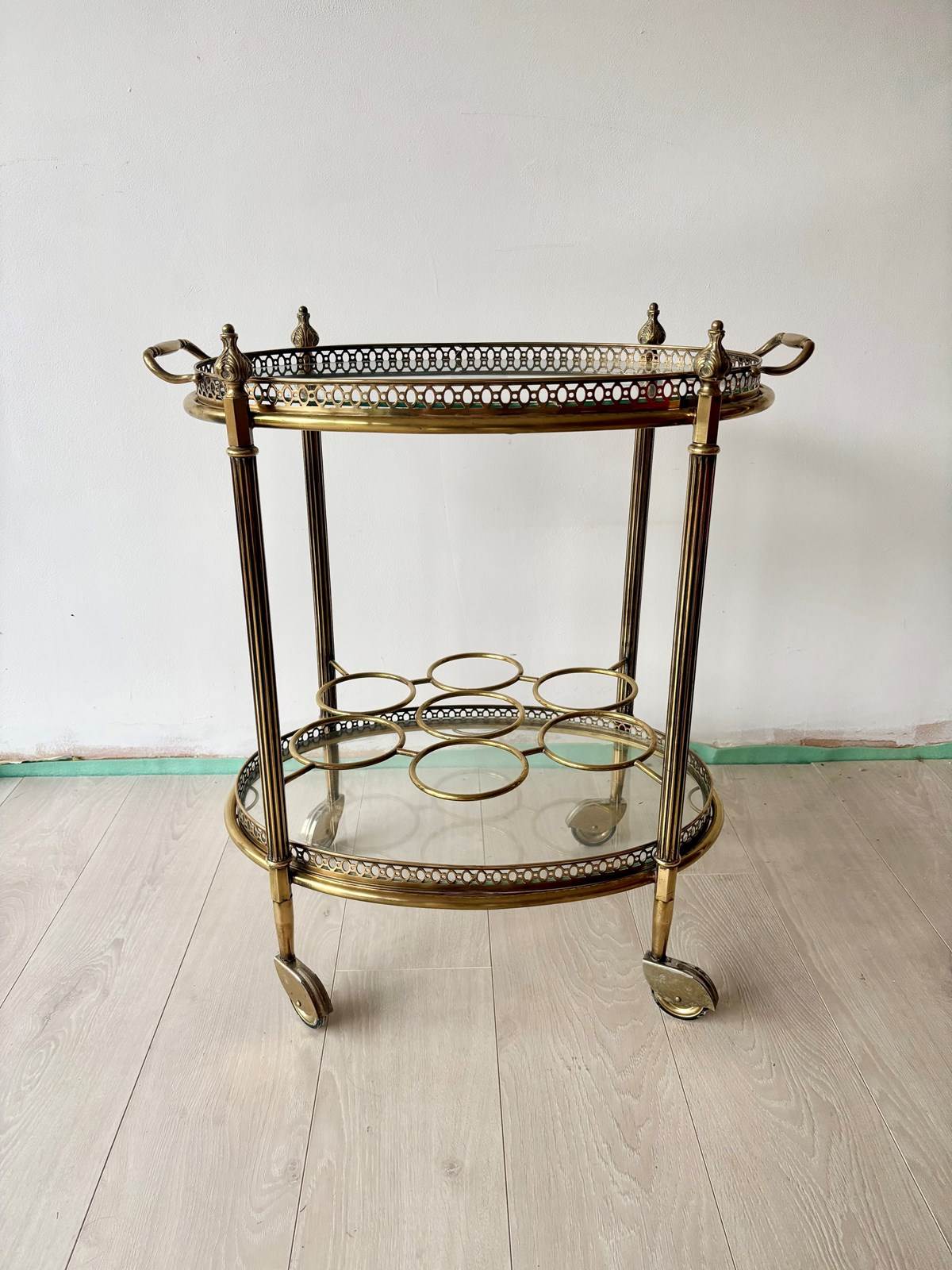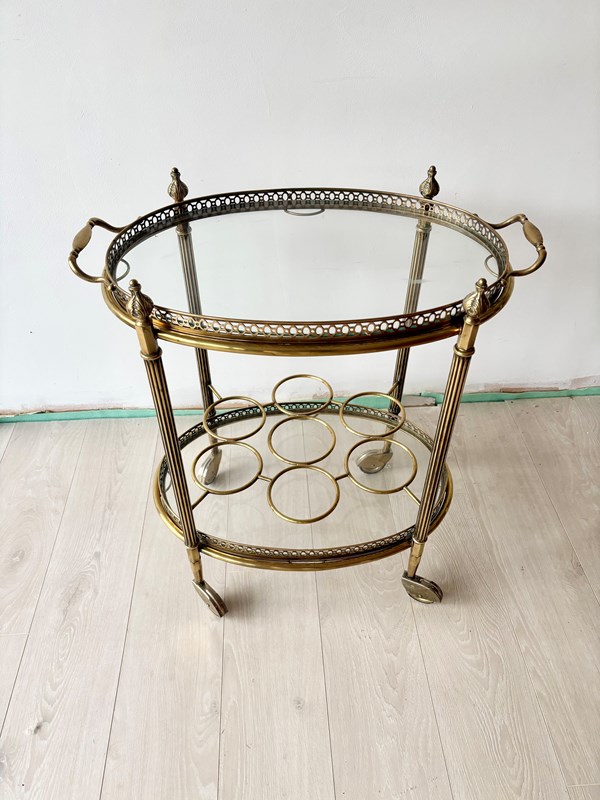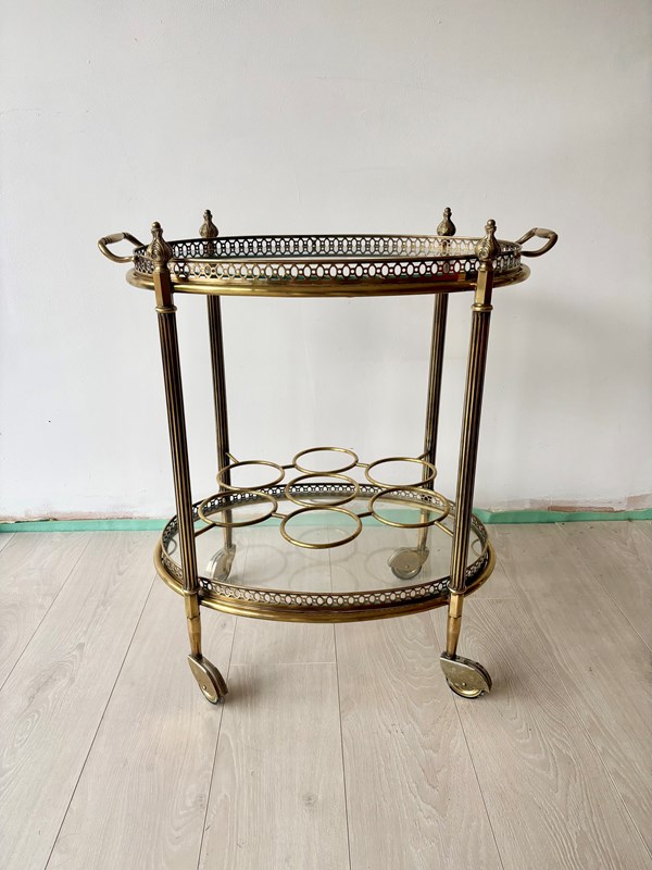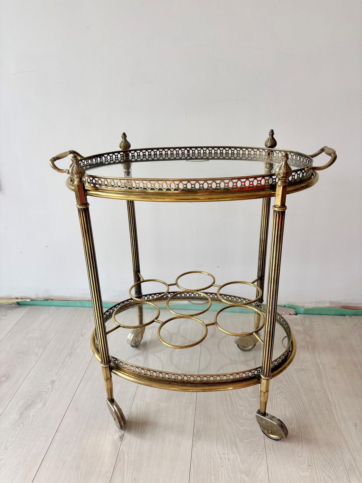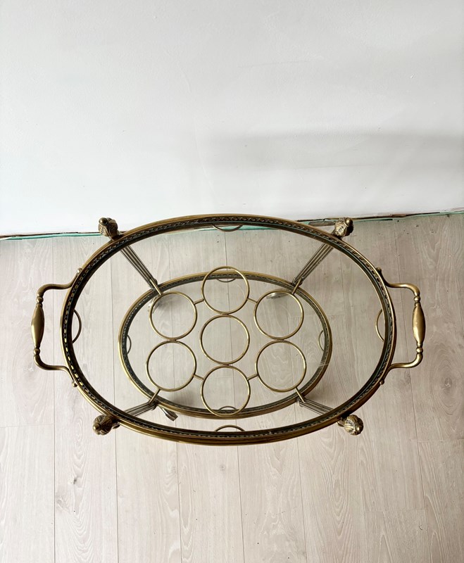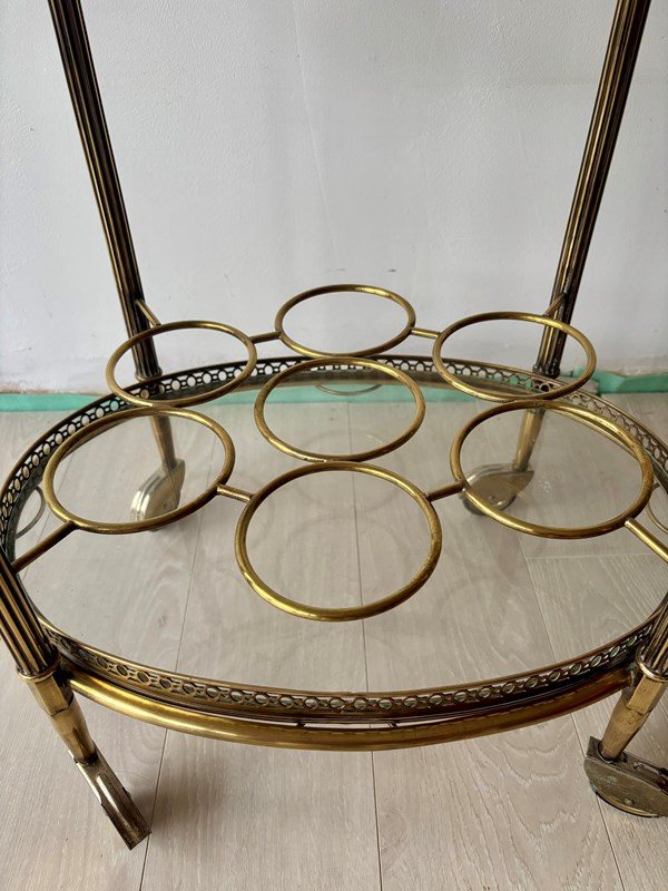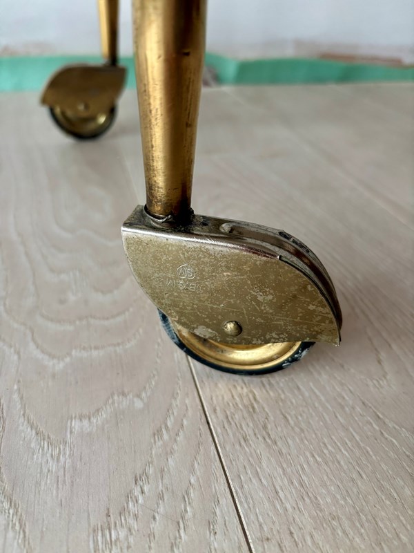 Polished brass frame measuring 56cm wide, 36cm deep and 62cm to finials