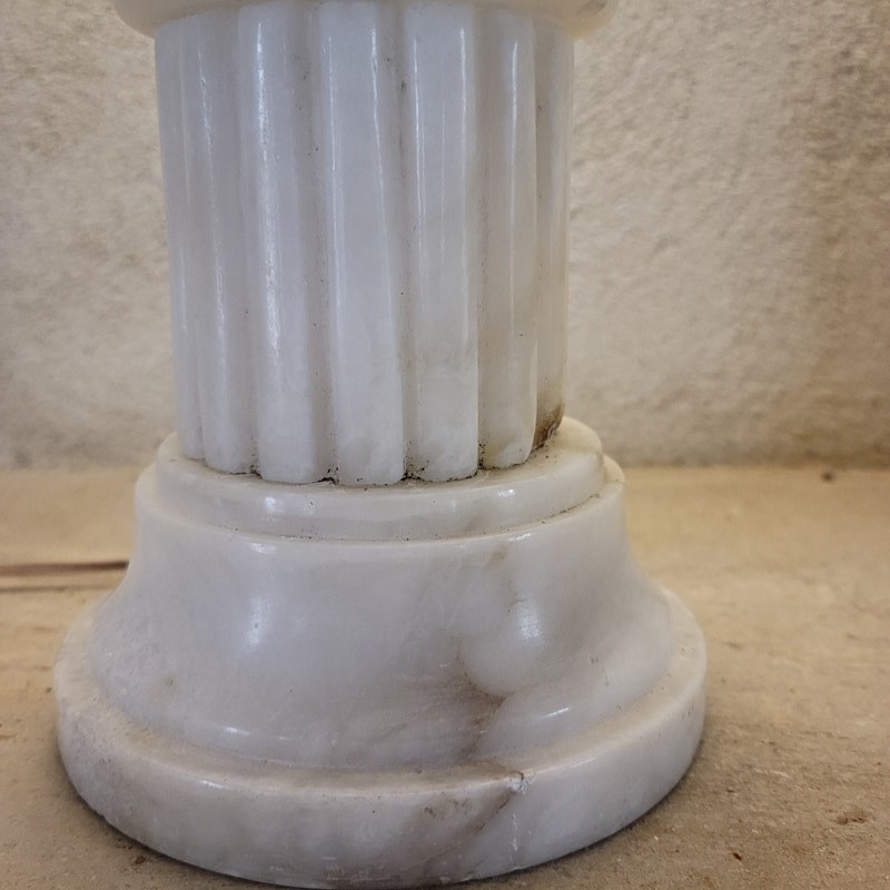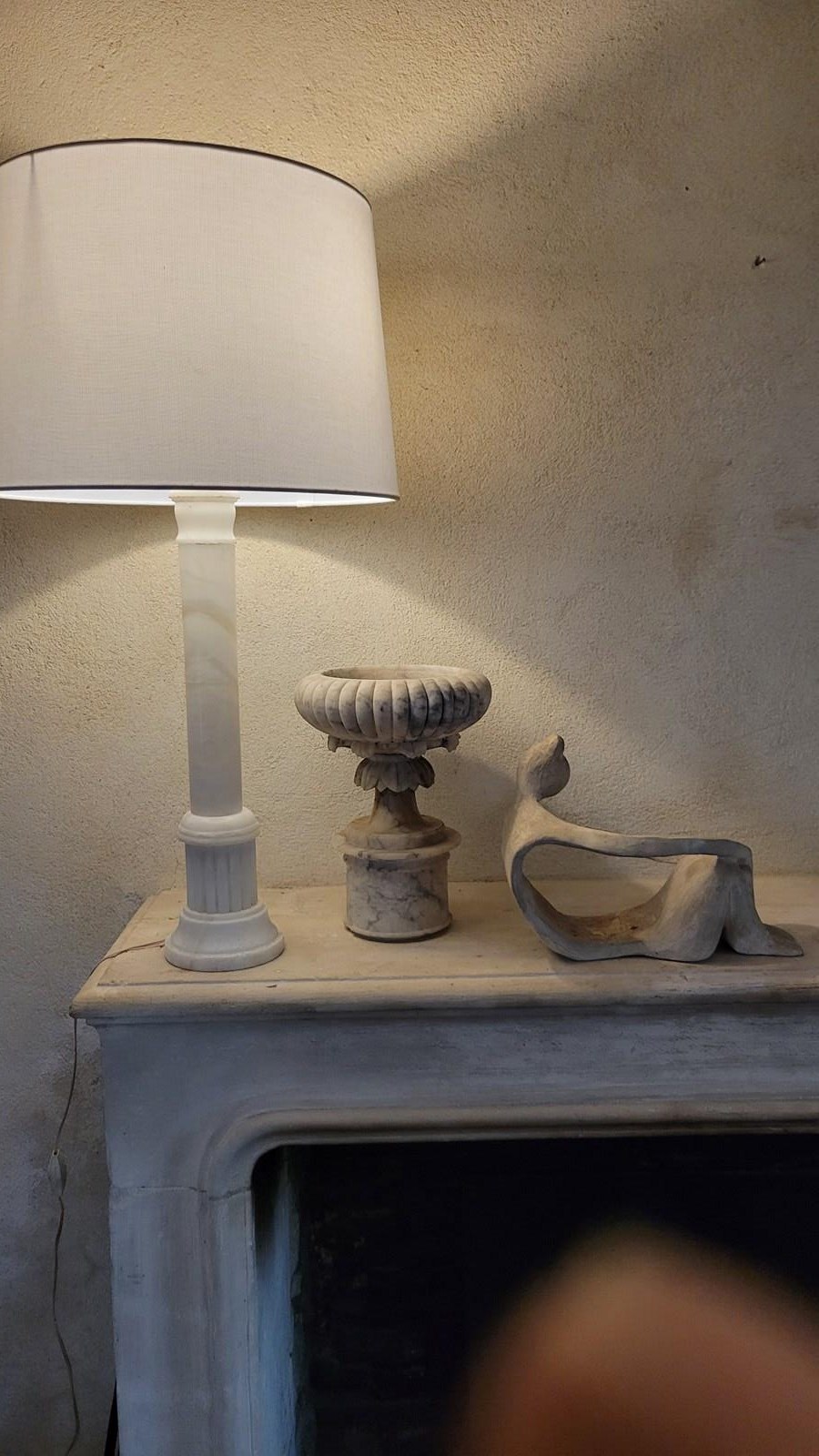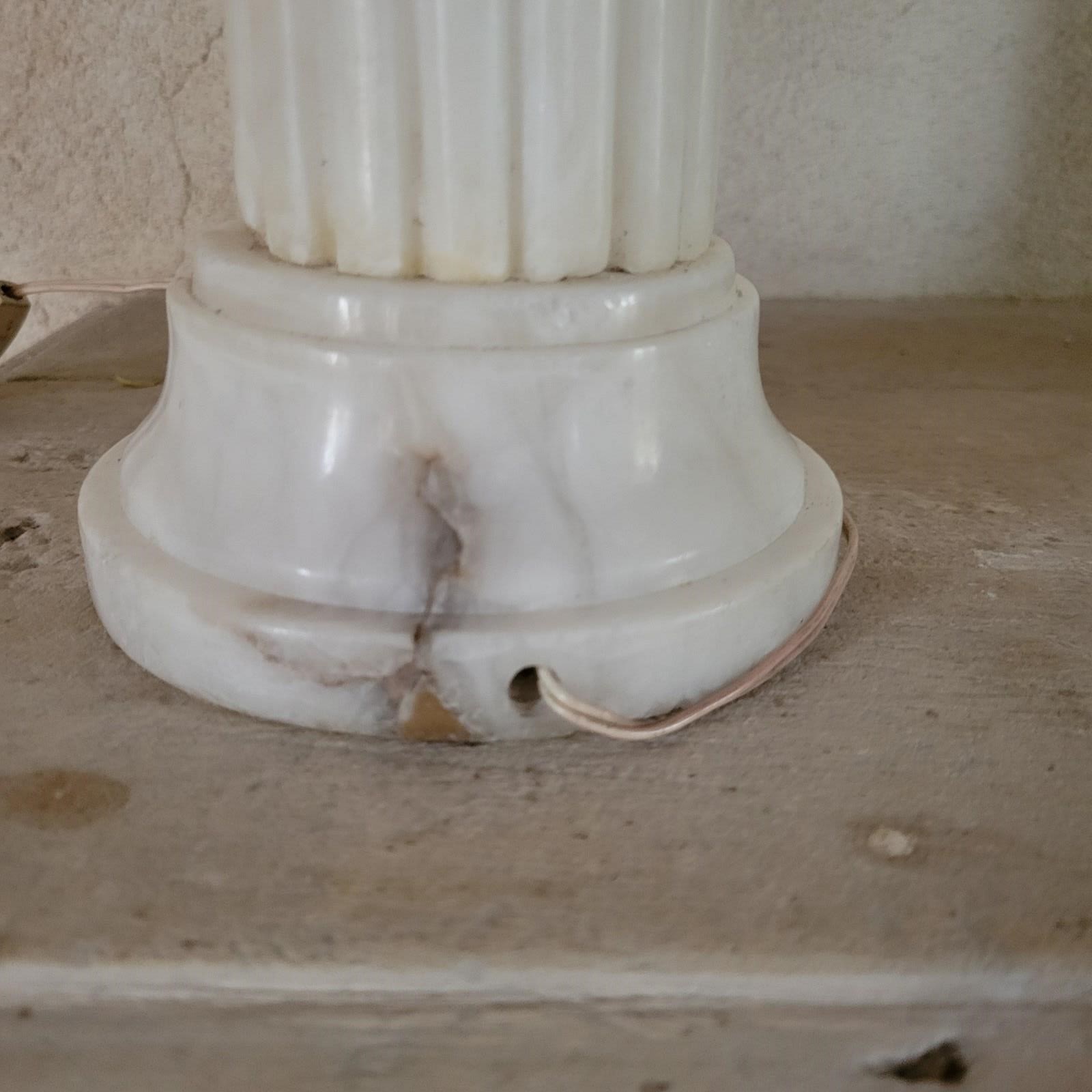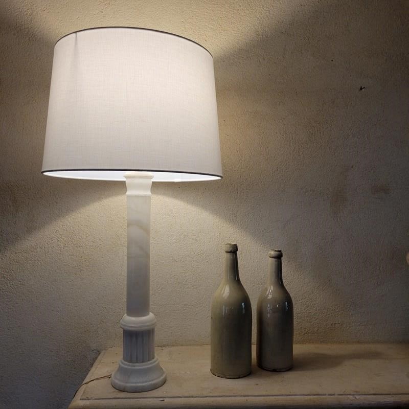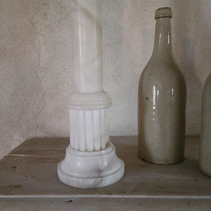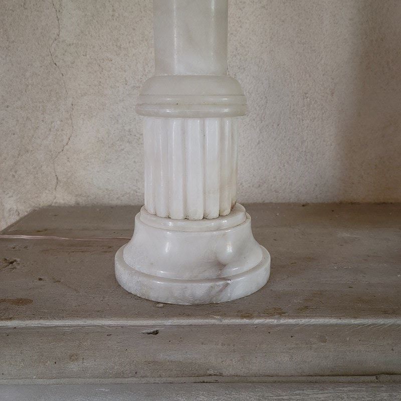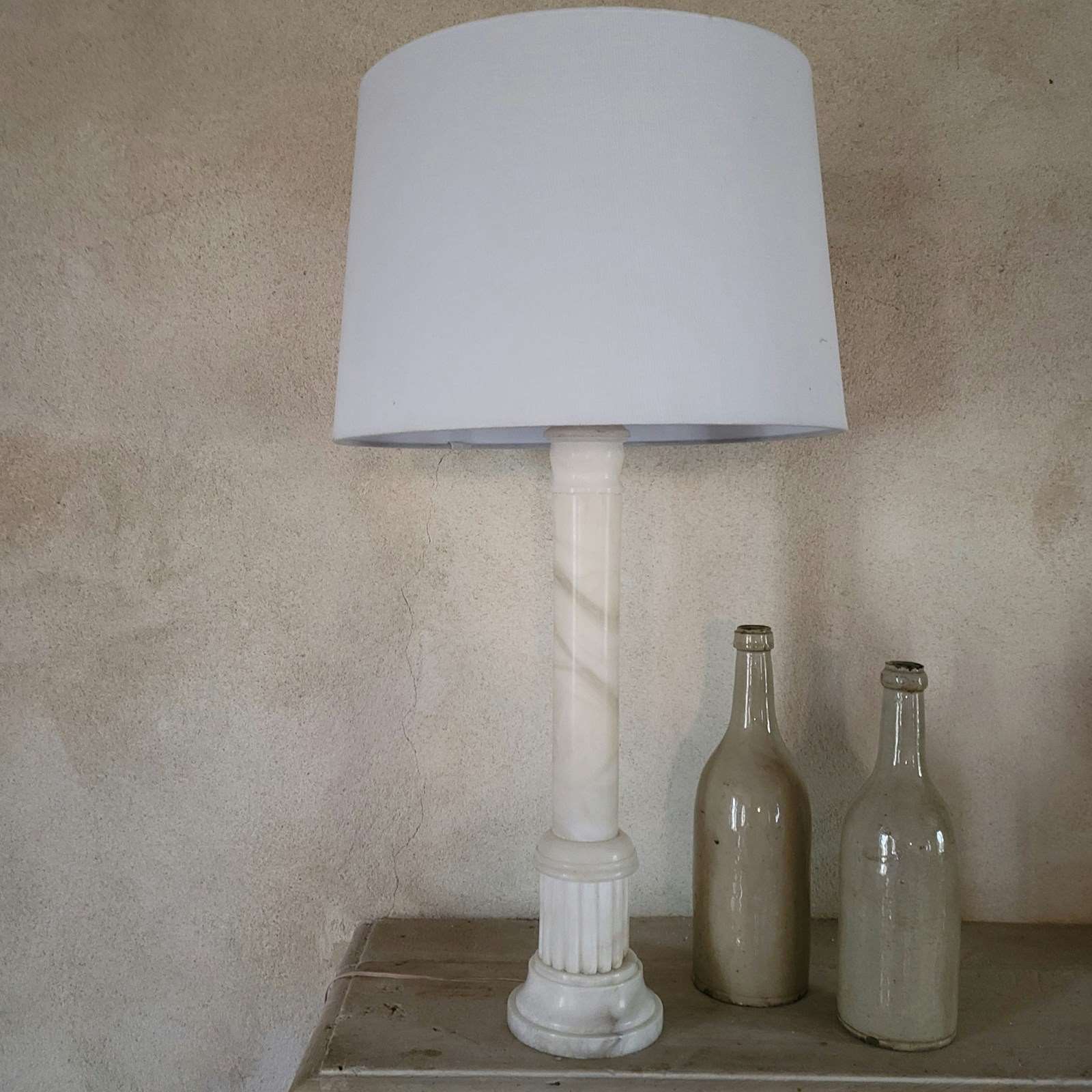 A very stylish table lamp lamp in the form of a classical column. Sourced in France and made from veined alabaster, and certainly made in Italy in the mid century. 52 cm tall to fitting and sold without shade, though photo is with a standard size. In very good vintage condition with only slight but invisible wear to a tiny area of base.
