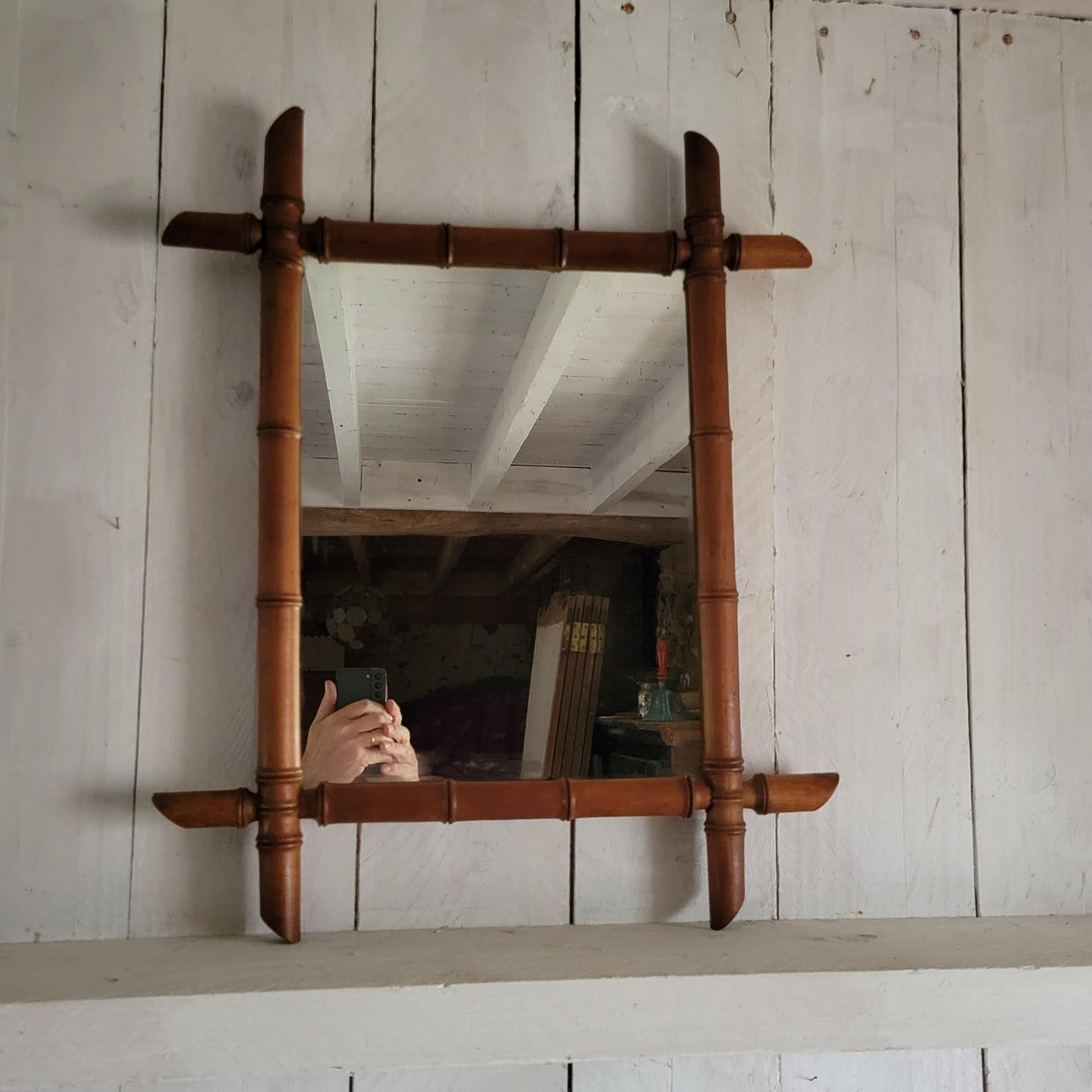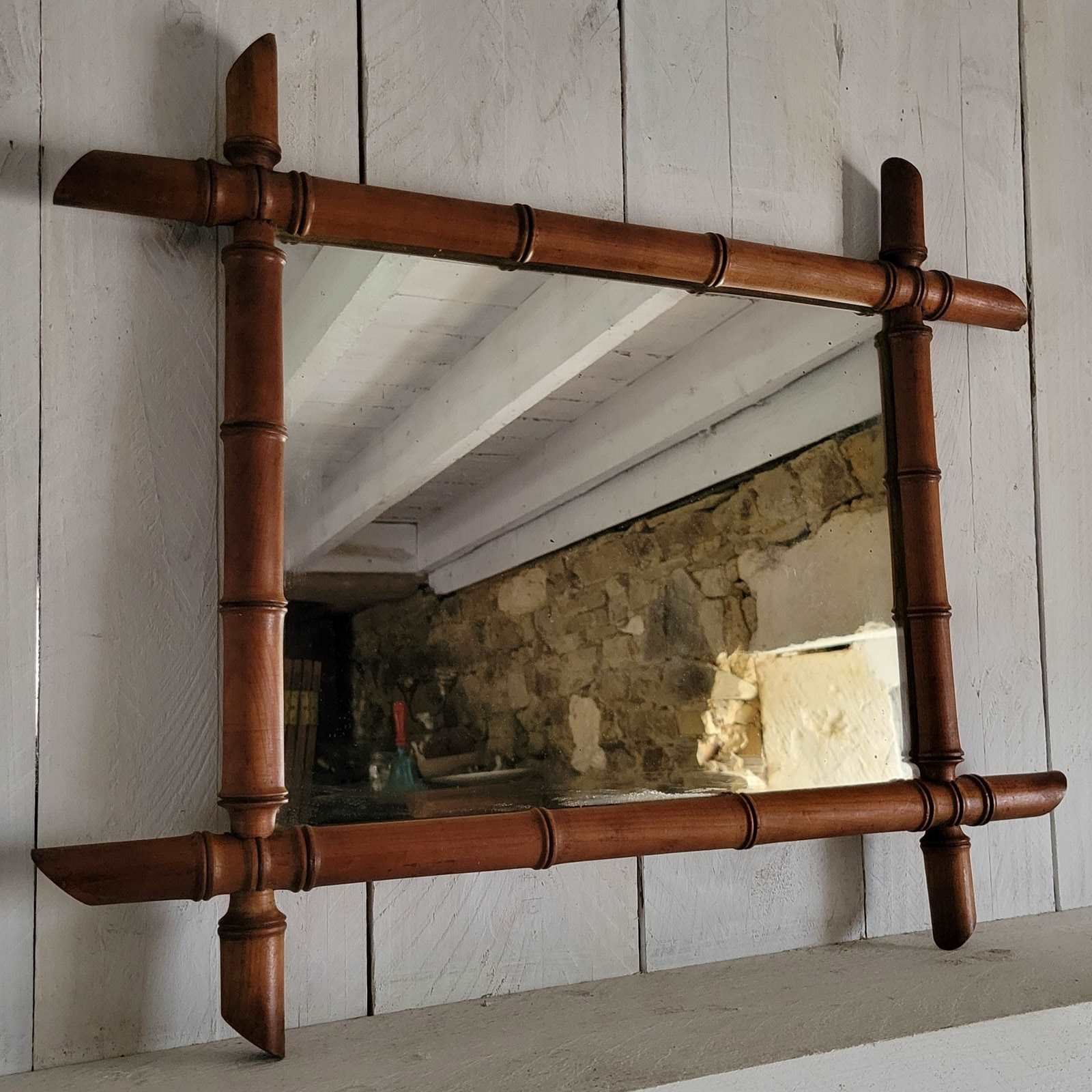 A charming French faux bois mirror from the early 20th century, size 58 x 46