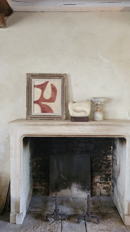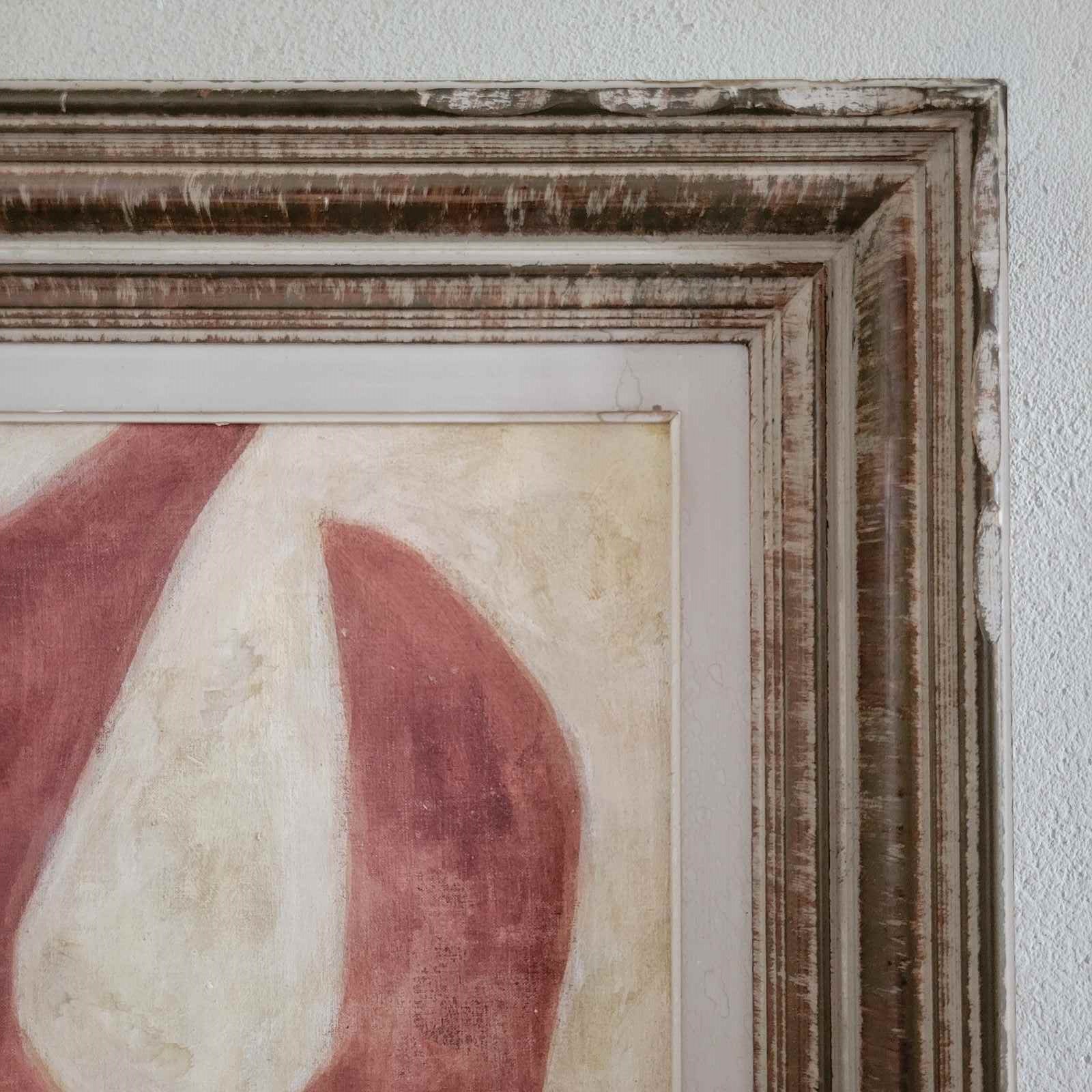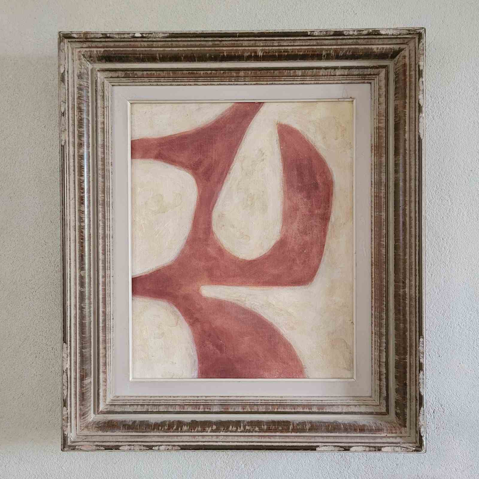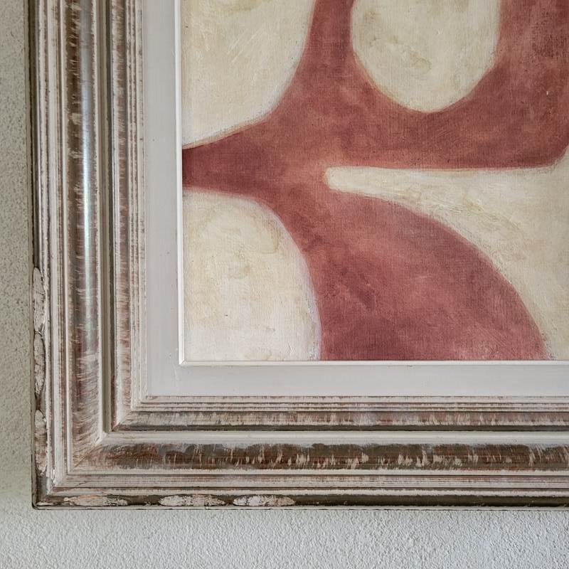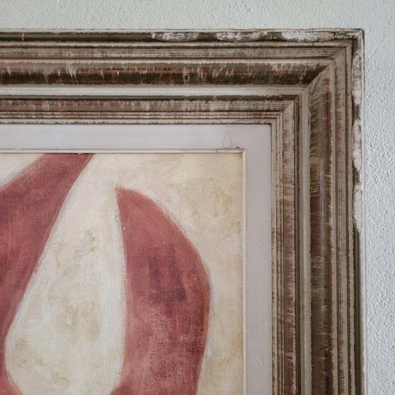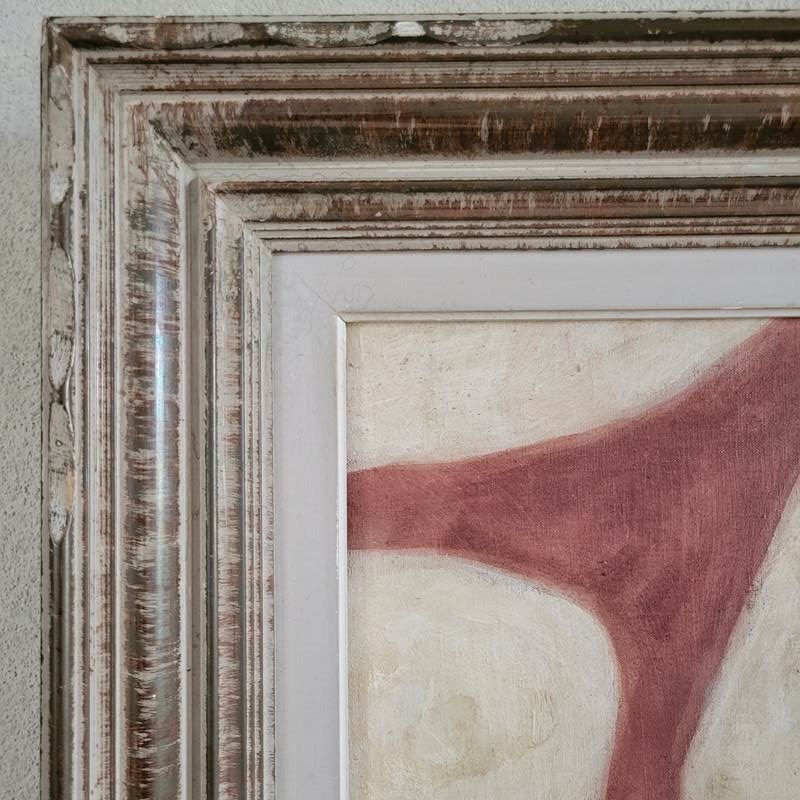 A contemporary painting dated 2025 by Stuart MacLeod, the creative behind tour de source. Painted on reclaimed French linen, using inks, paints and stains, the works feature a connectivity between architectural and organic form. Painted in his Normandy studio, and presented in a vintage French frame. Size 57 x 49cm including the frame.
