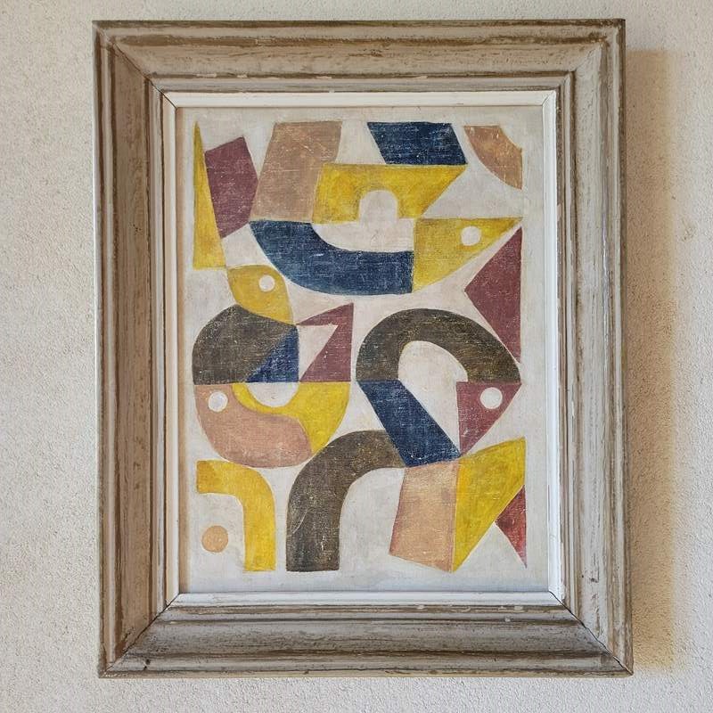 A contemporary abstract painting by Stuart MacLeod, the creative behind Tour de Source. Dated 2025, and painted in ink, onto reclaimed French linen and presented within a vintage French frame, Stuart's work is inspired by both organic and architectural forms. He paints either from his Normandy home or back in his UK studio. Size 45 x 36 including frame