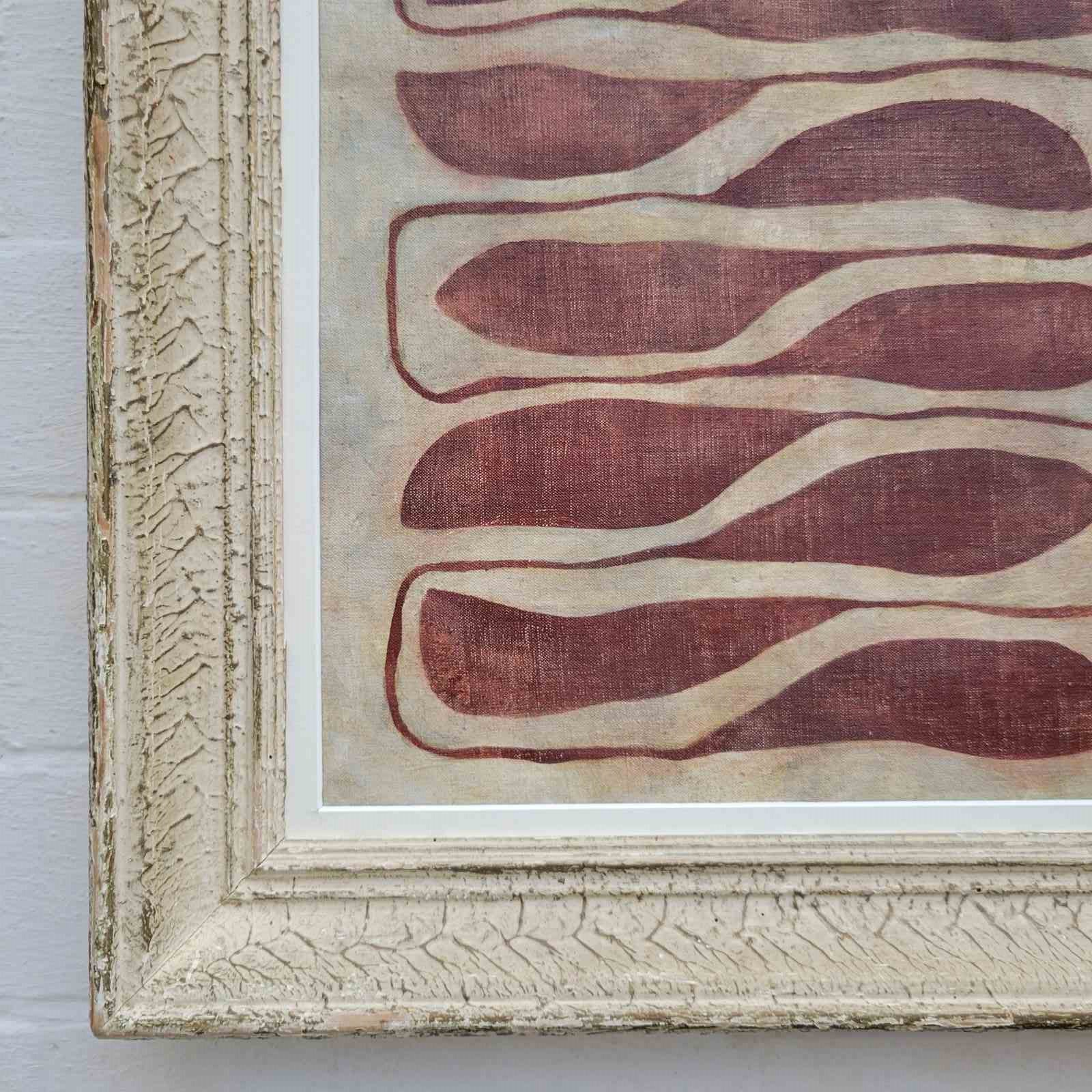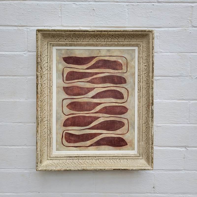 A contemporary painting by Stuart MacLeod, the creative behind tour de source. Painted on reclaimed French linen and presented within a vintage French frame, and painted in ink and stained housepaint. Stuart's organic inspired work evolves from the natural landscape of his Normandy garden. 54 x 46cm with frame.