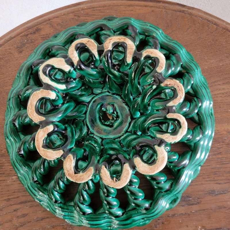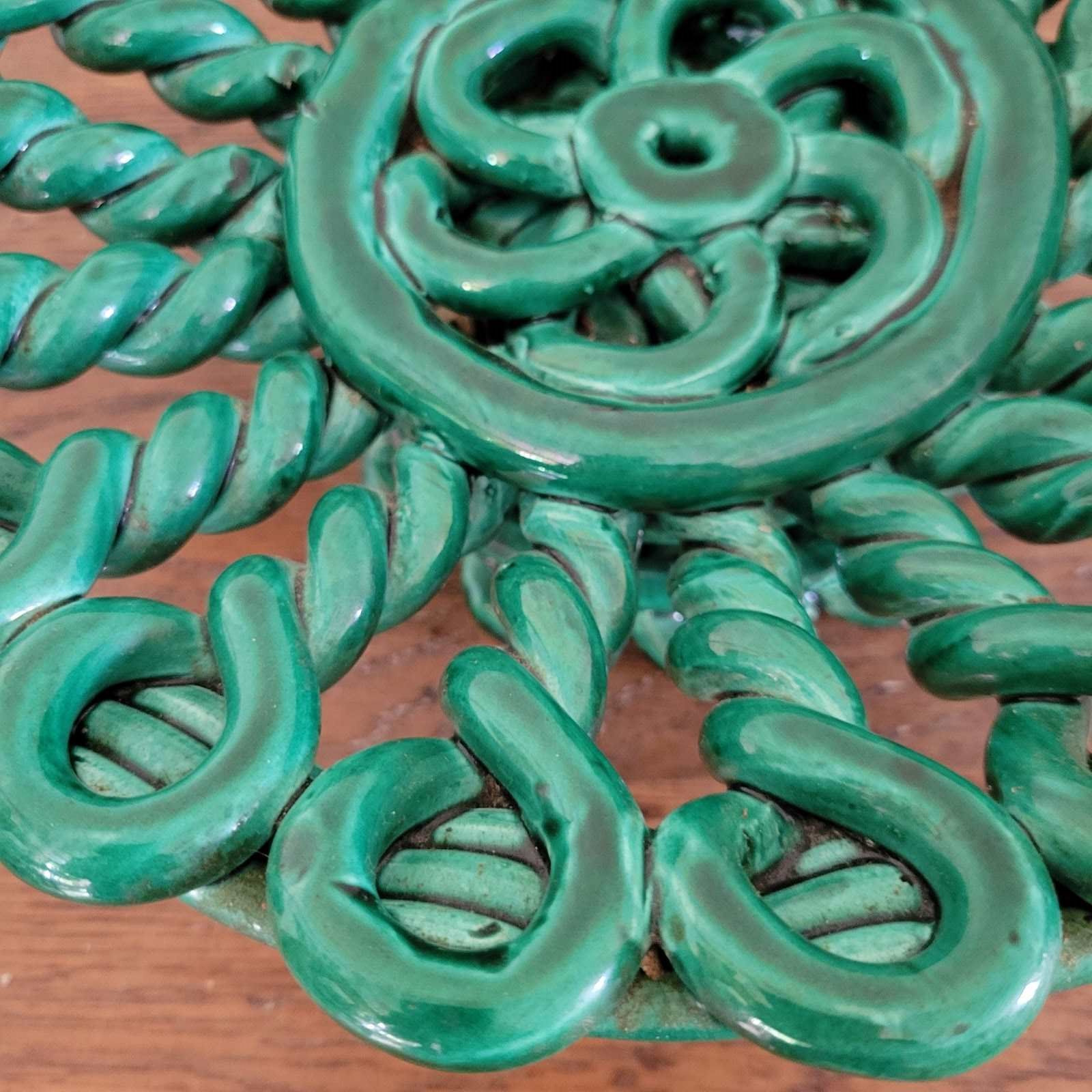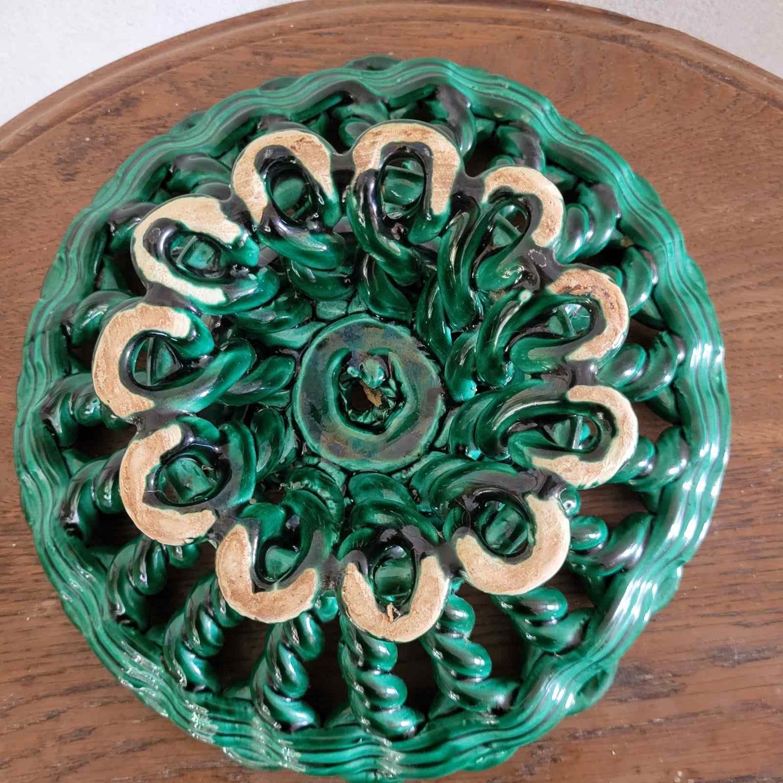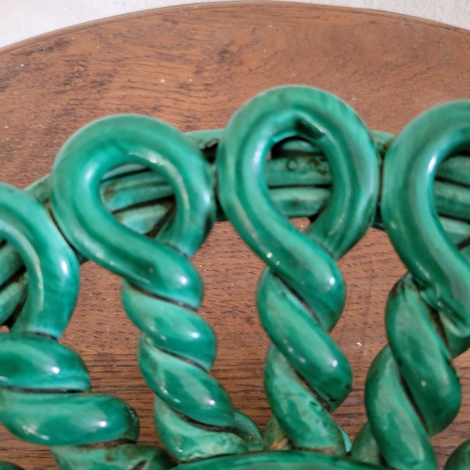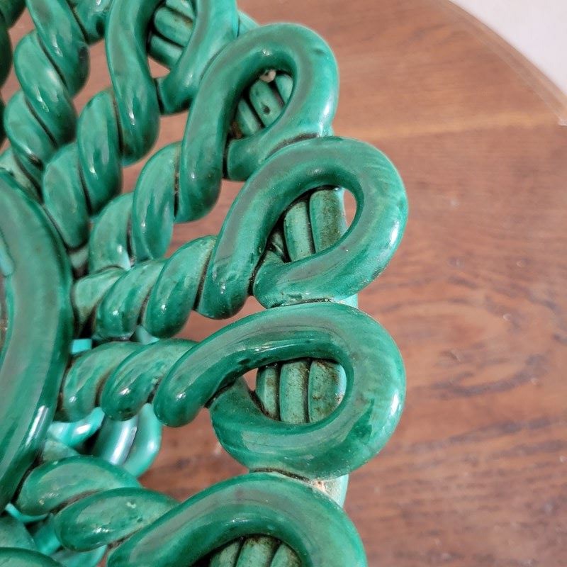 A gorgeous French ceramic fruit basket from the mid century. Made it master craftsmen in the pottery village of Vallauris, in the south of France, famous for its collaboration with Picasso. This is made entirely by hand, with a fabulous glaze and colour. Condition is excellent with no cracks or chips. This is a beautiful decorative piece for any room. Size 38 x11cm
