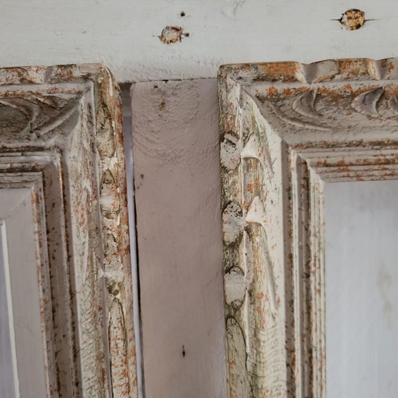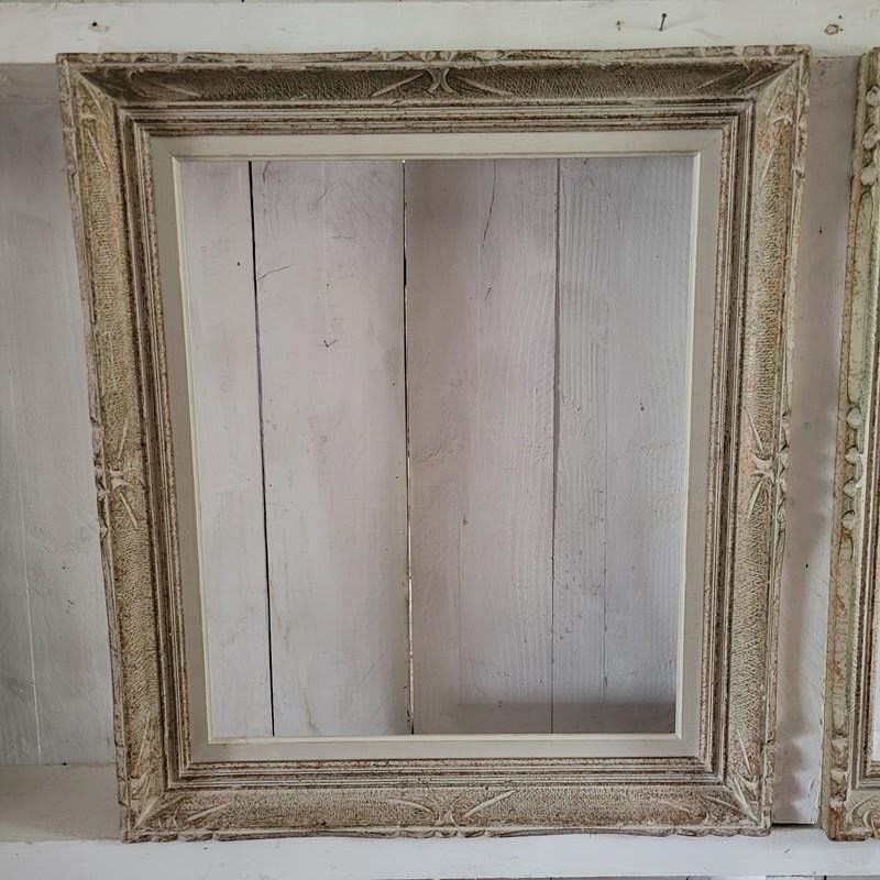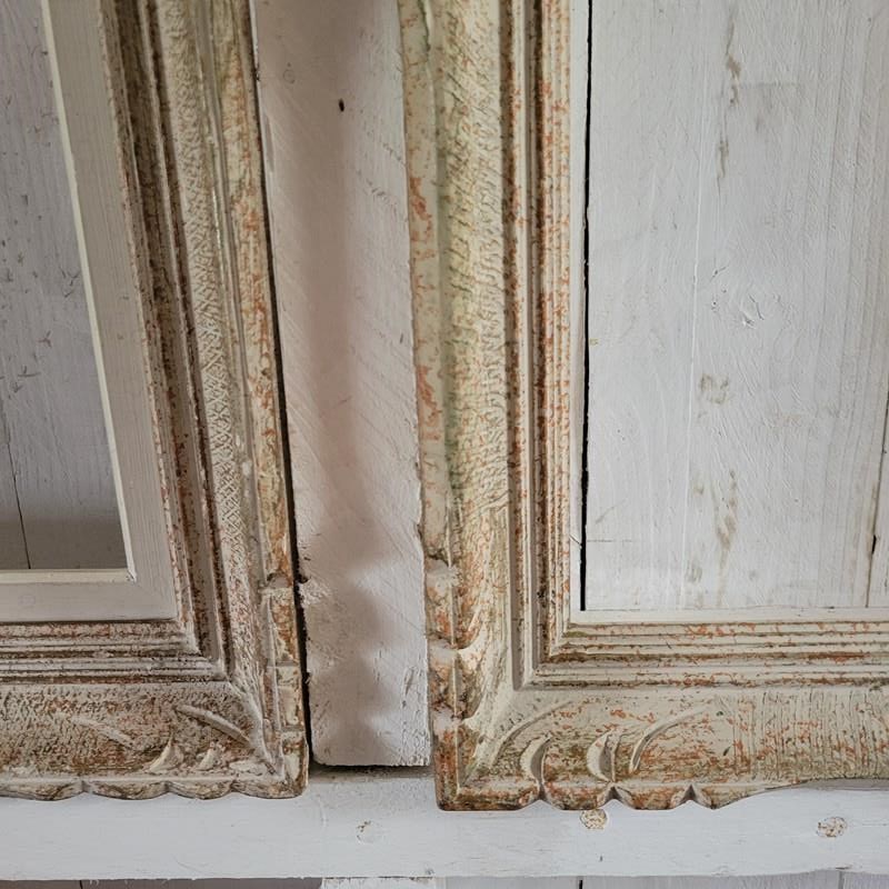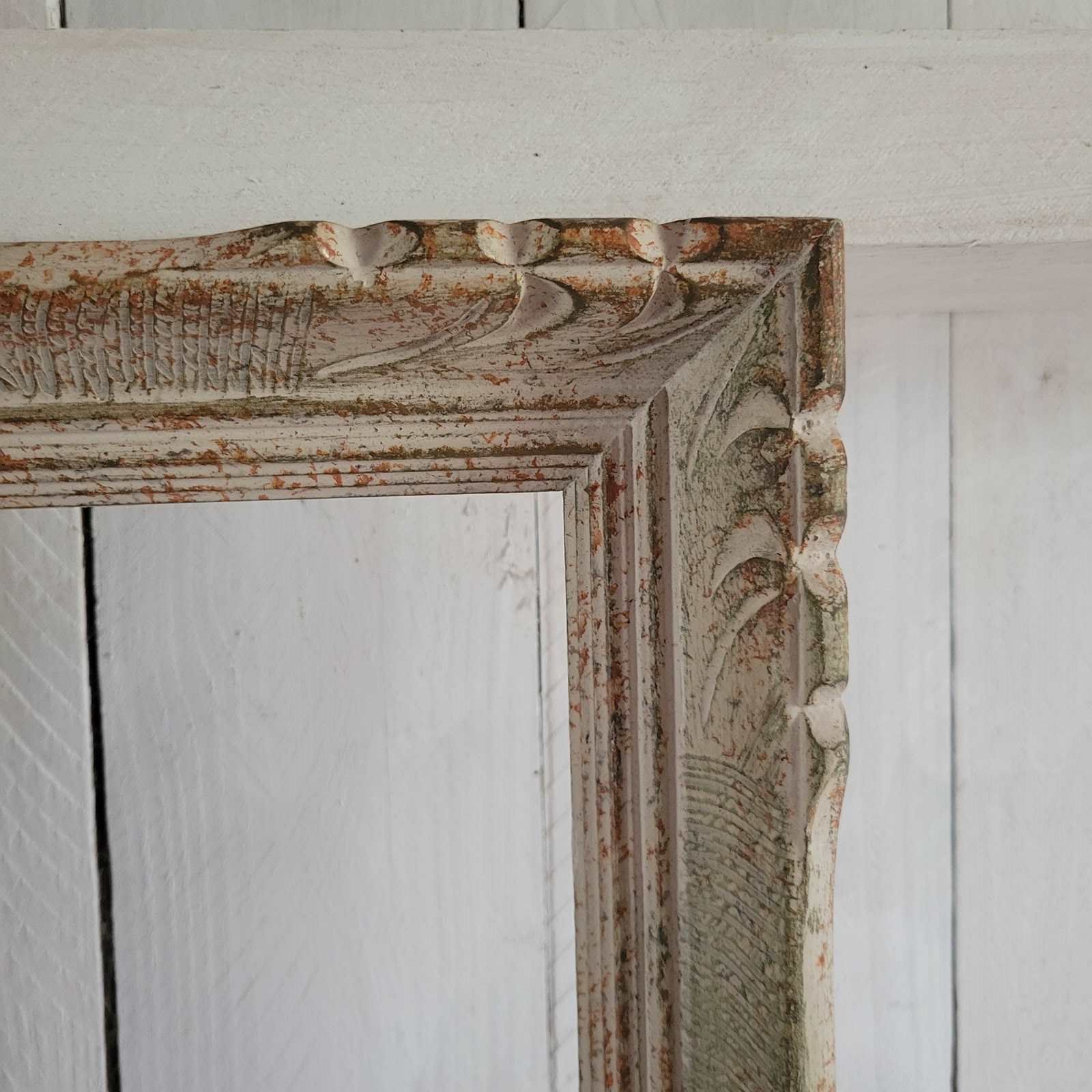 A very stylish pair of French Montparnasse picture frames, dating from the 1950's. With their characteristic aged paintwork and subtle carvings, they are and elegant addition to a room, for paintings or even mirrors, and rare to find a pair! In very good condition.