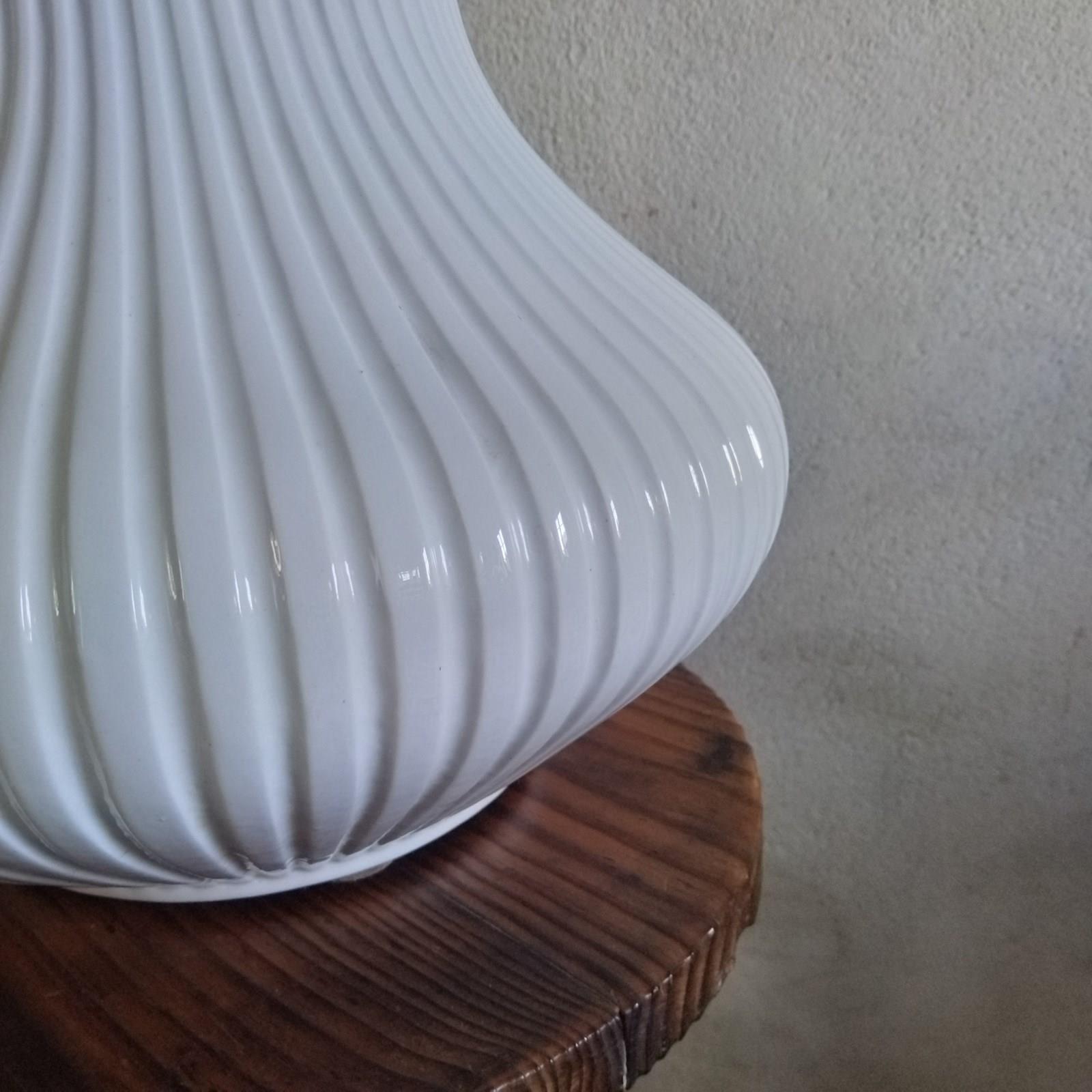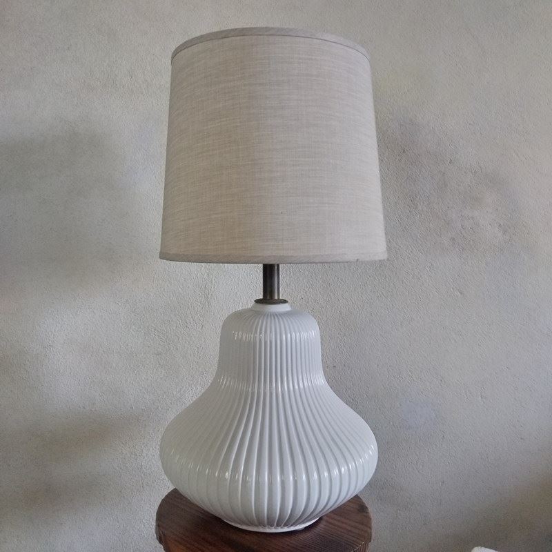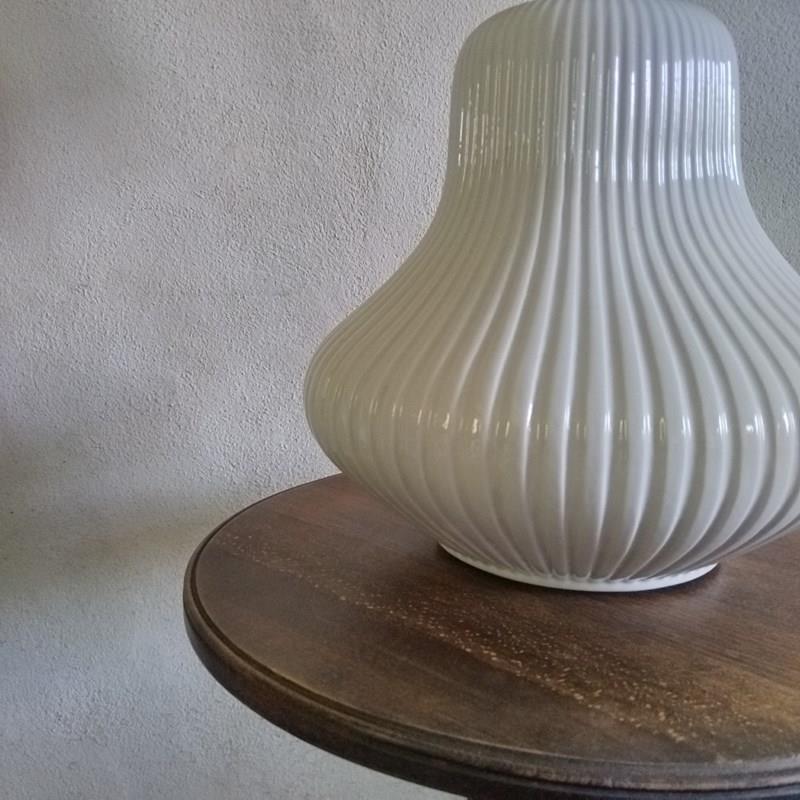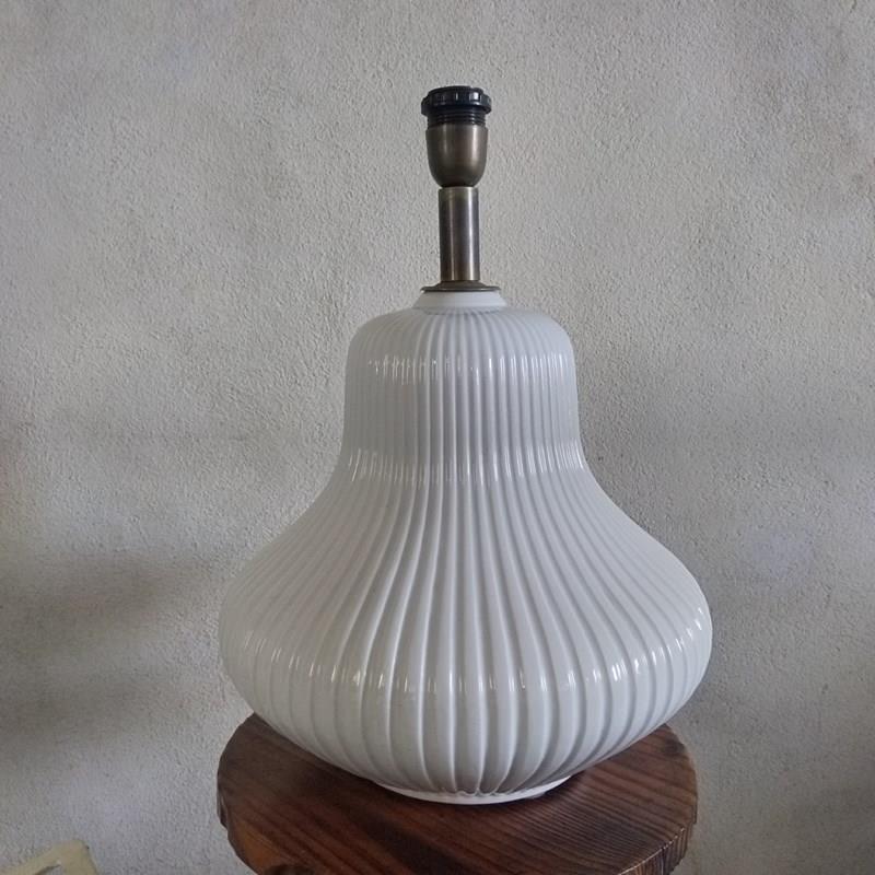 An Impressive ceramic table lamp, sourced in France and dating from circa 1970's. In very good vintage condition with no chips or cracking, the lamp has a wonderful ridged patterned relief surface and a gorgeous full shape, with brass fittings. Ready to use and sold without shade. Height to top of fitting 50cm Width 35cm