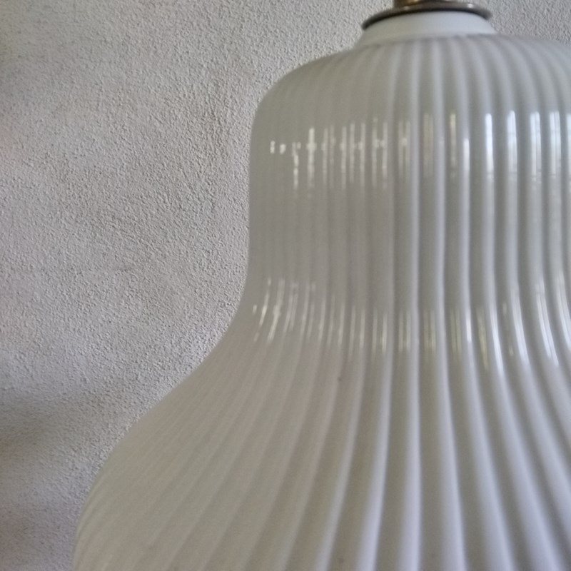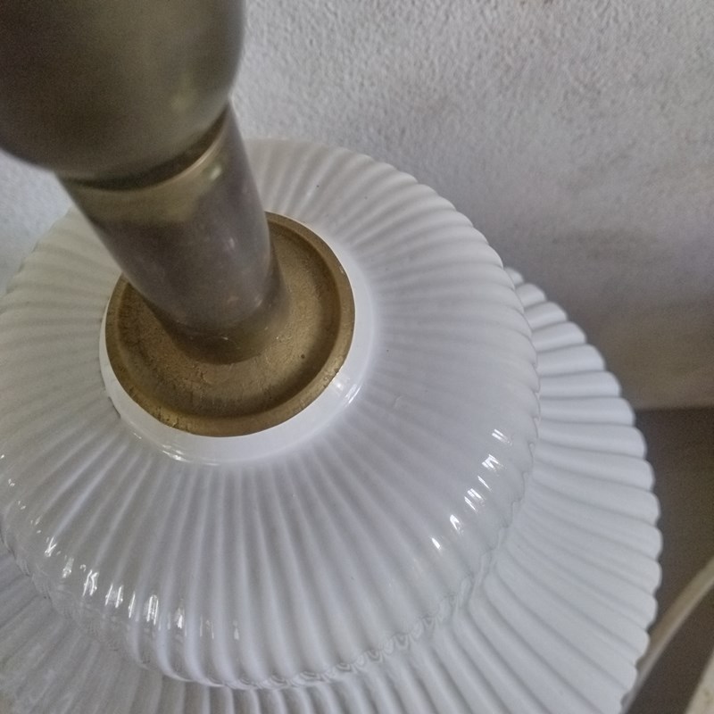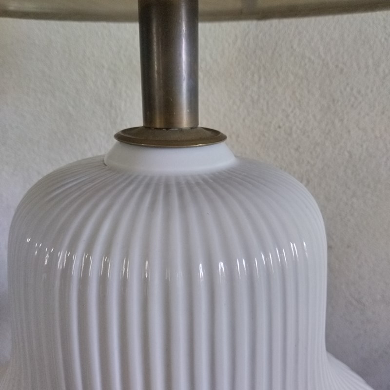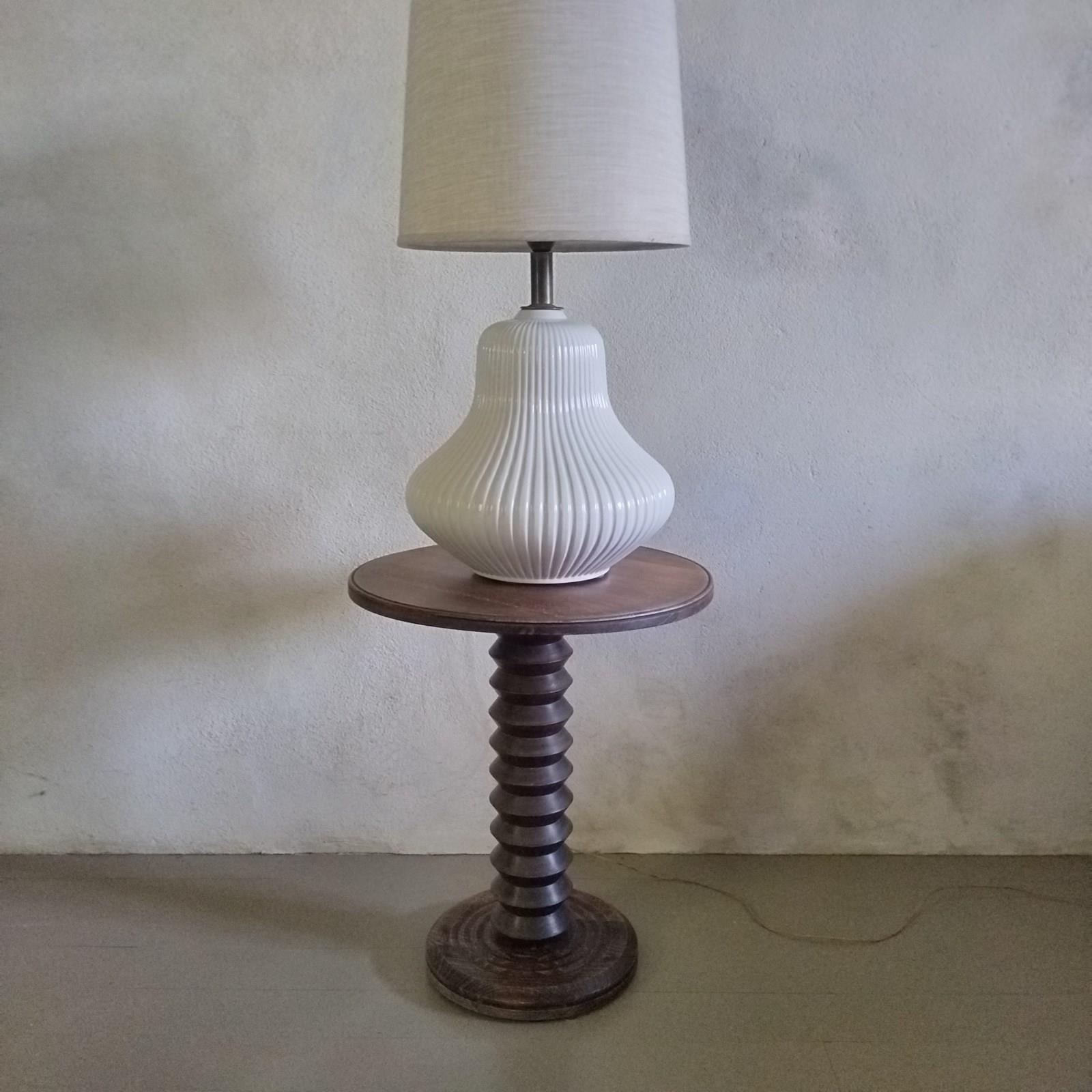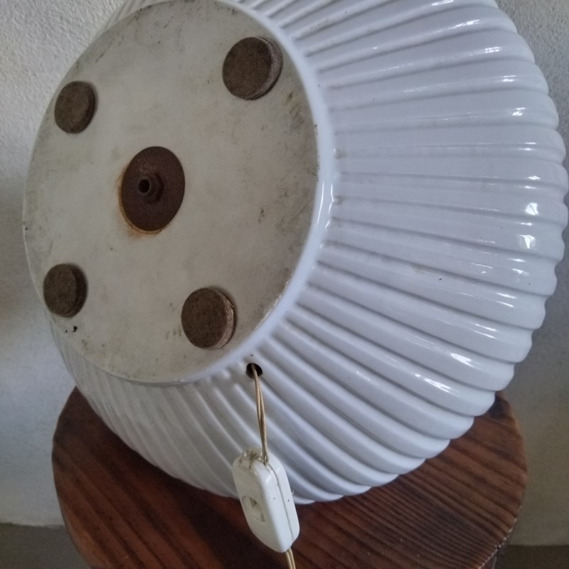 An Impressive ceramic table lamp, sourced in France and dating from circa 1970's. In very good vintage condition with no chips or cracking, the lamp has a wonderful ridged patterned relief surface and a gorgeous full shape, with brass fittings. Ready to use and sold without shade. Height to top of fitting 50cm Width 35cm
