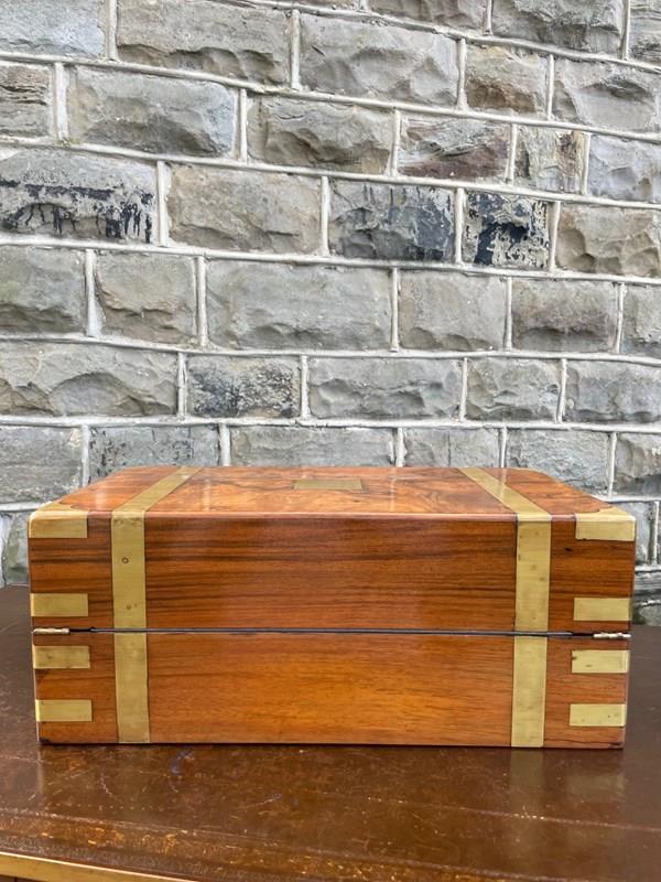 Antique Brass Bound Burr Walnut Writing Box Slope