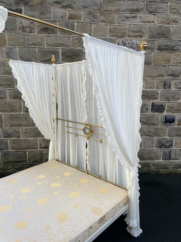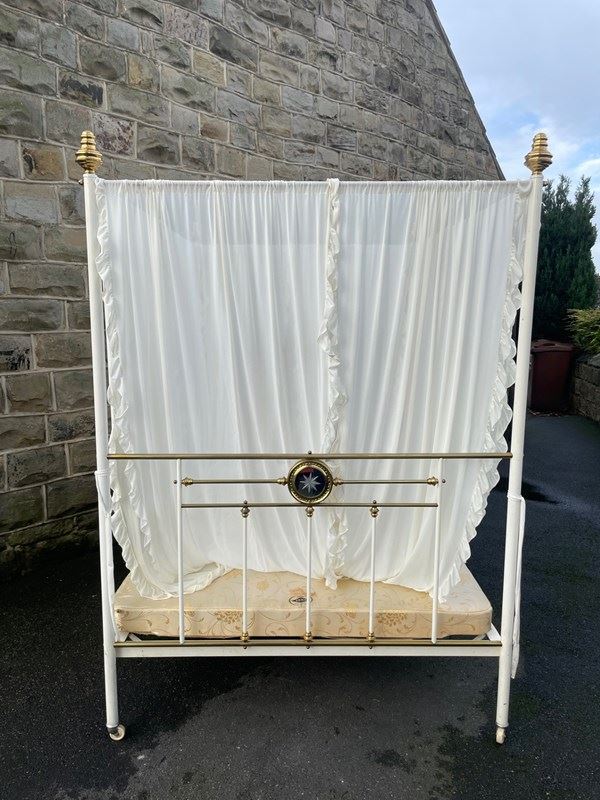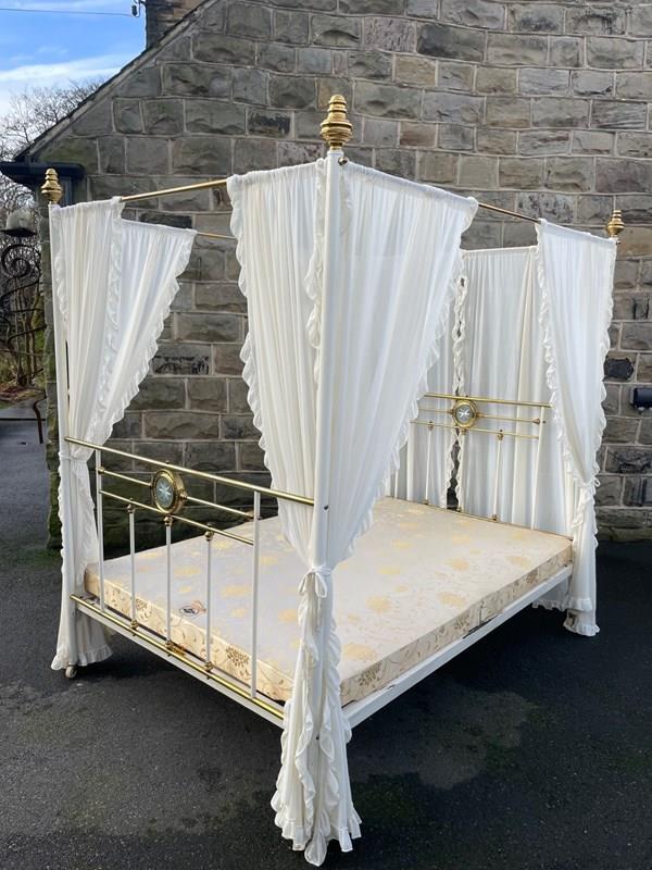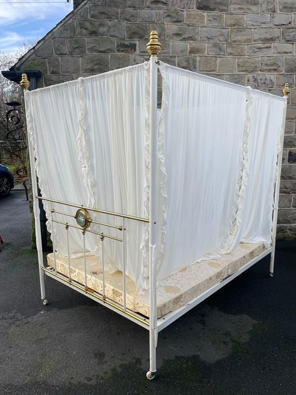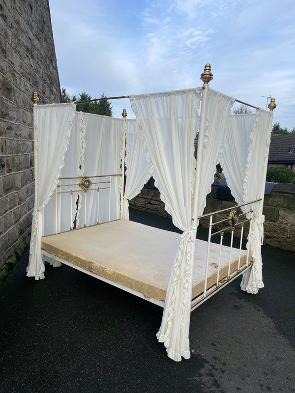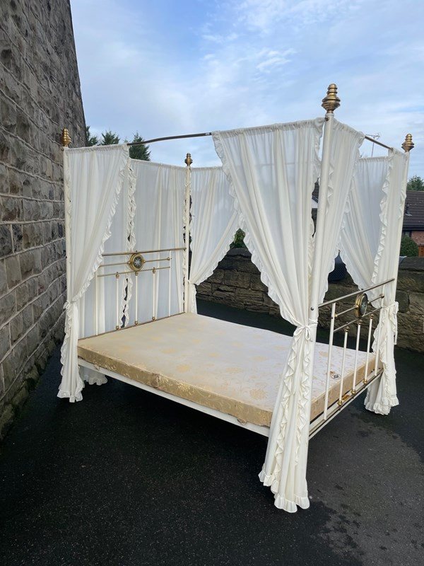Offered for sale is this impressive antique brass & iron 4 poster double bed.