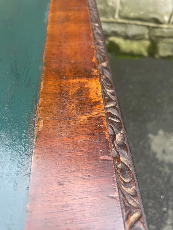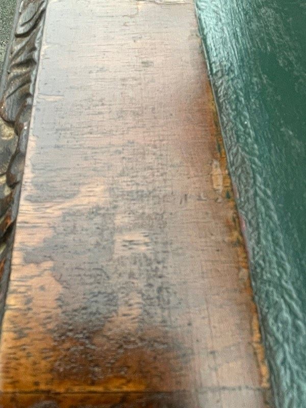 It is not damage to the veneer along the back edge of the top, its just the polish which has worn & crackled.