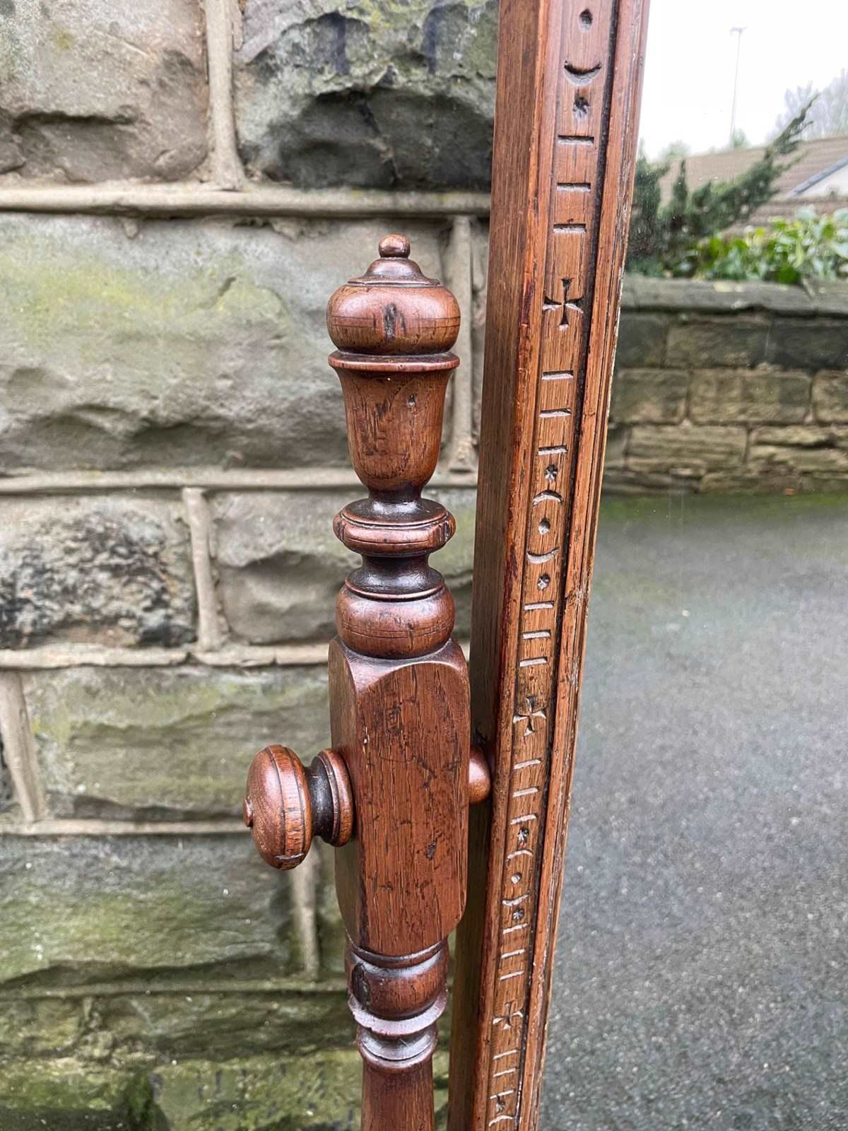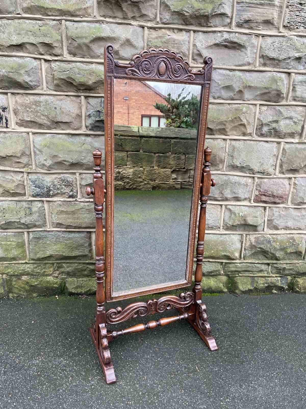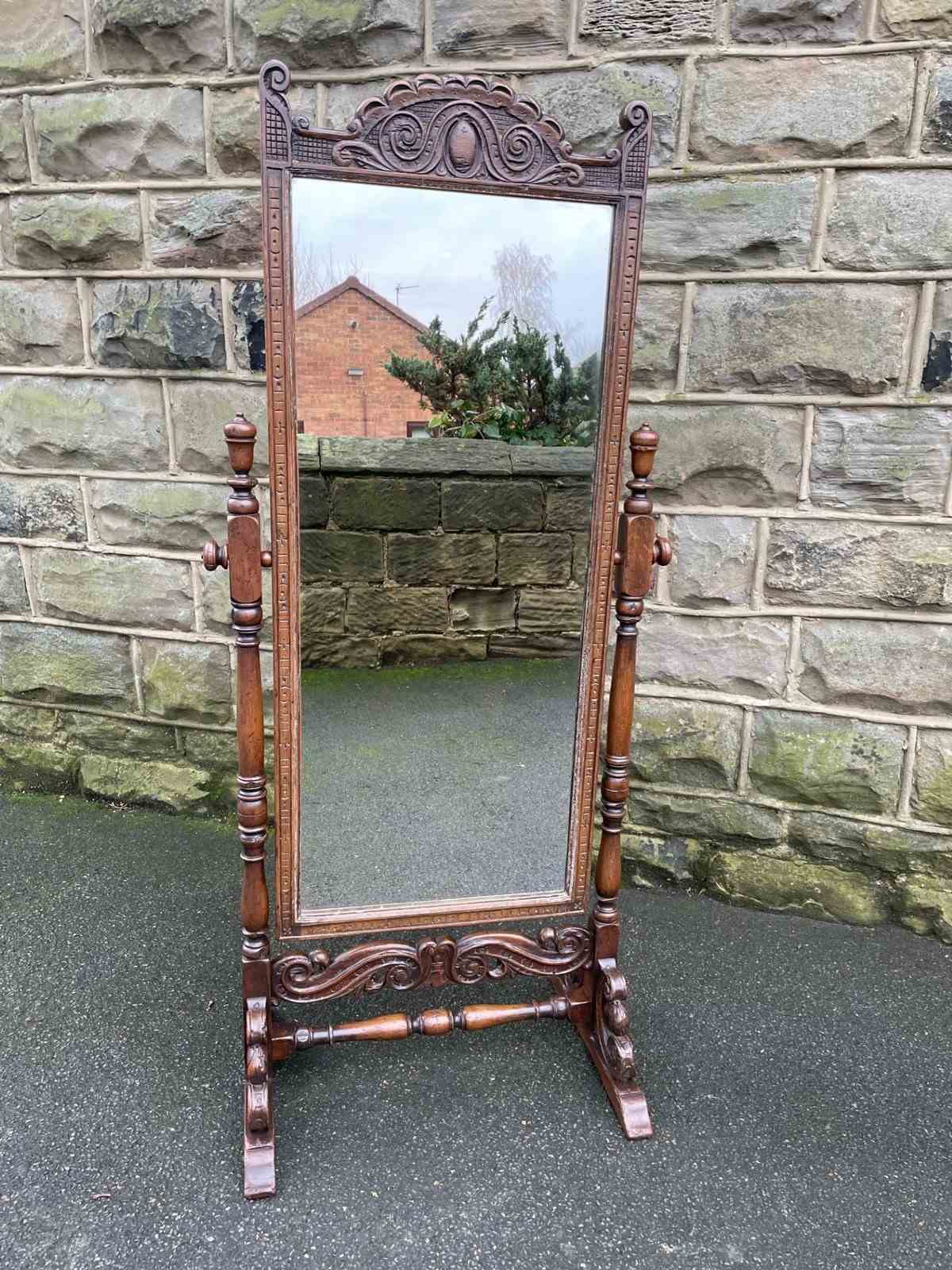 Antique Carved Oak Cheval Dressing Mirror