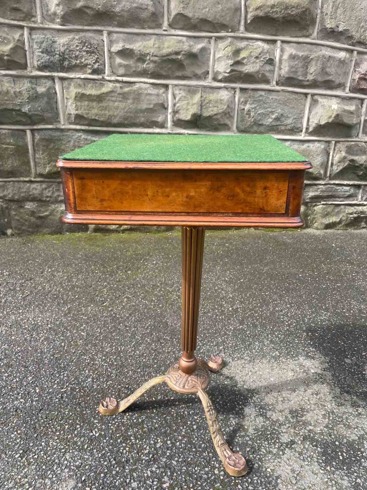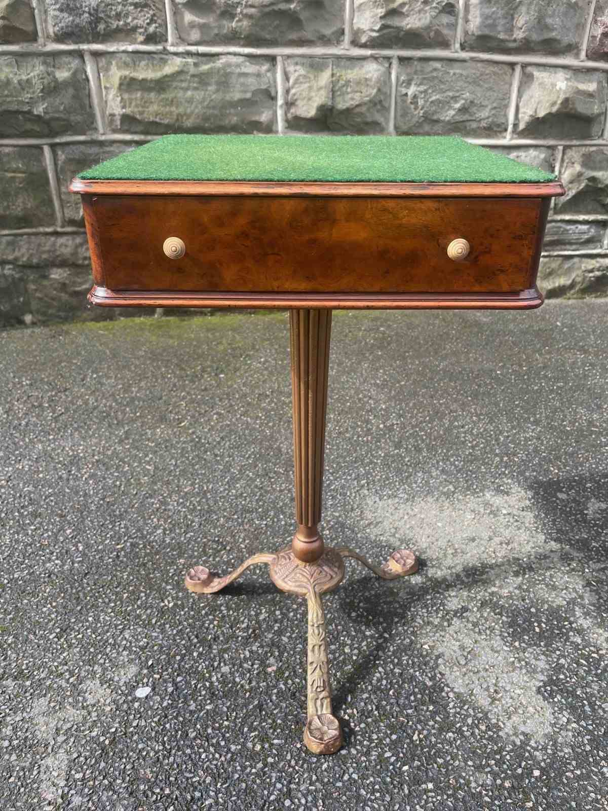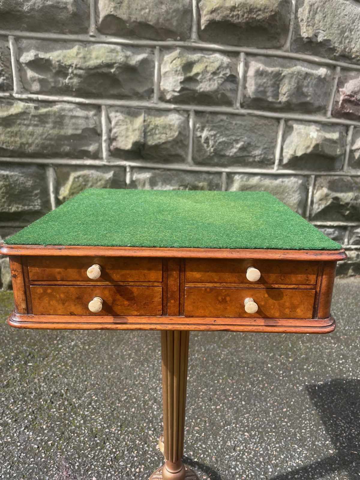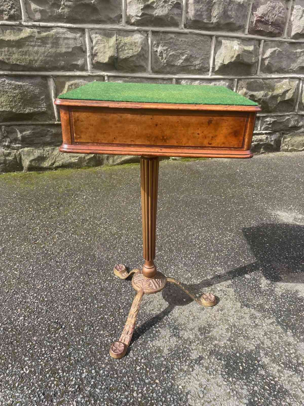 Standing on its gold painted cast stand. The green baize top is probably a later addition.