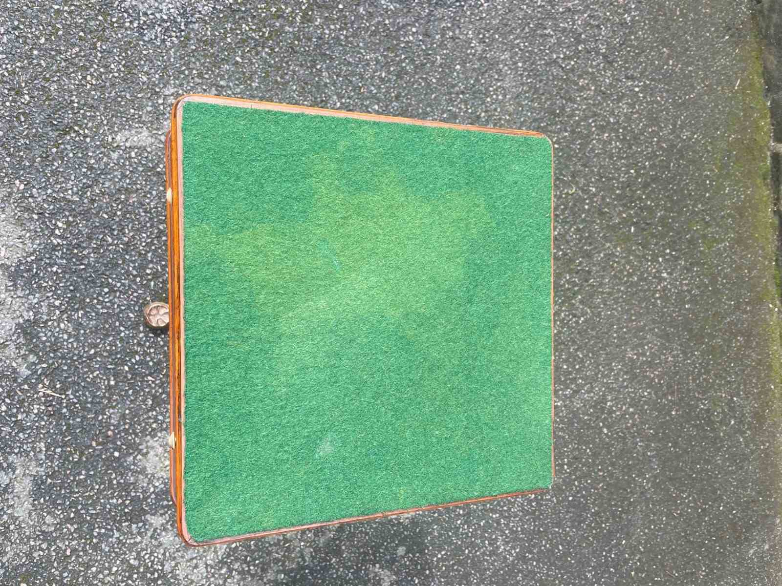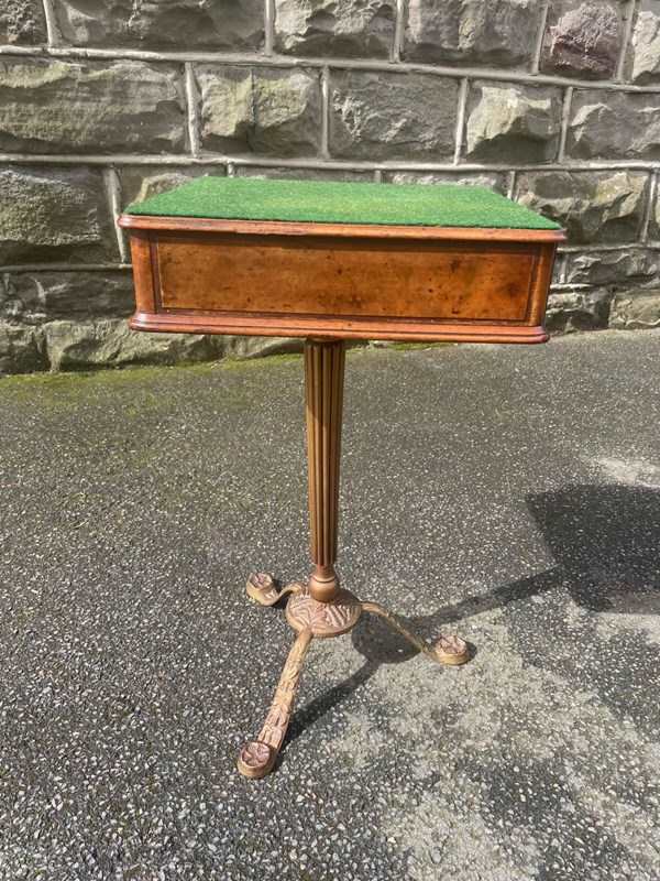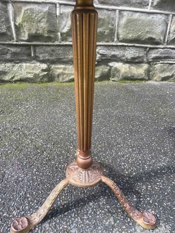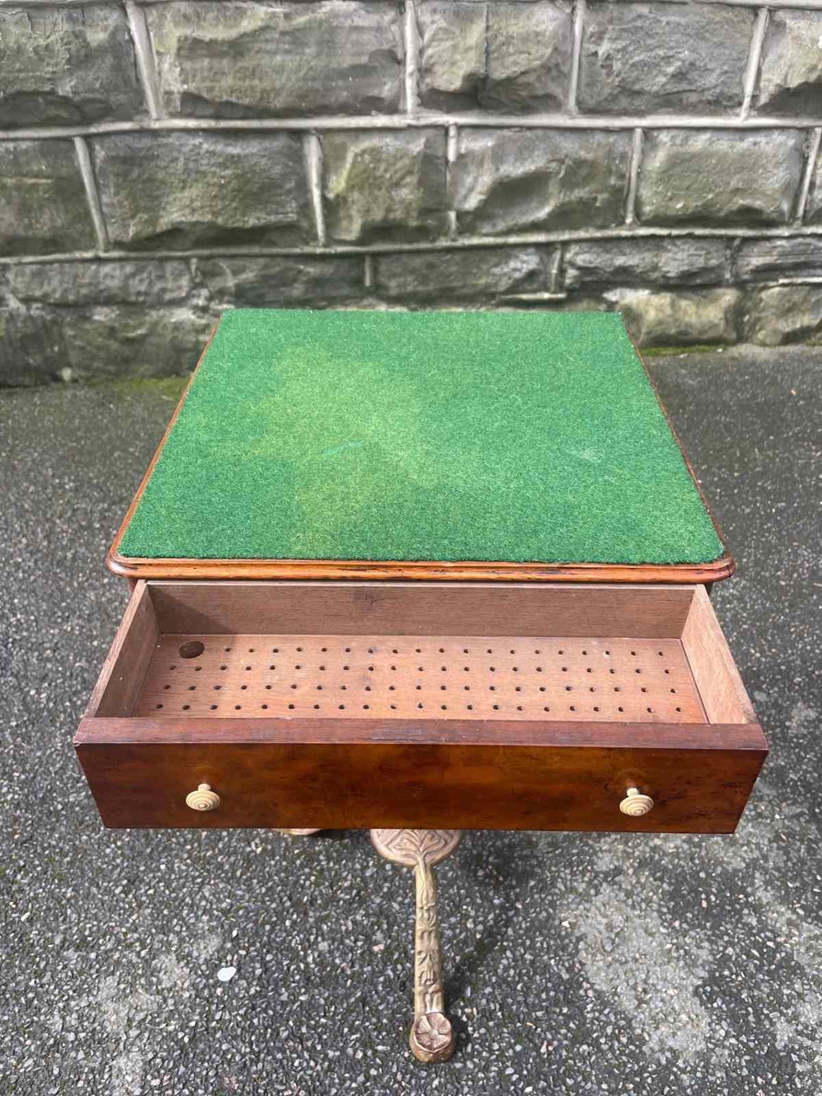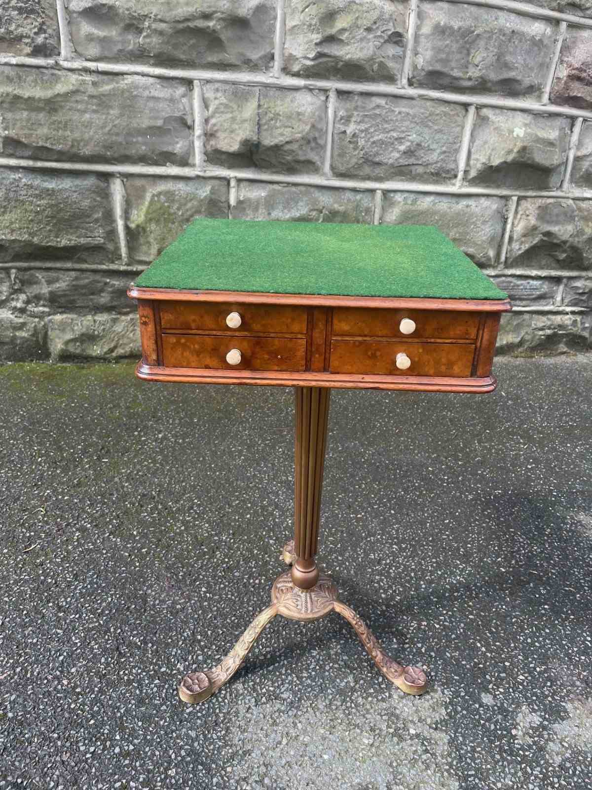 Standing on its gold painted cast stand. The green baize top is probably a later addition.