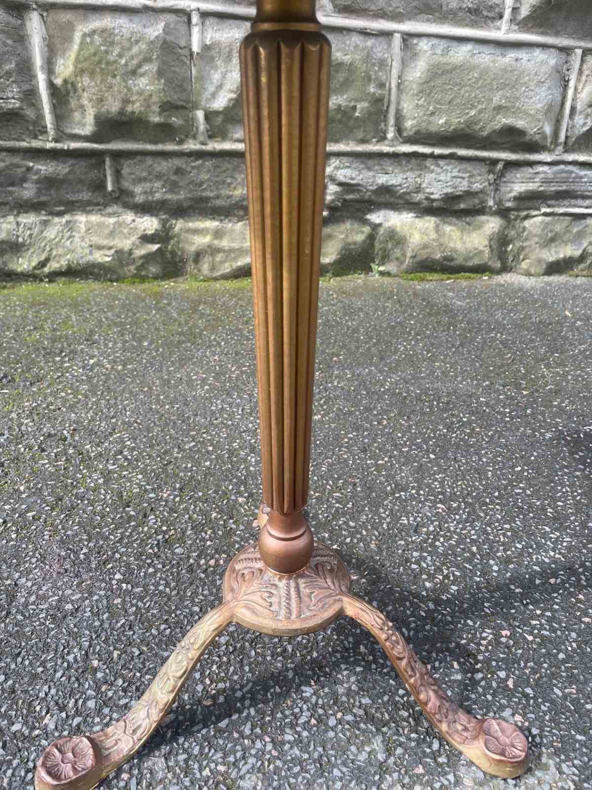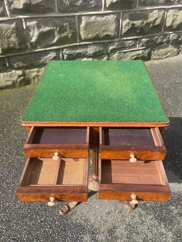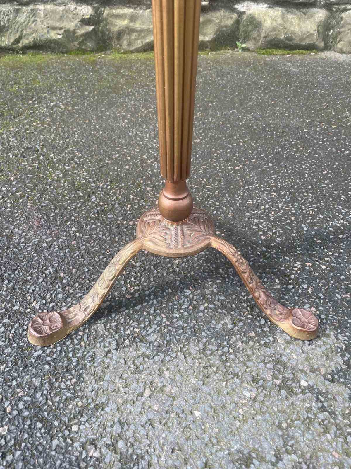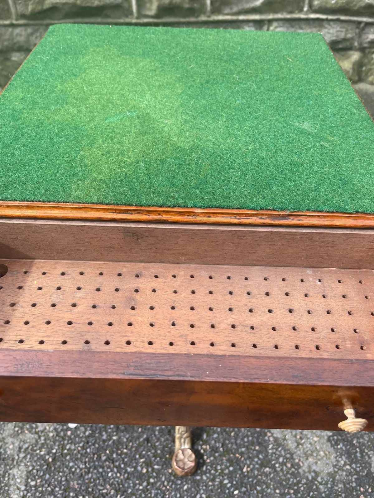 Standing on its gold painted cast stand. The green baize top is probably a later addition.