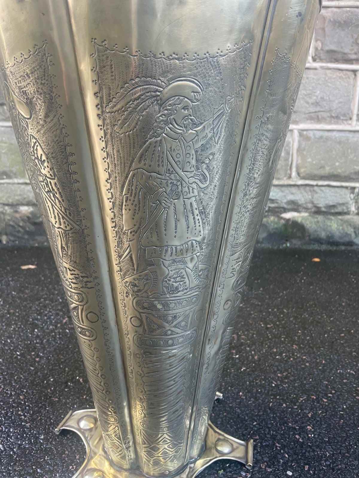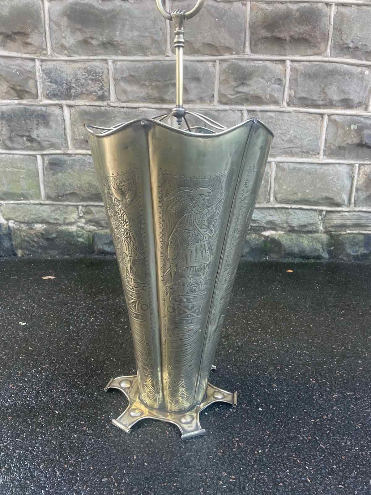 Antique Embossed Brass Umbrella Stick Stand