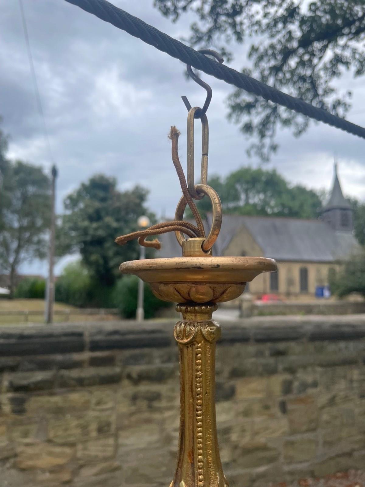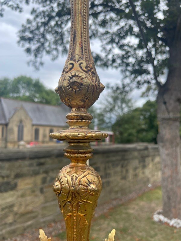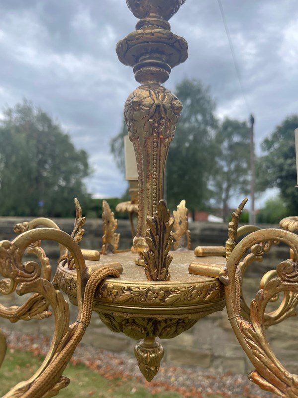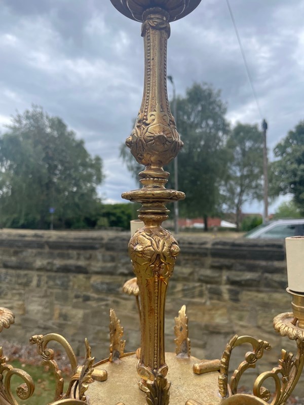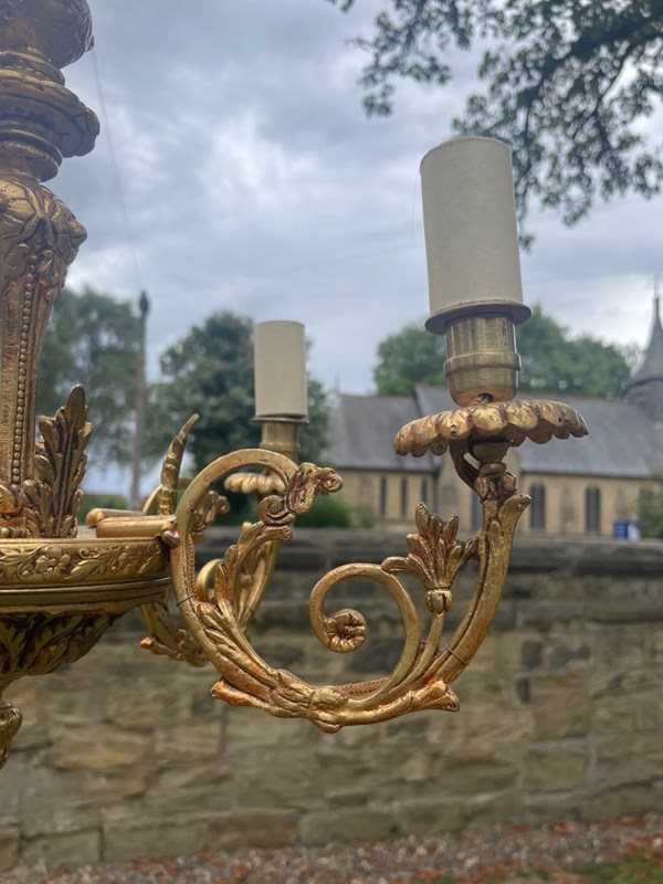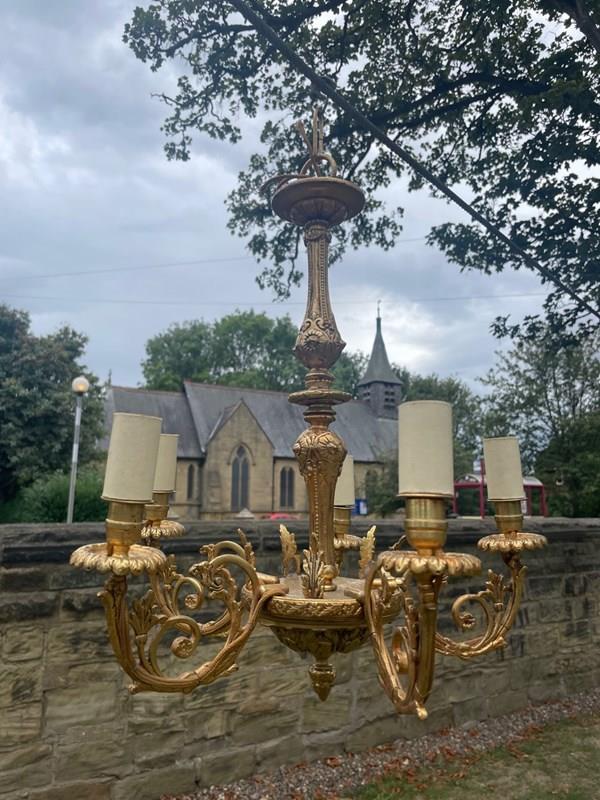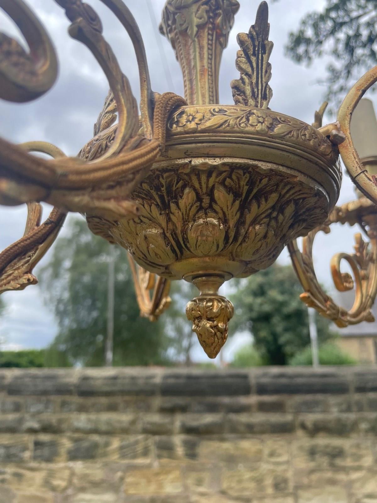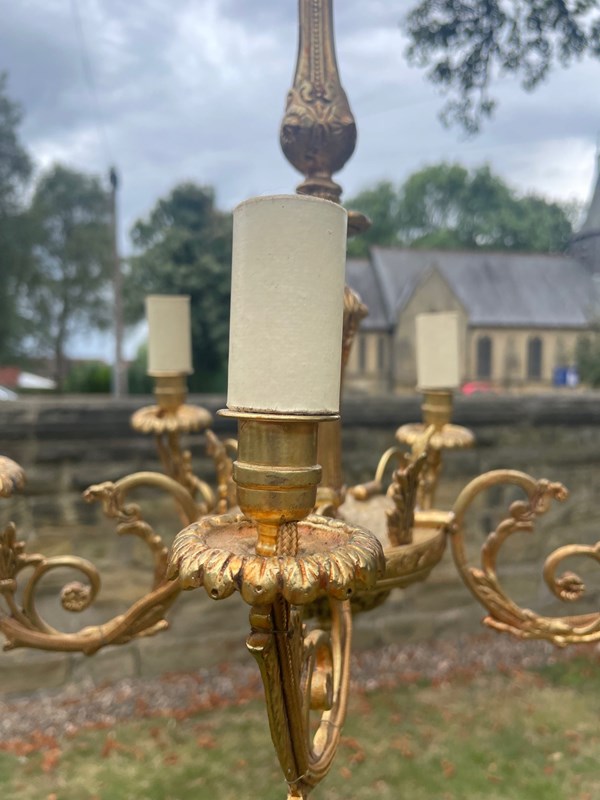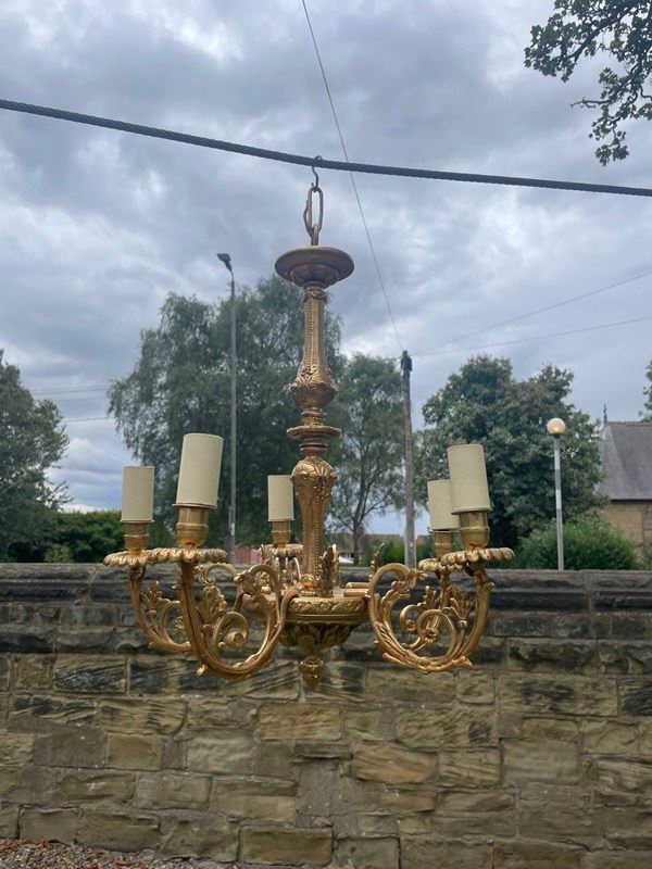 In ormolu having 5 scrolling branches with take an english bayonet bulb fitting. Fully wired.