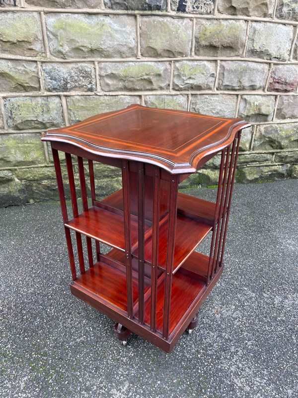 Antique Inlaid Mahogany Revolving Library Bookcase