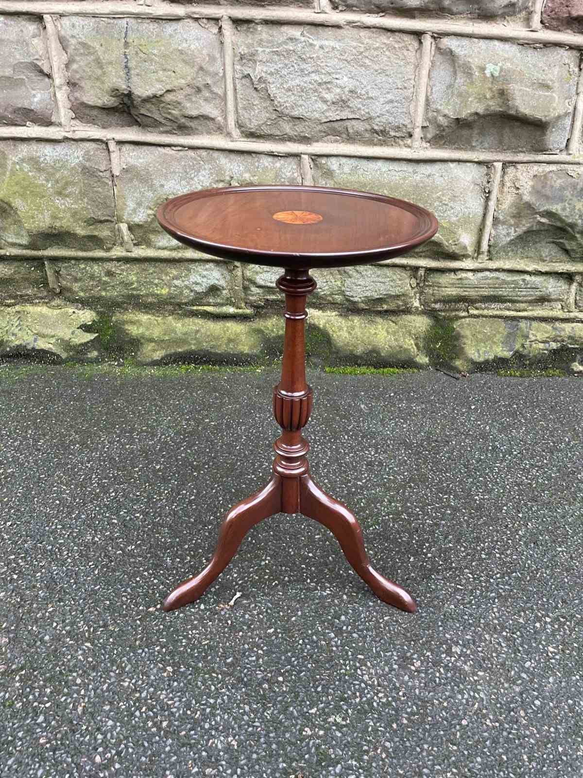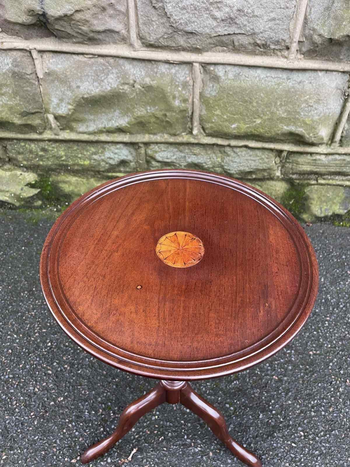 Antique Inlaid Mahogany Tripod Wine Table Coffee Table