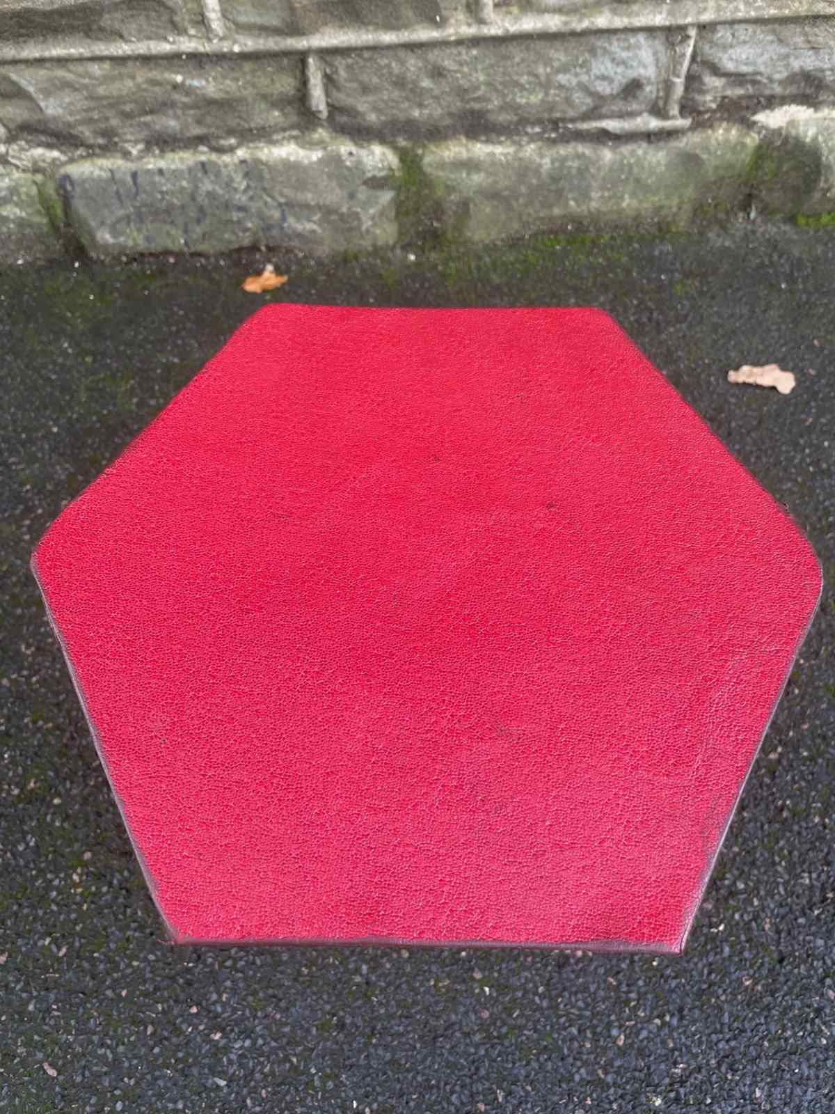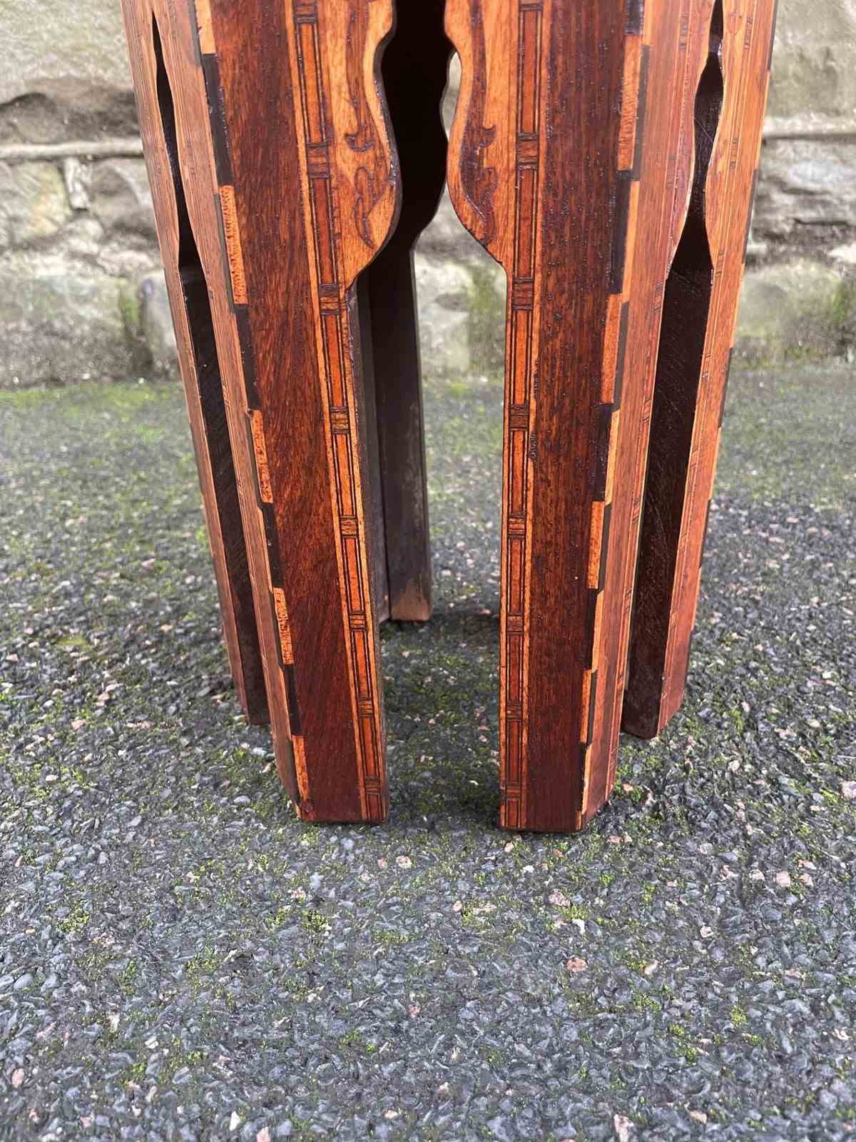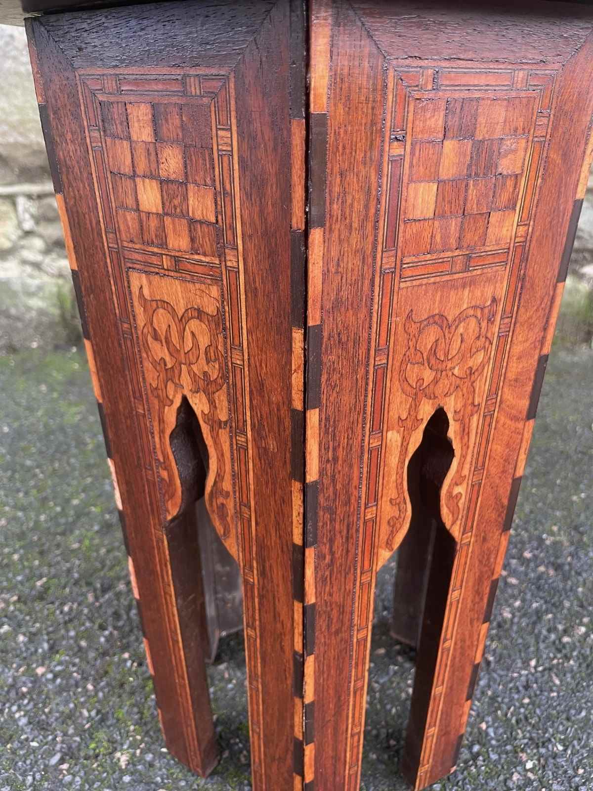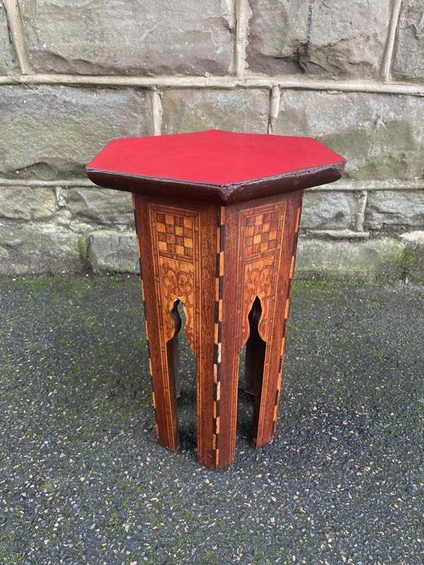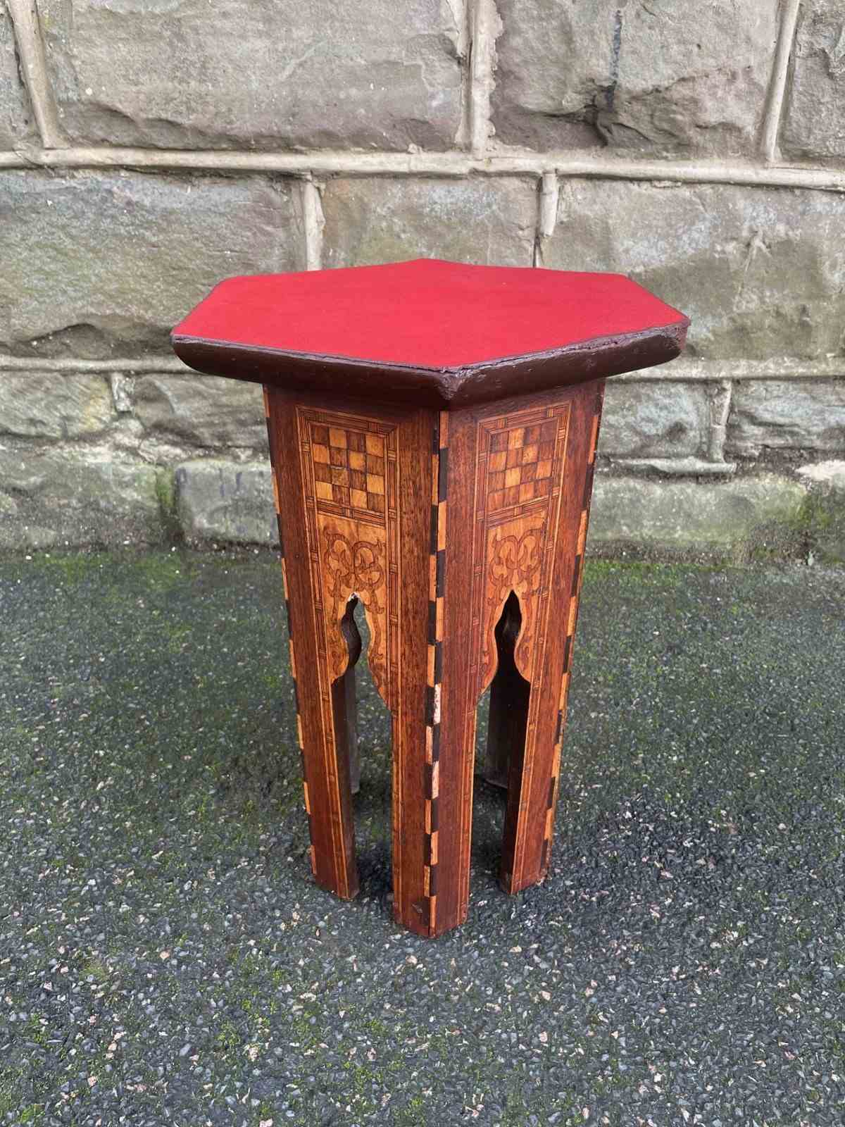Inlaid Islamic/Moorish decoration with inlaid satinwood decoration. It has a later red leather later added top