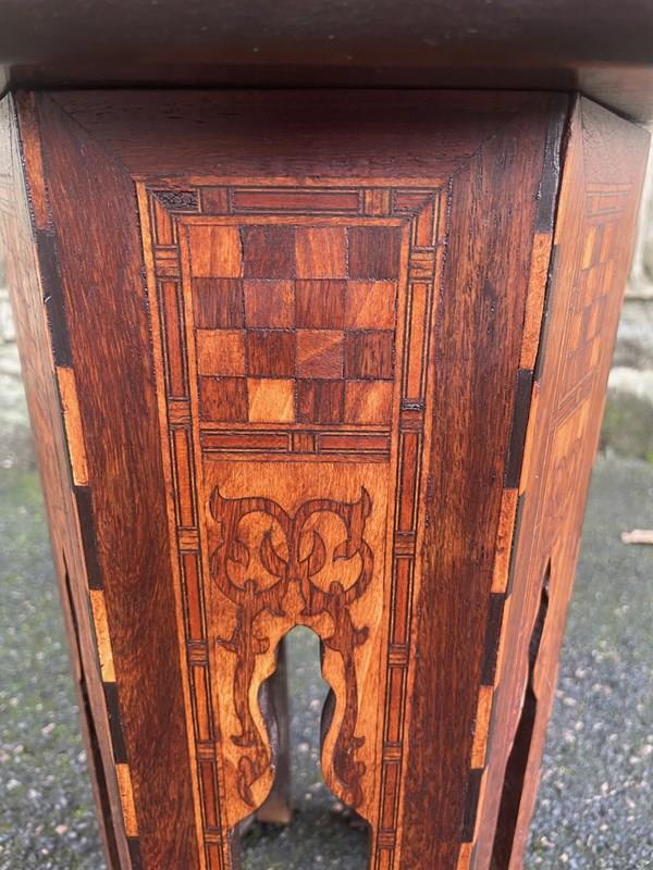 Offered for sale is this antique inlaid Moorish table. Lovely useful size. Possibly by Liberty