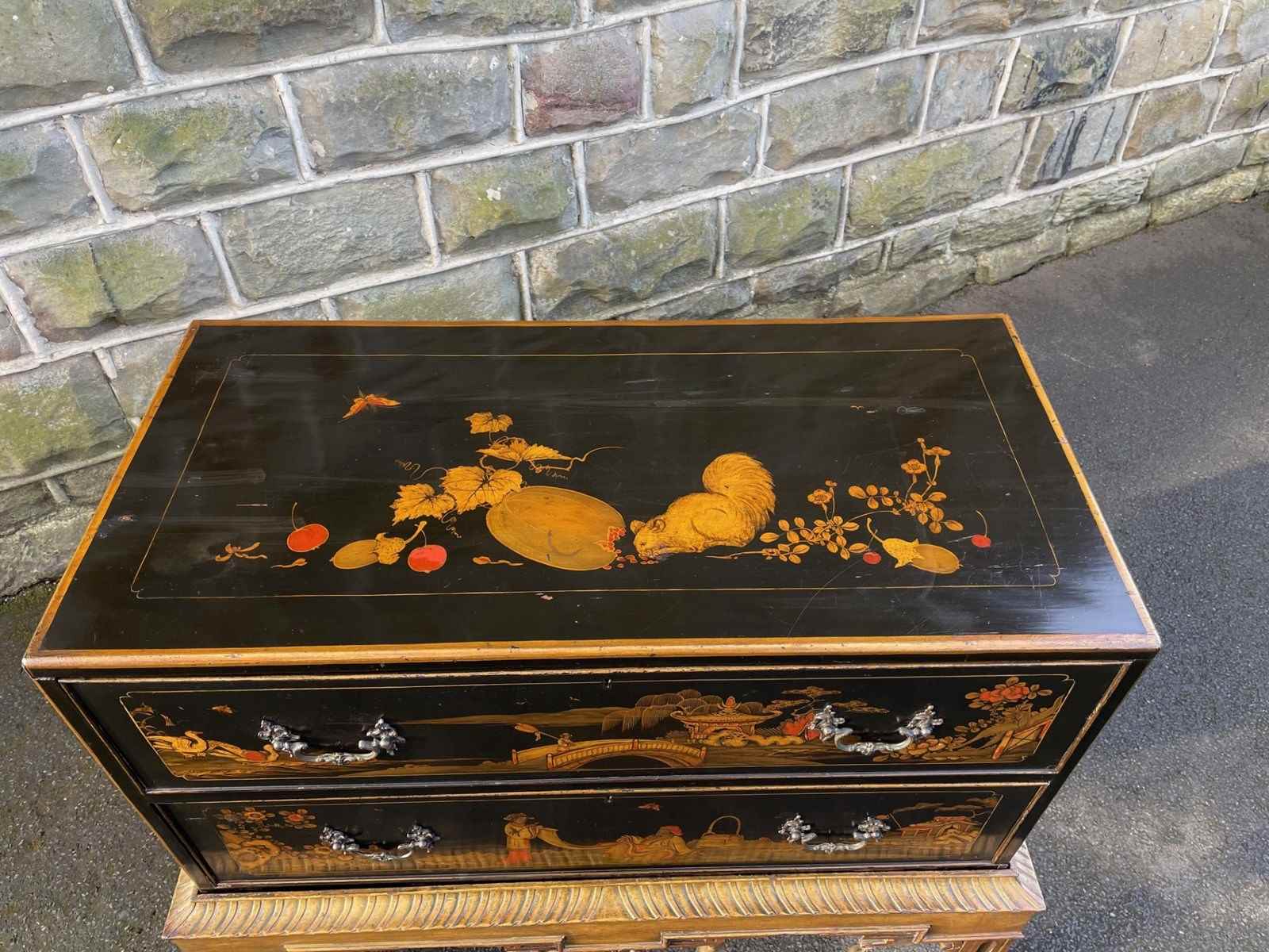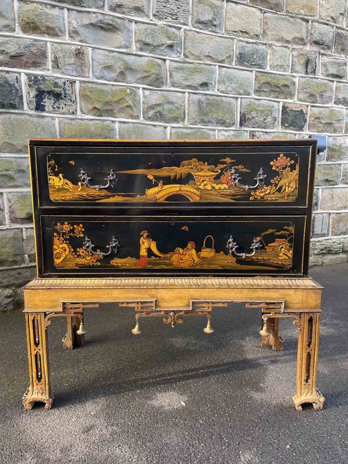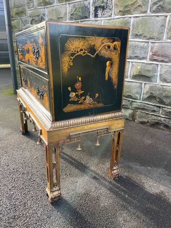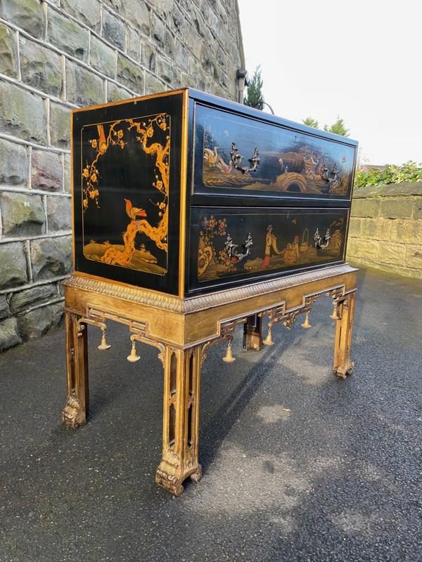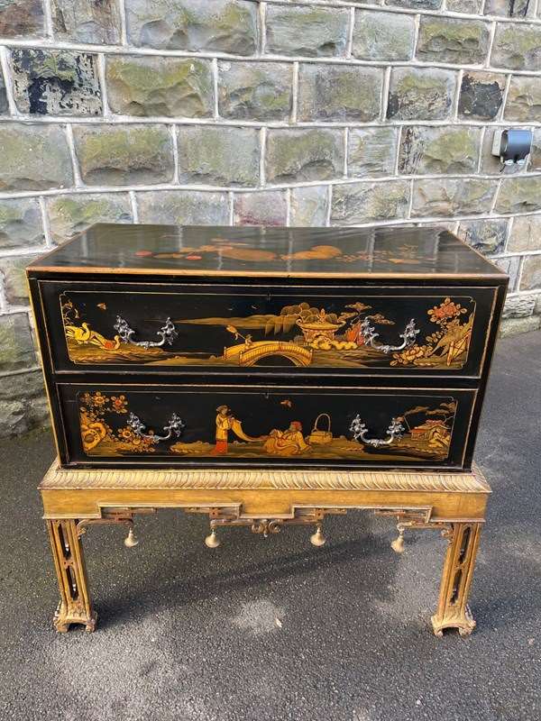 Antique Lacquered Chinoiserie Chest On Stand