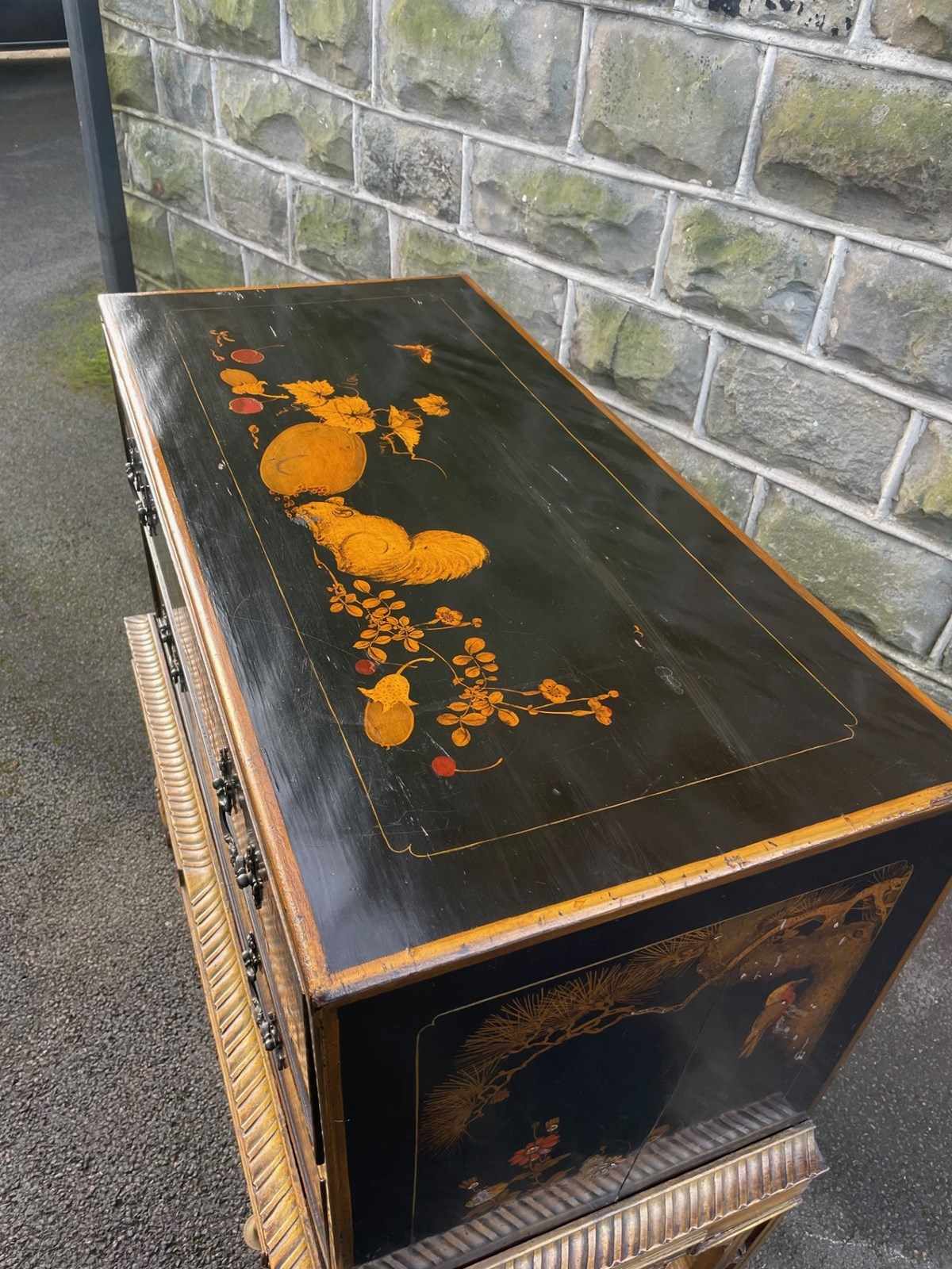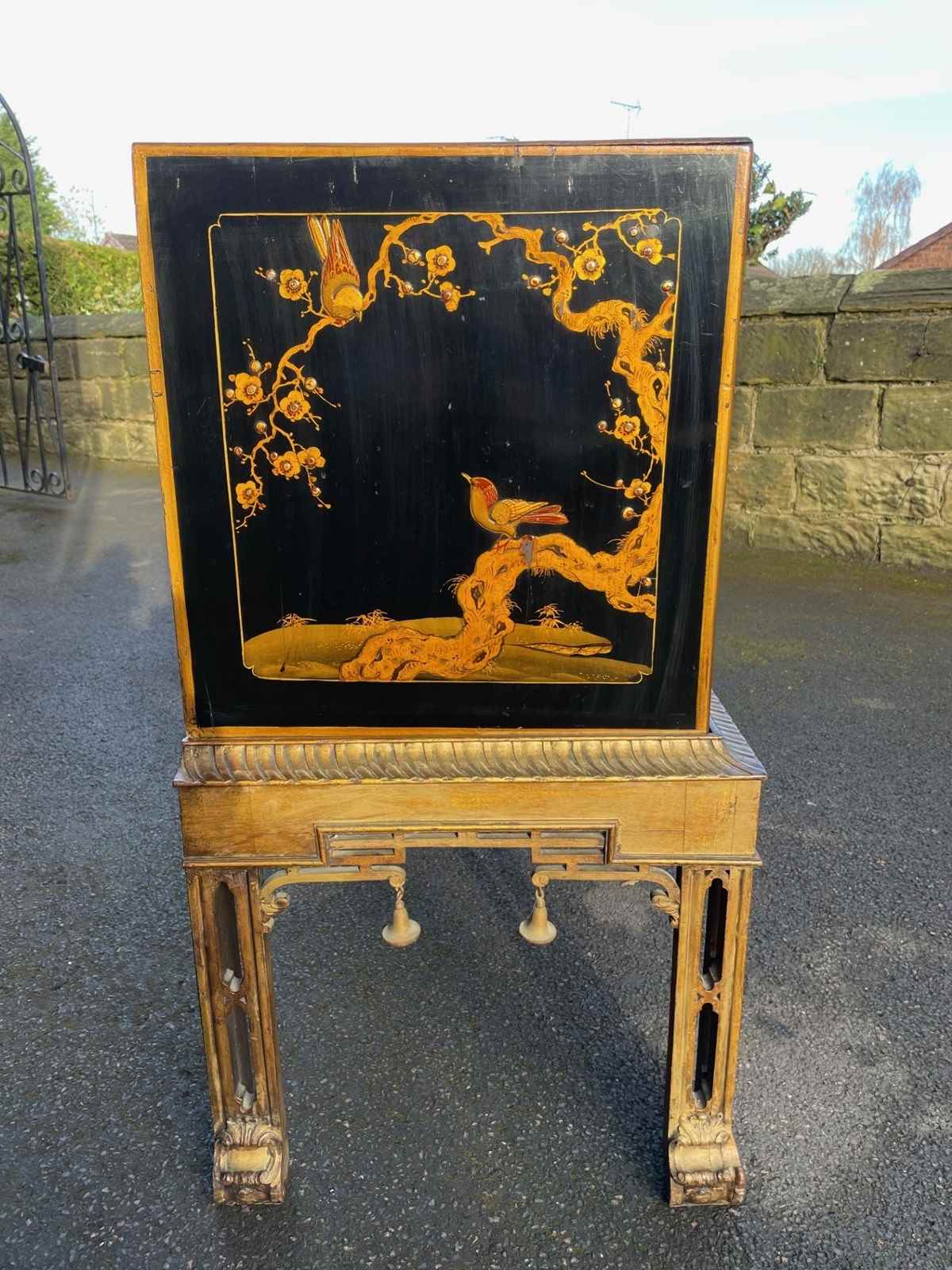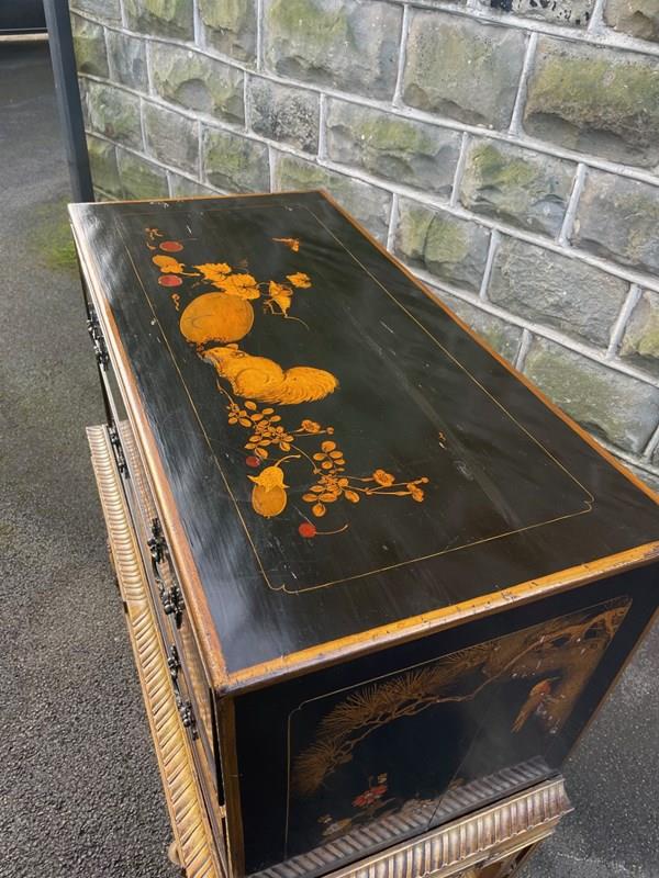 Antique Lacquered Chinoiserie Chest On Stand