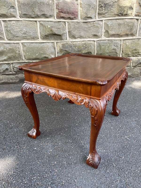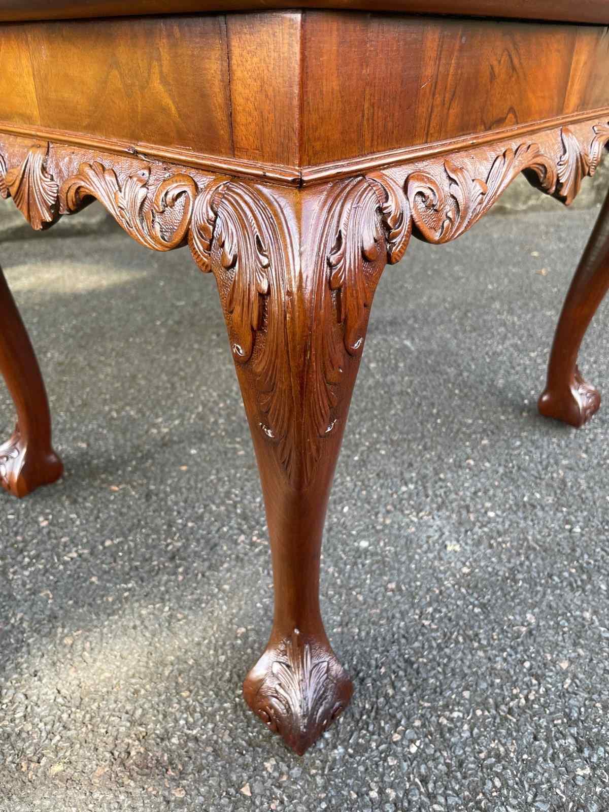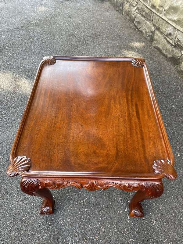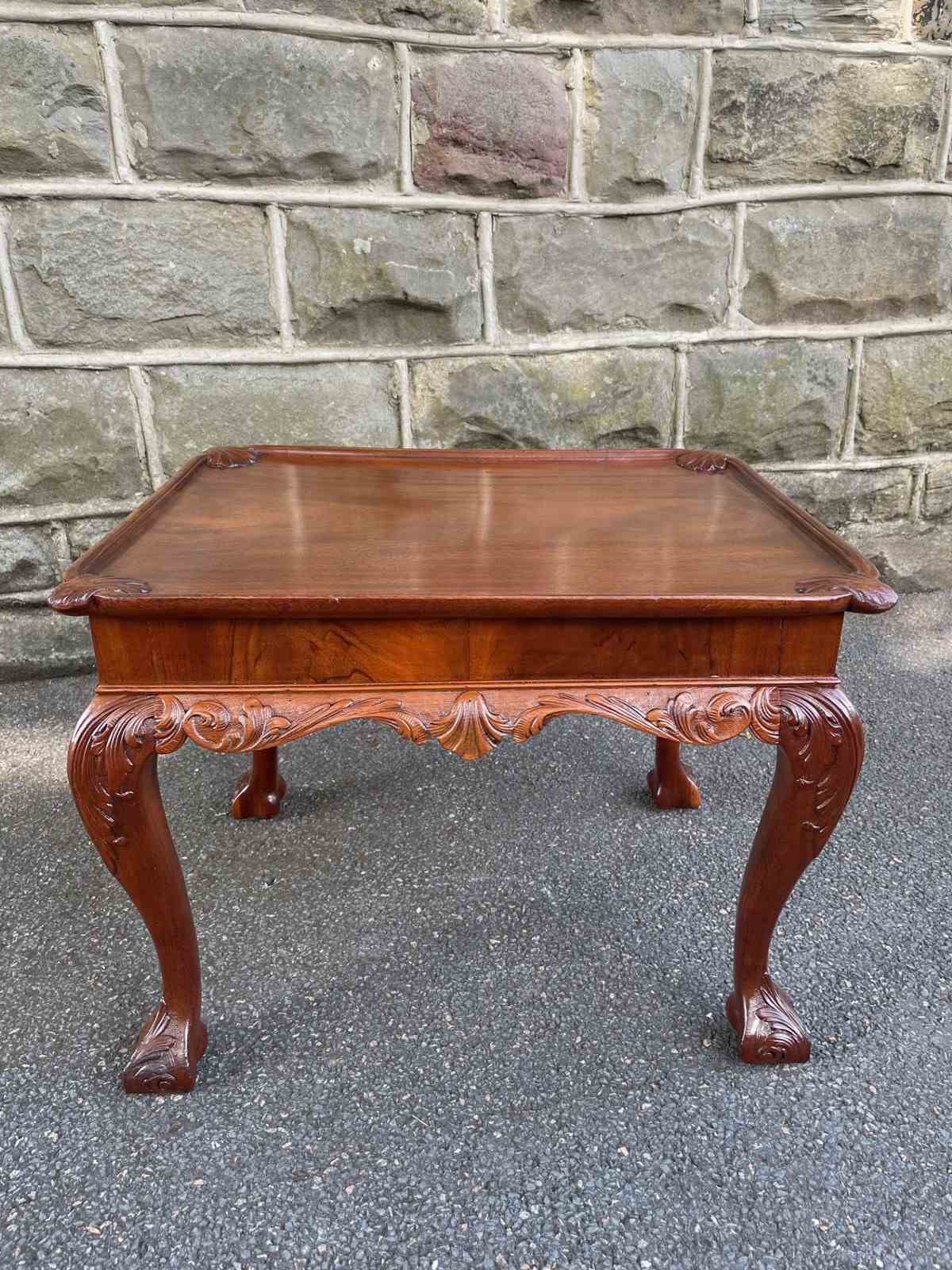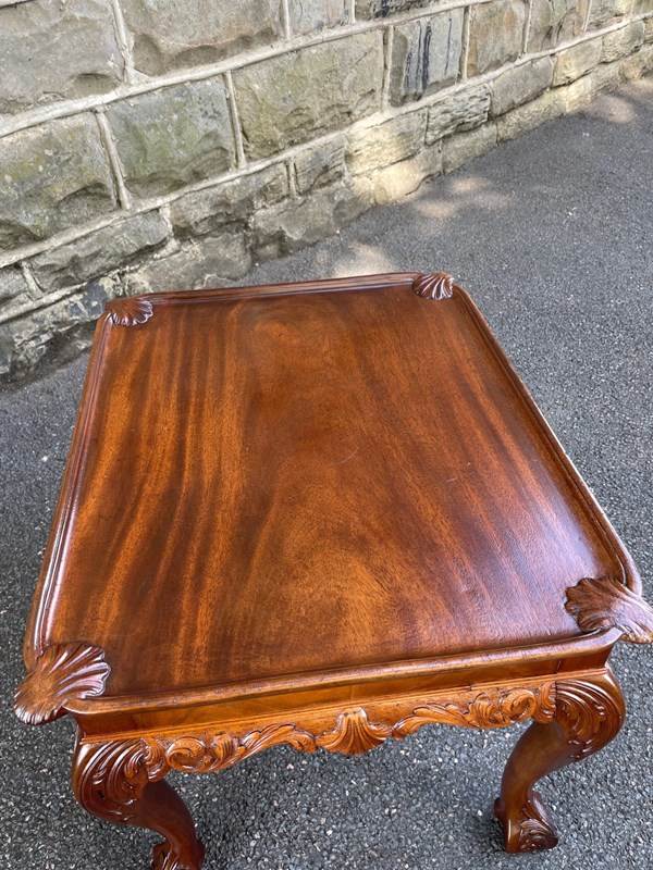 Nice size & proportions. Solid mahogany, the top having a carved shells to each corner. Standing on well carved cabriole legs with a ball & claw foot. Similar carving all the way around the frieze of the table