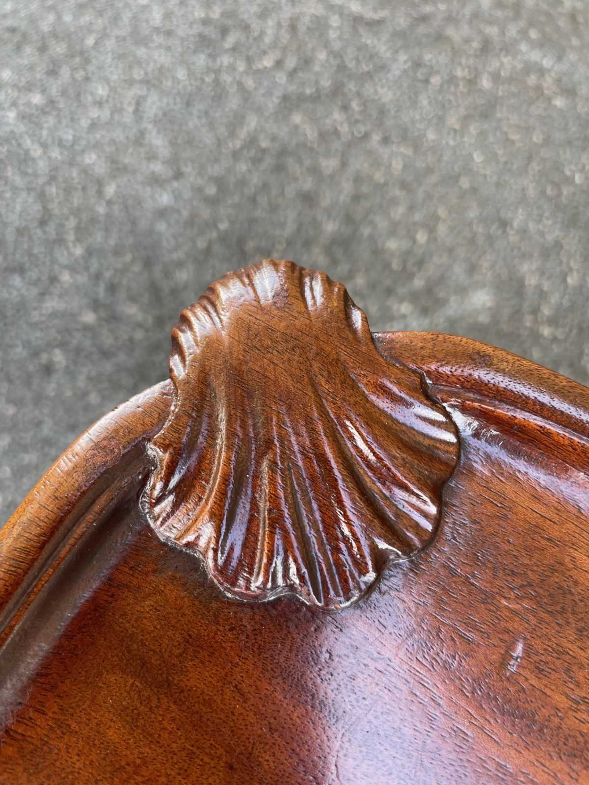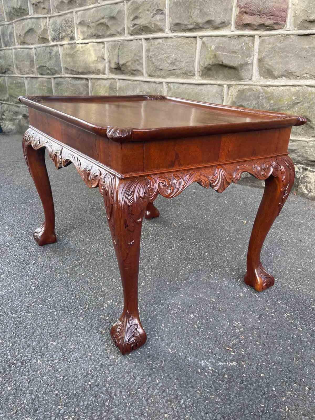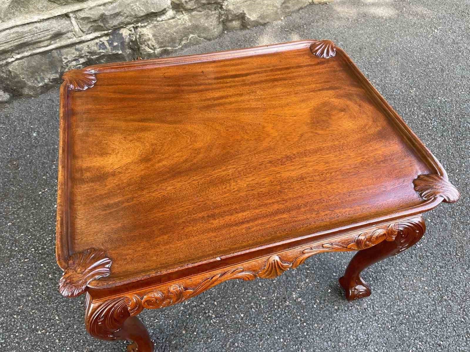Nice size & proportions. Solid mahogany, the top having a carved shells to each corner. Standing on well carved cabriole legs with a ball & claw foot. Similar carving all the way around the frieze of the table