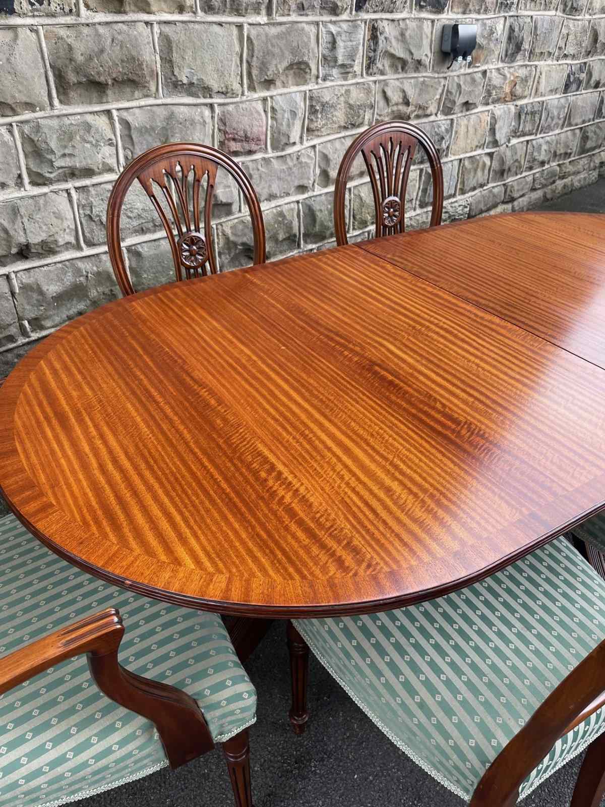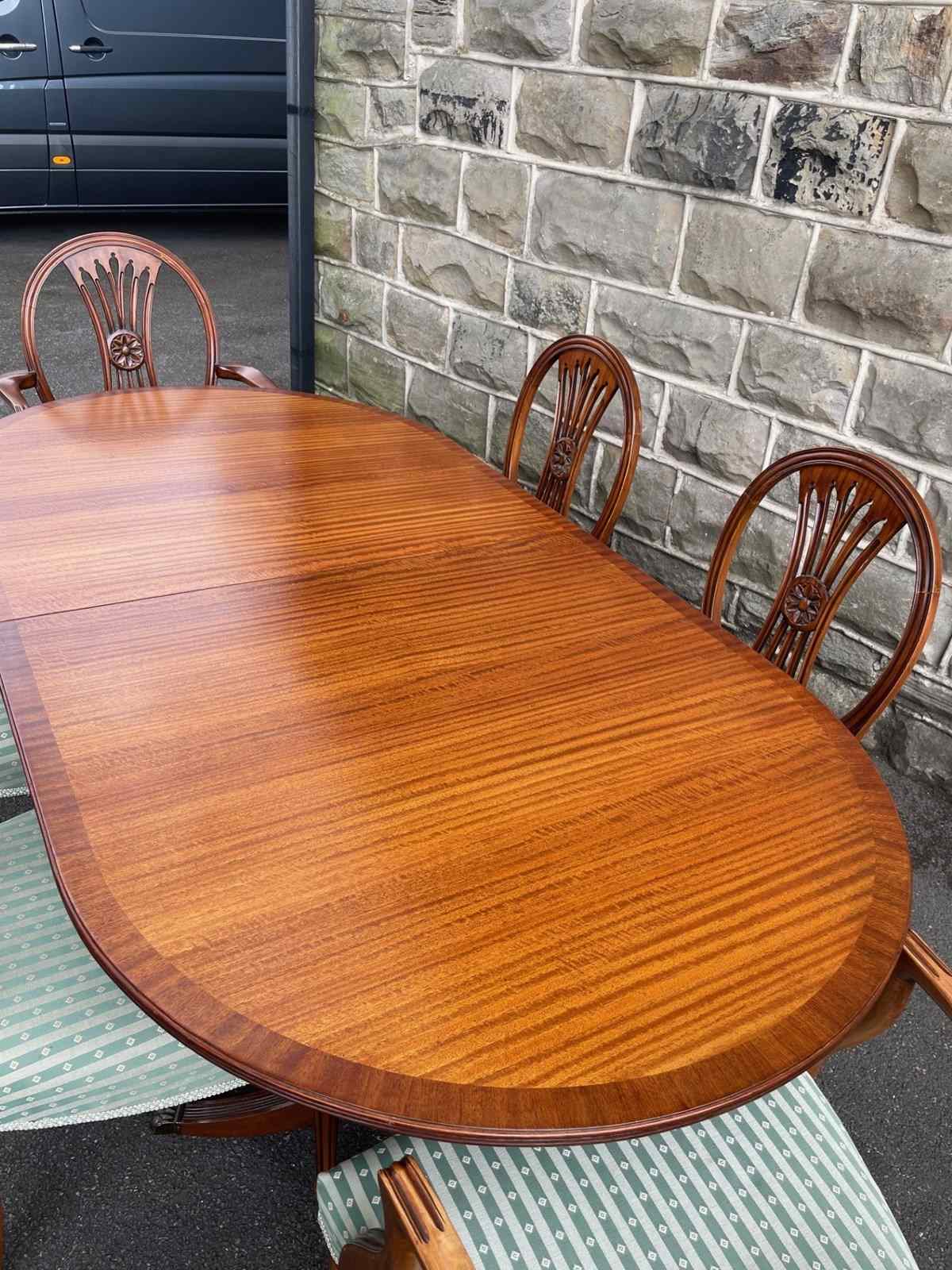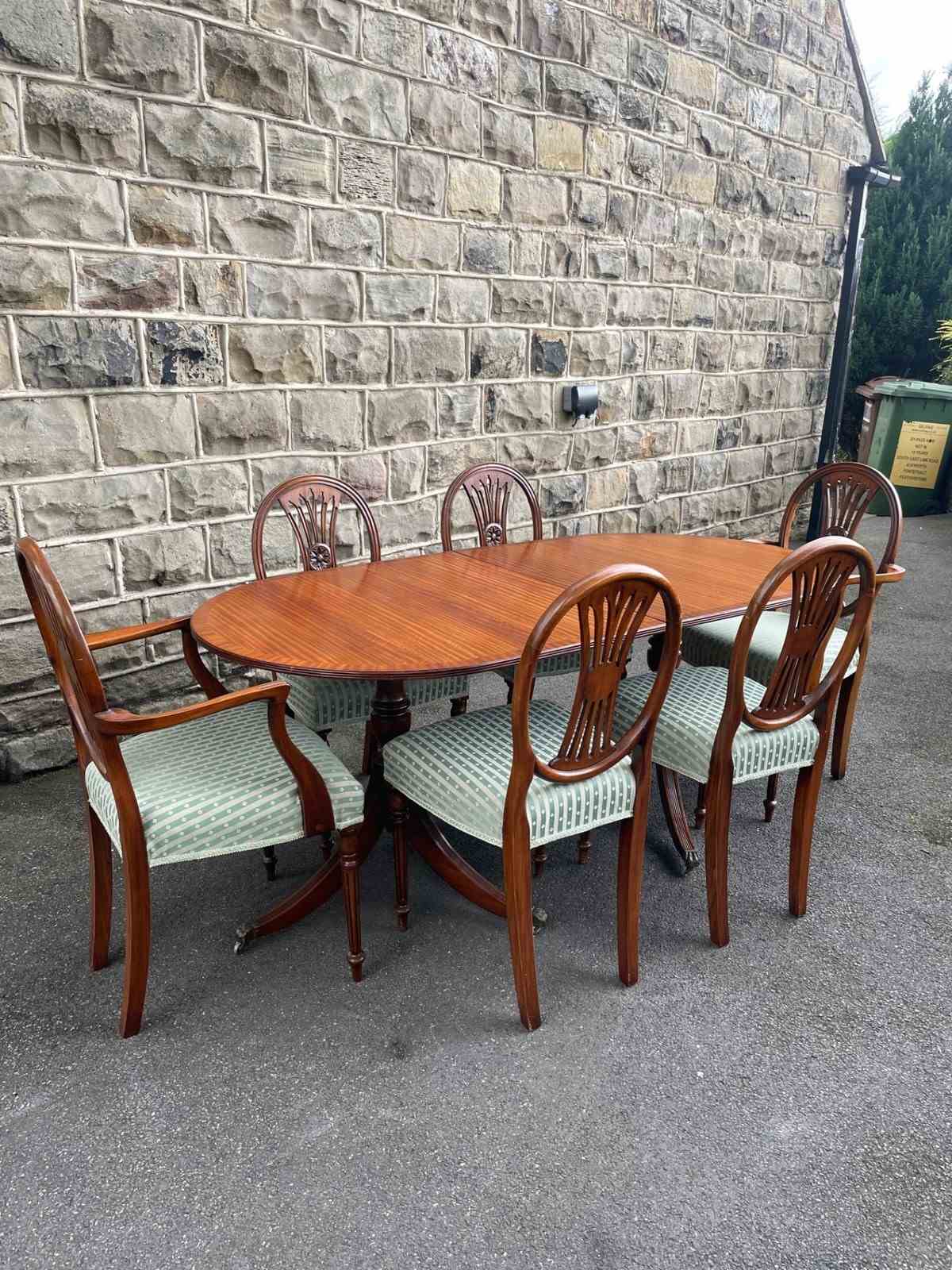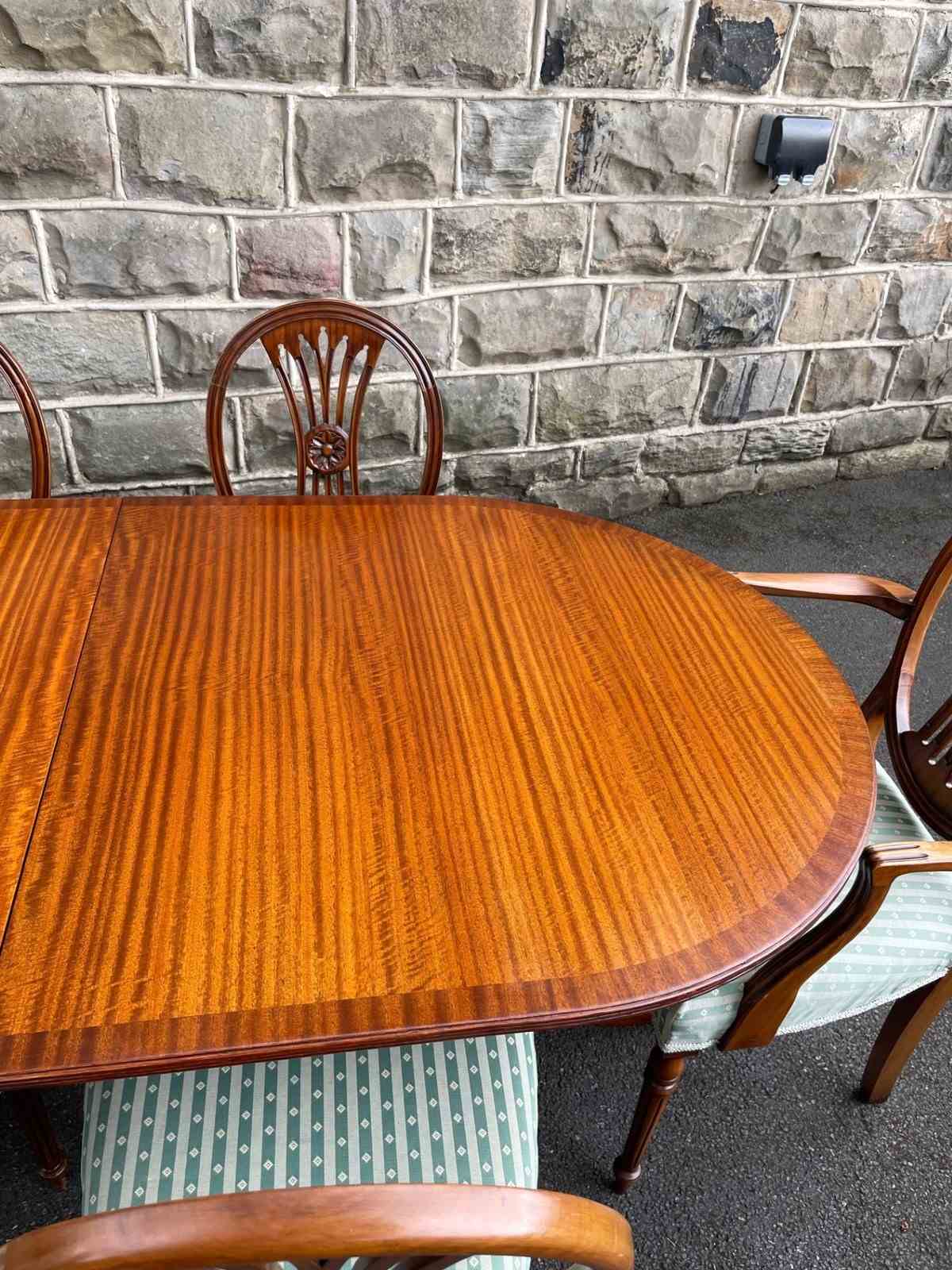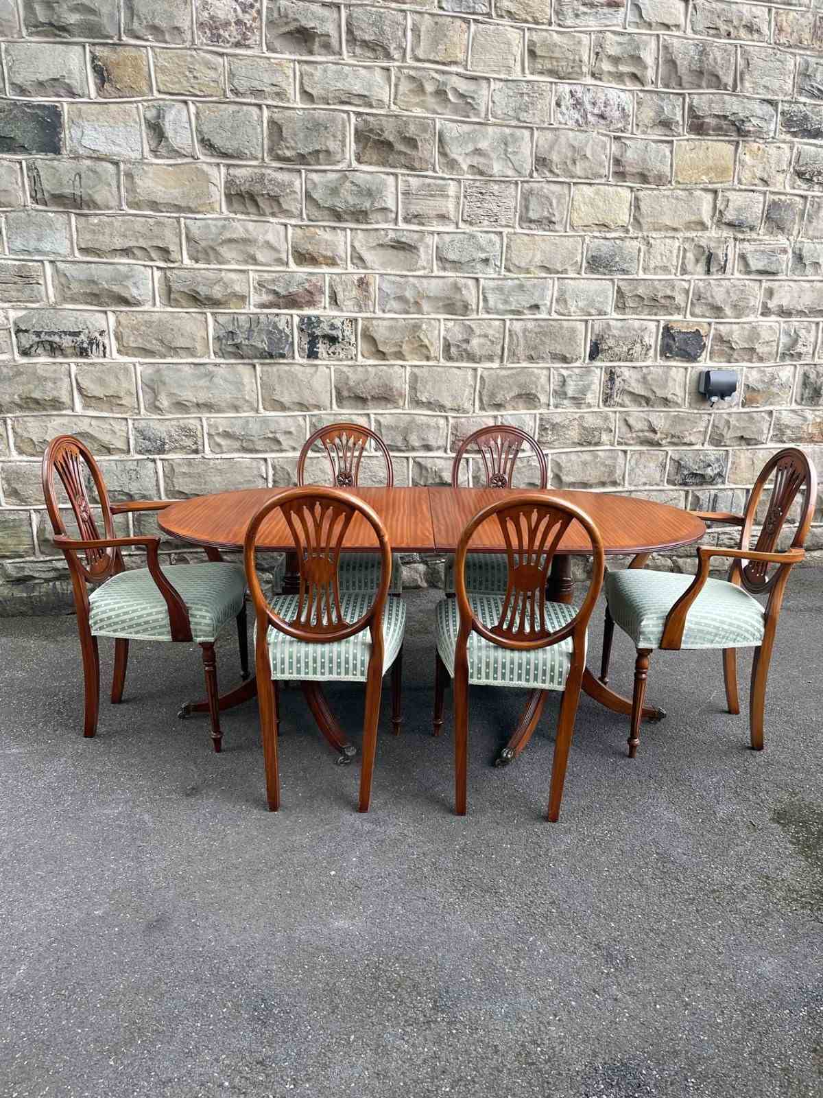 Offered for sale is this antique mahogany dining table & 6 chairs