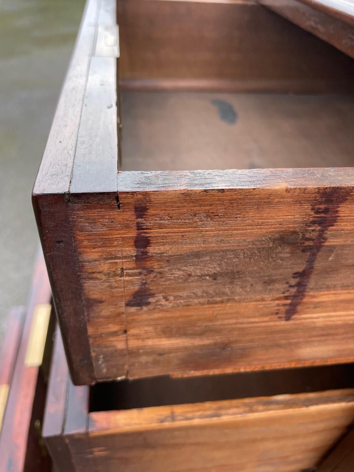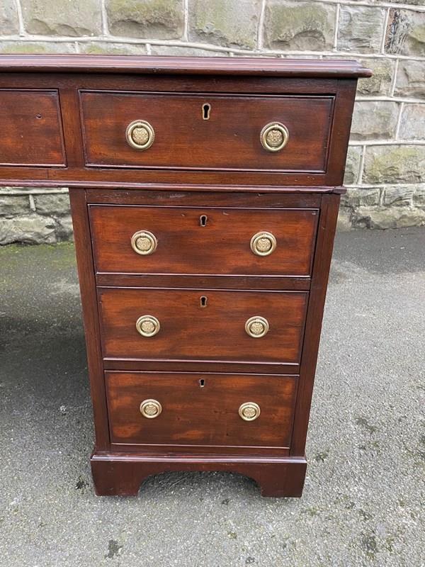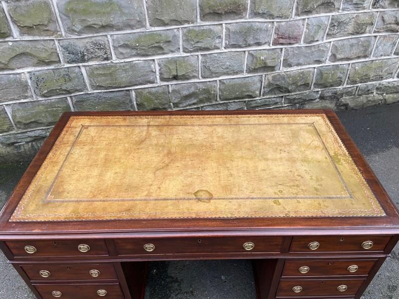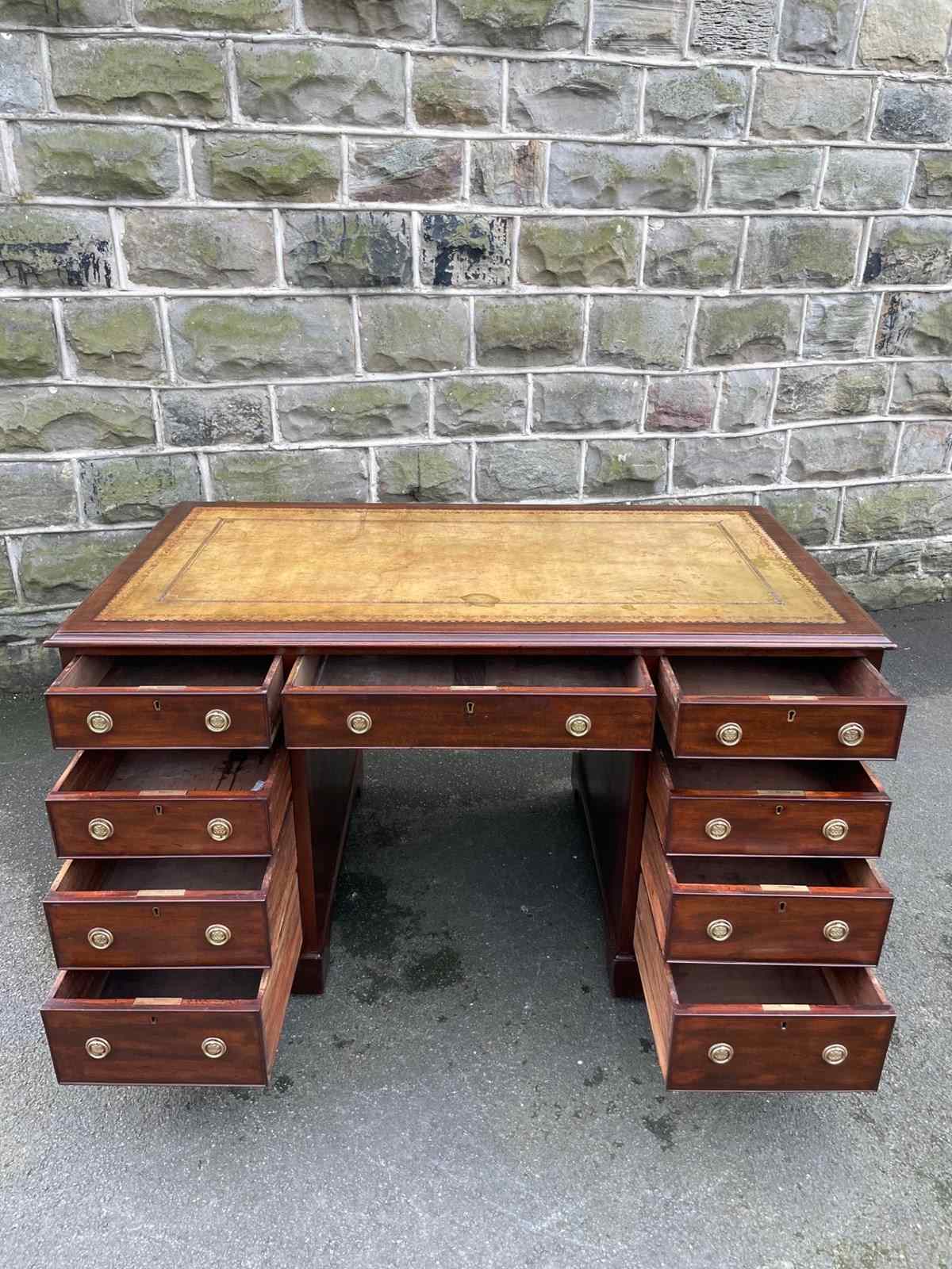 Offered in good clean original condition. Great colour and shine to the mahogany. The leather top has genuine signs of use but no holes or rips.