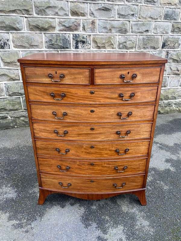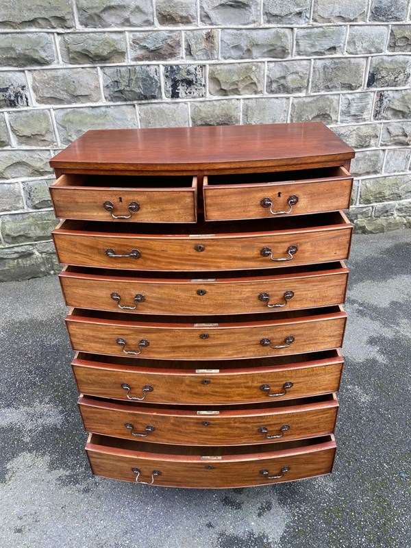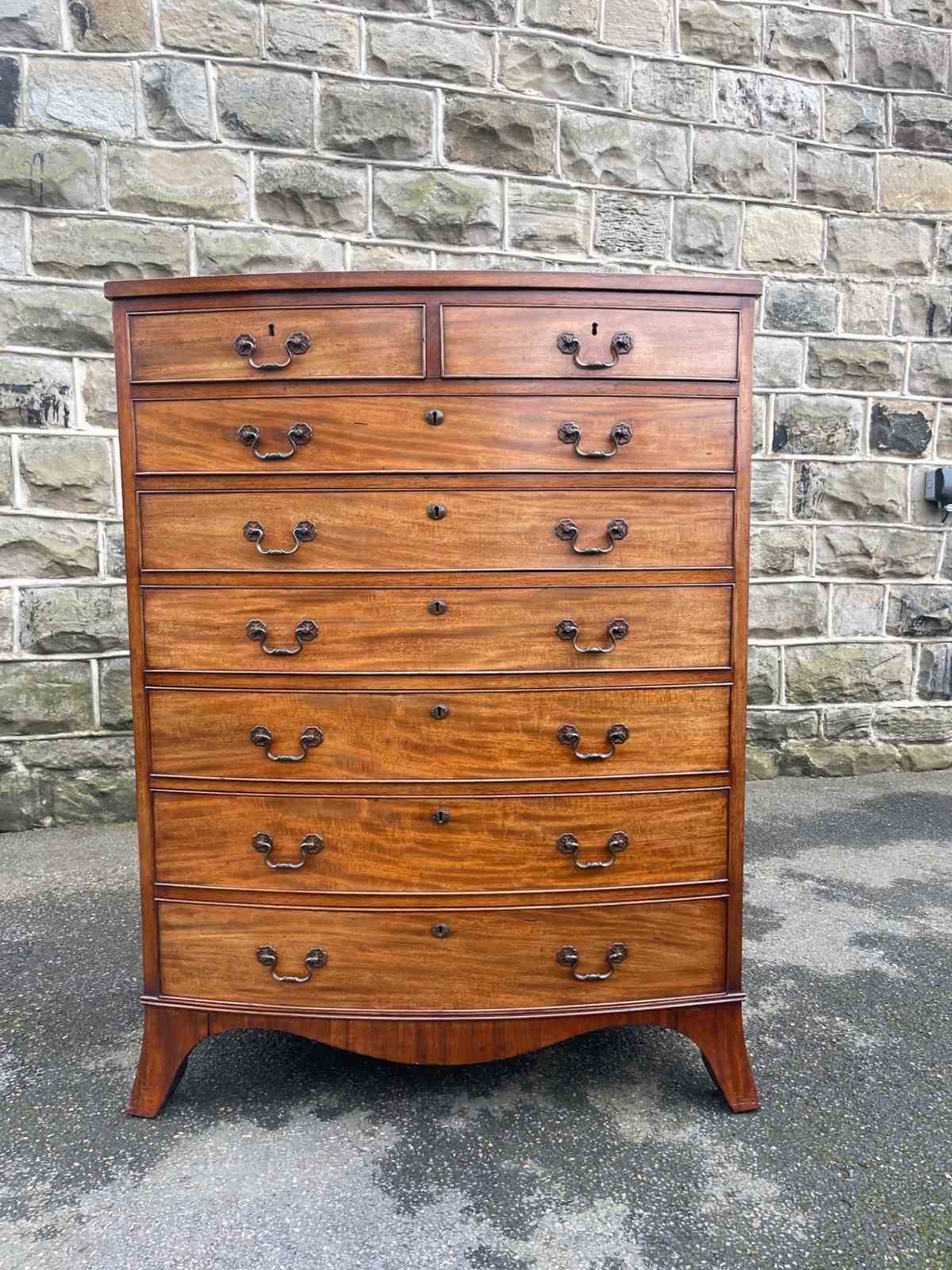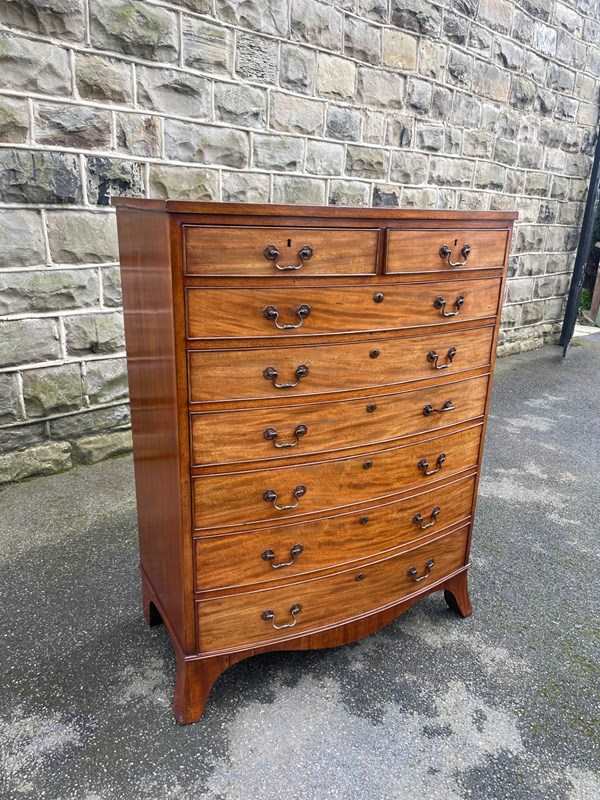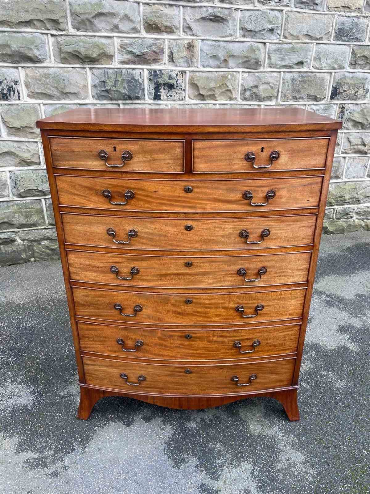 Antique Mahogany Walnut Bow Front 7 Height Chest Draws