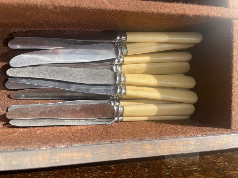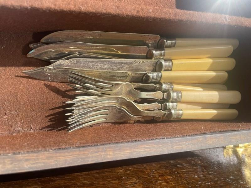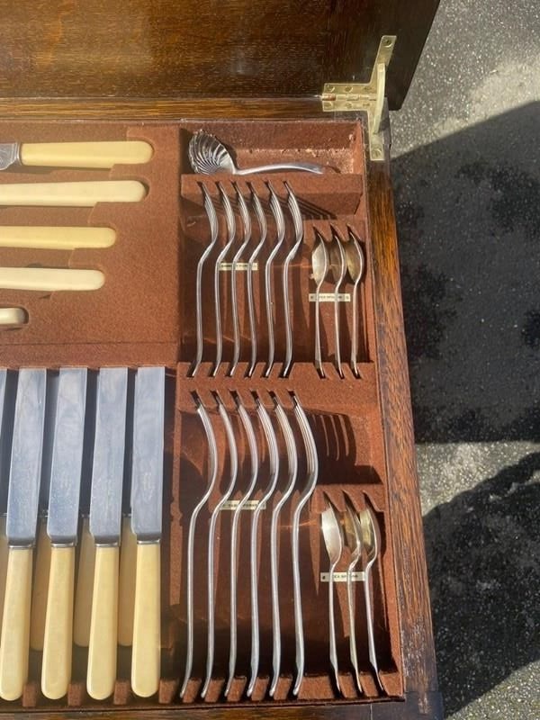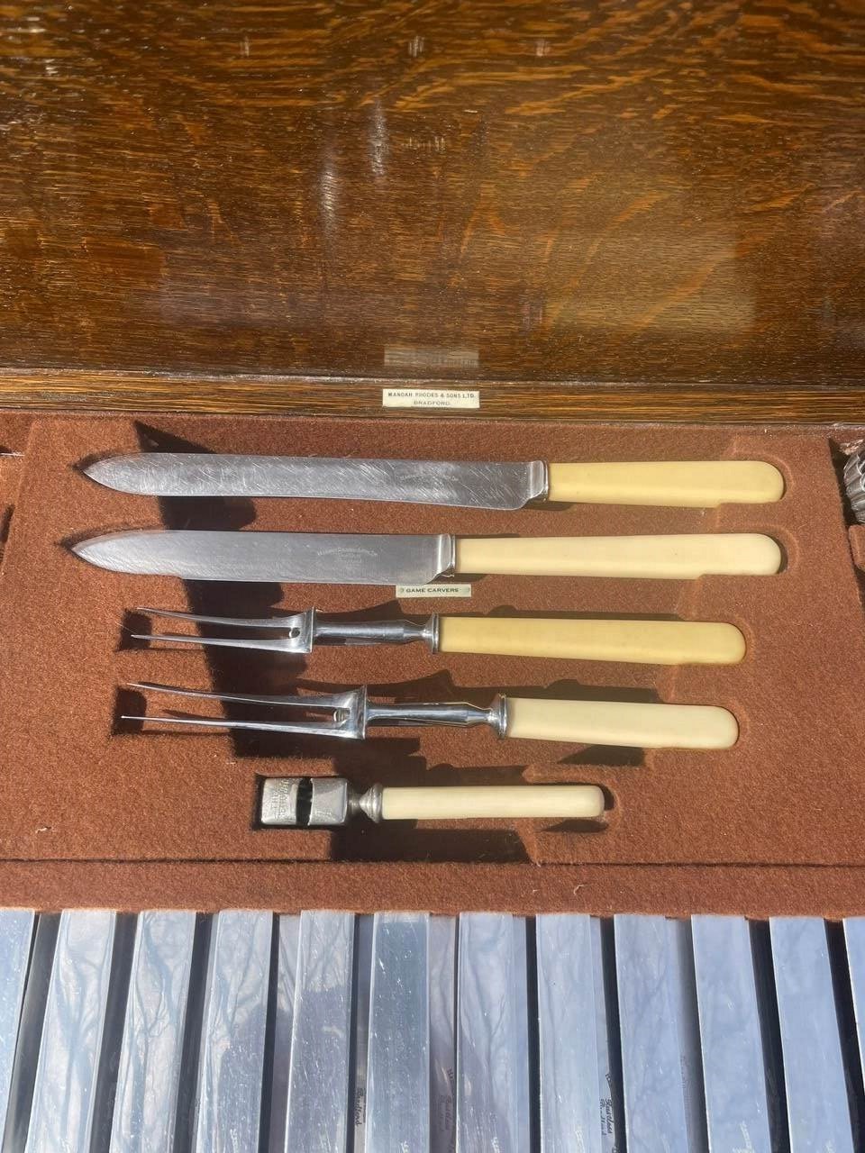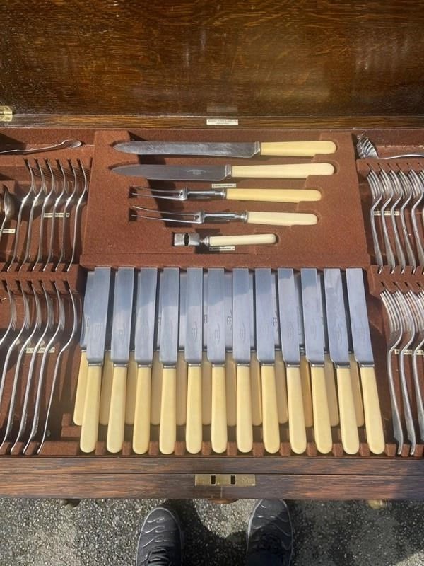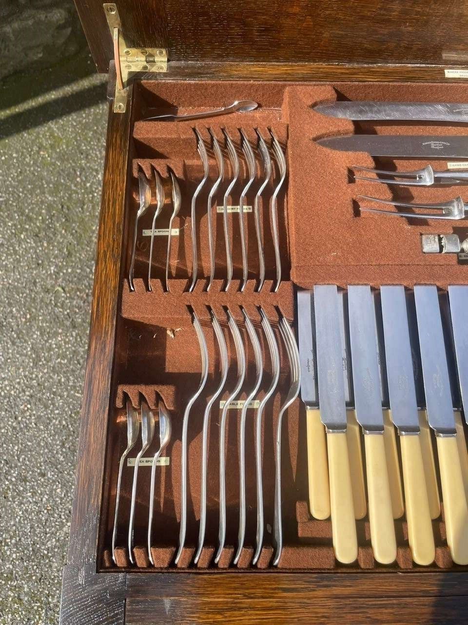Antique Oak Cased 12 Place Setting Canteen Of Cutlery