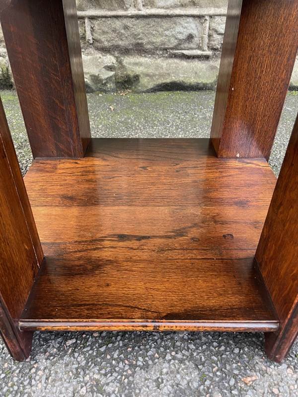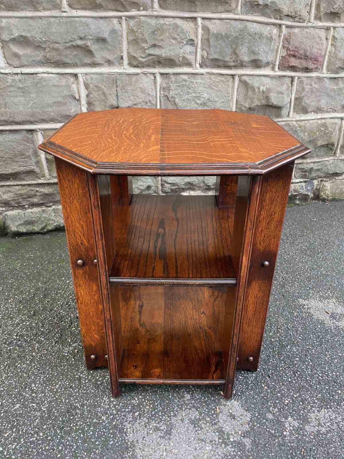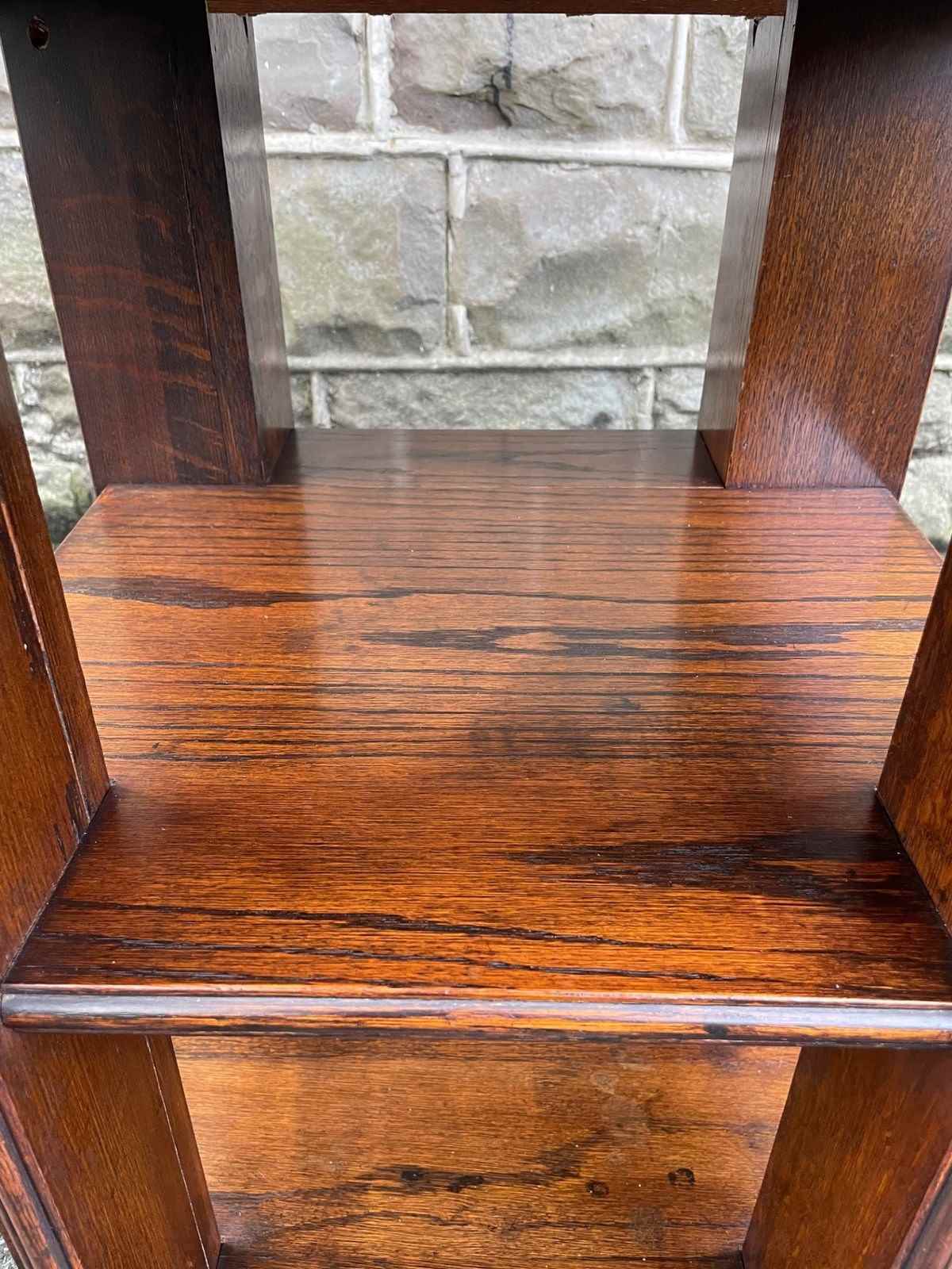 In the manner of Heals, solid oak on 3 levels with the under tier for books etc. Great colour and shine