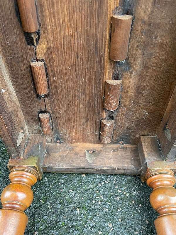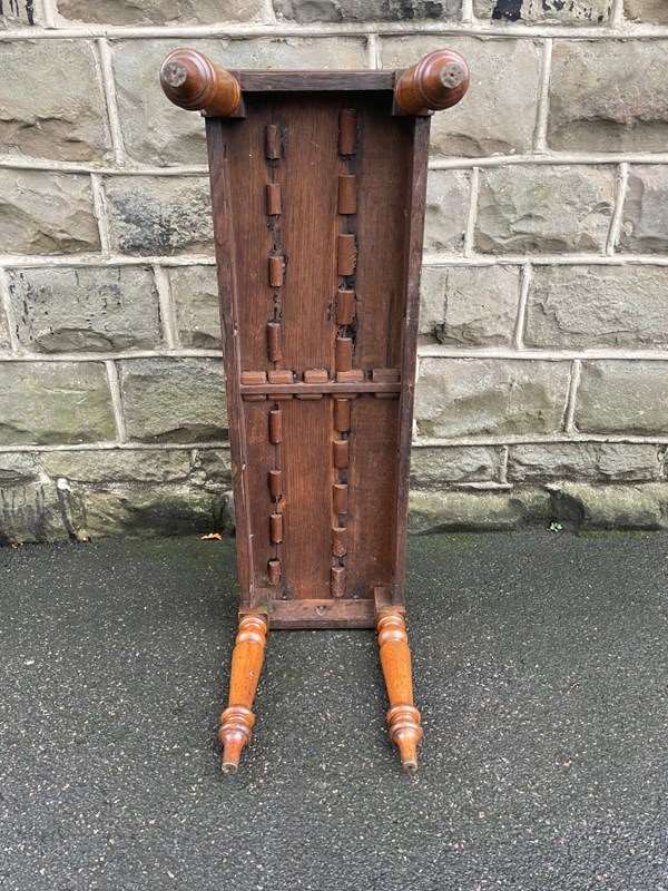 Standing on well turned oak legs with oak seat and turned oak side handles.