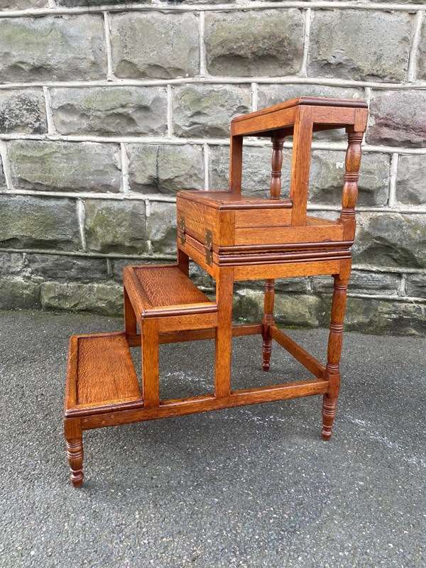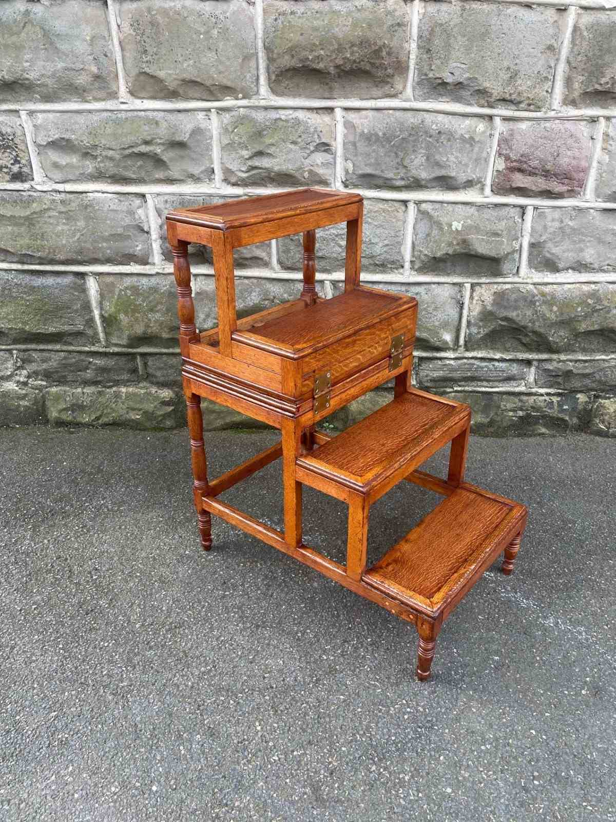 Antique Oak Metamorphic Library Steps